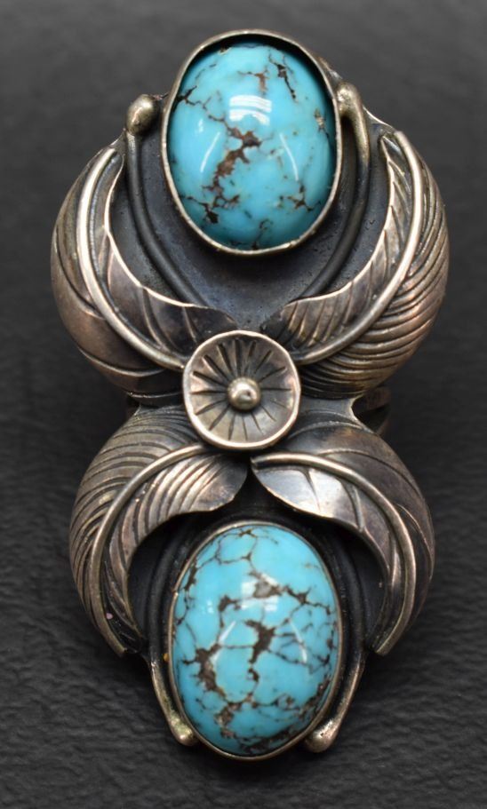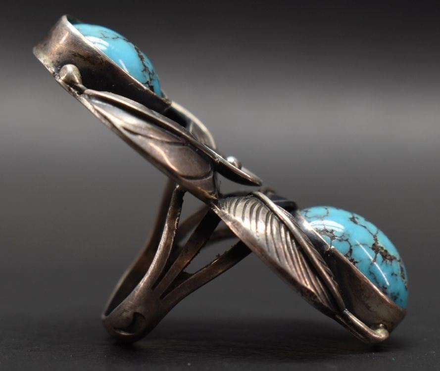 1970's Navajo Indian . Sterling silver and turquoise ring size 5. total weight 16 grams signed with hallmark