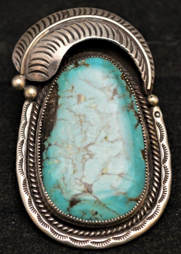 1970's Navajo Indian. Sterling silver and turquoise ring signed with hallmark for Teddy Goodluck jr, size 7.5 total weight 34 grams