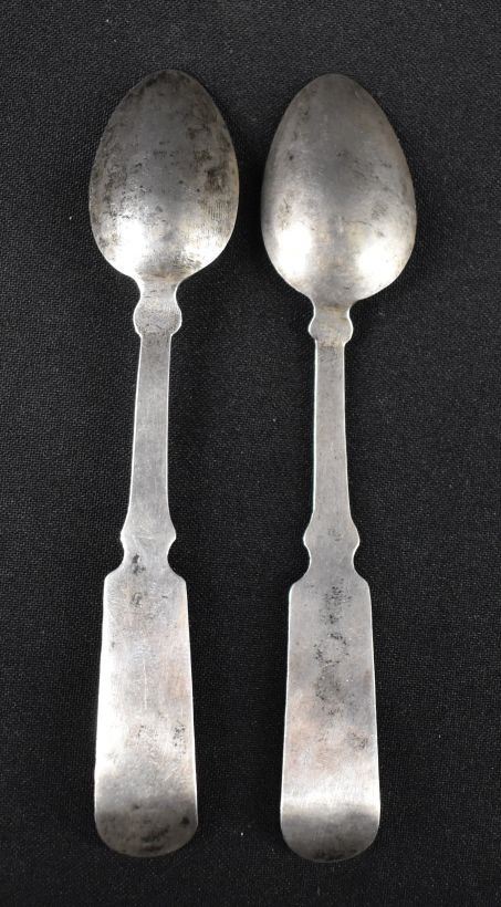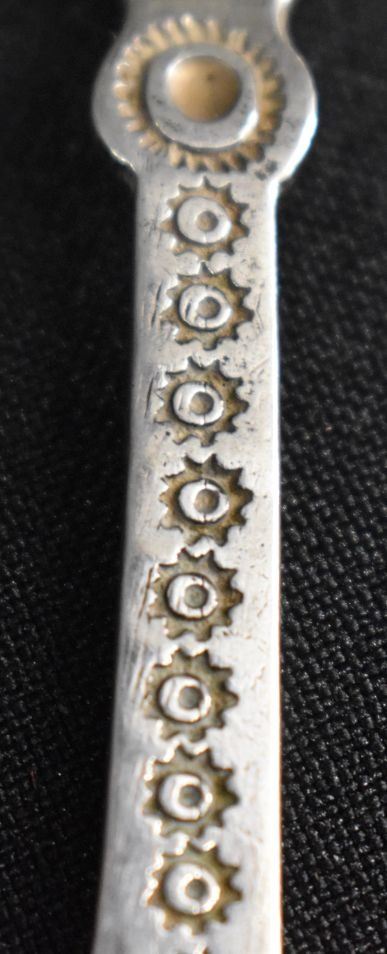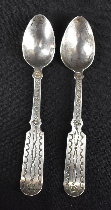 1940's Navajo Indian. Sterling silver stamped design spoons. 1.25'' x 6'' & 1'' x 6'' total weight 57 grams