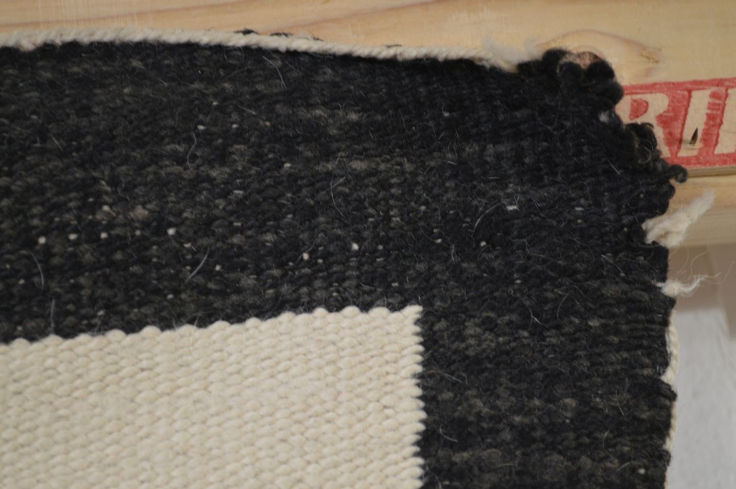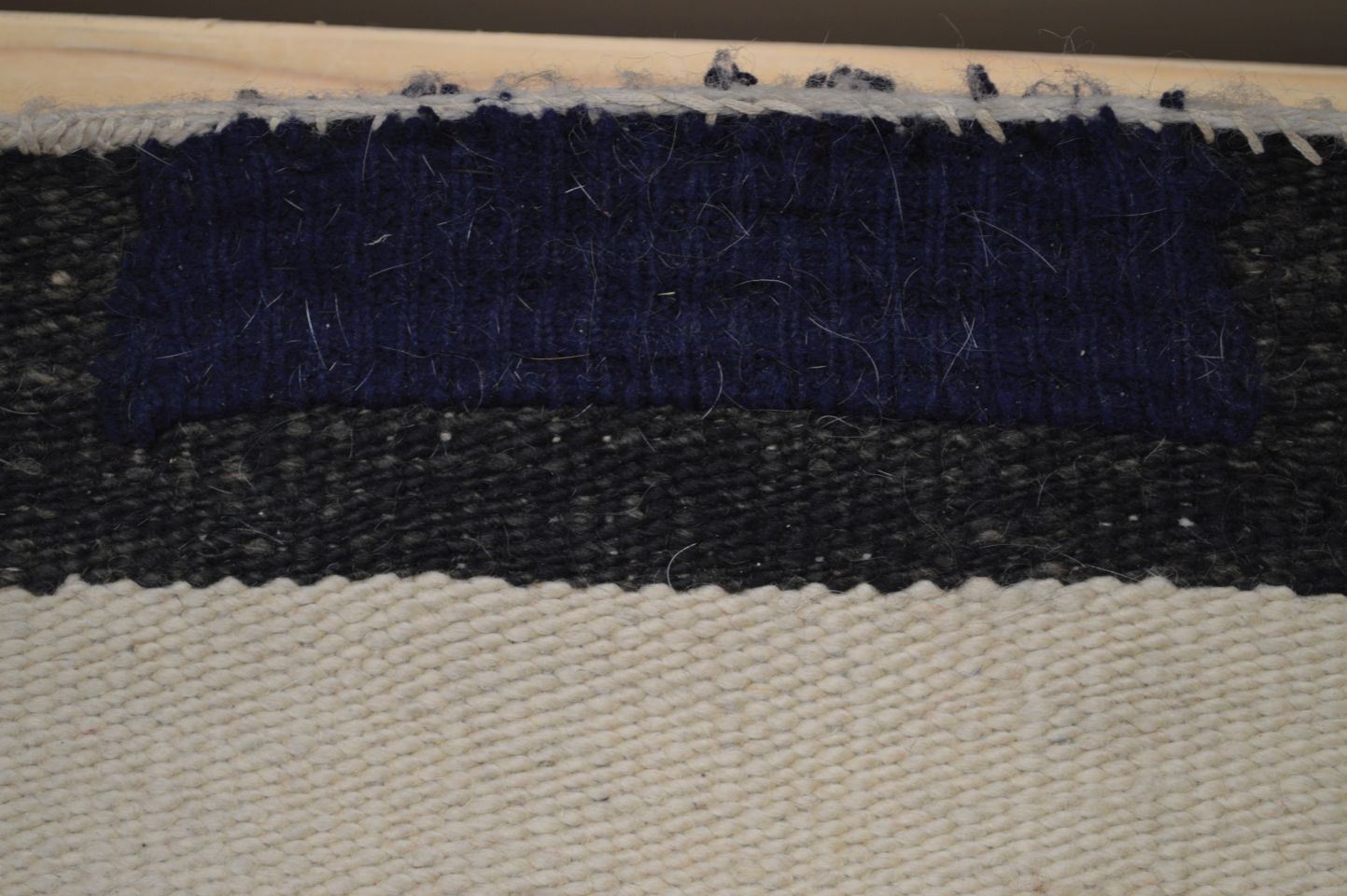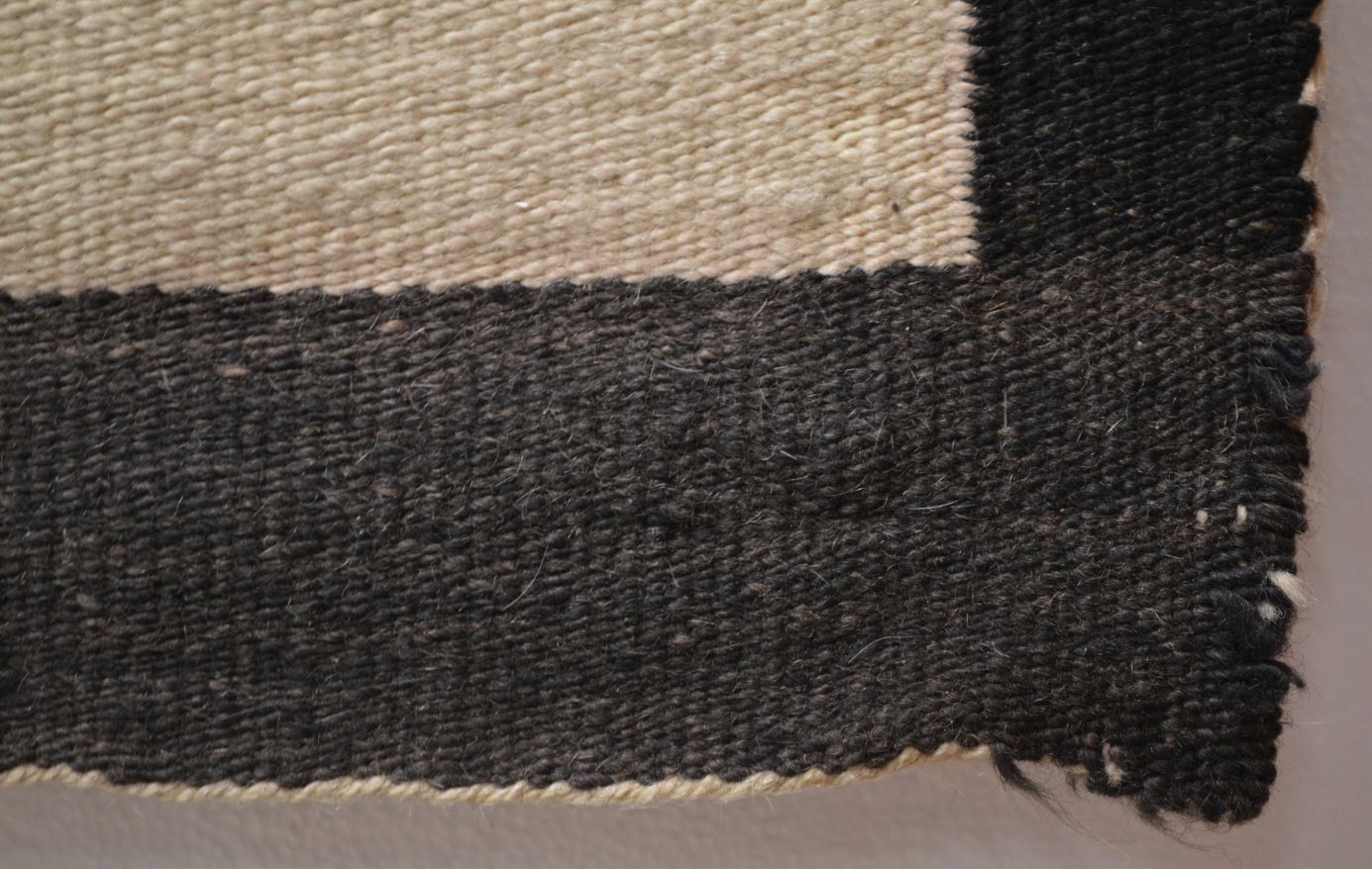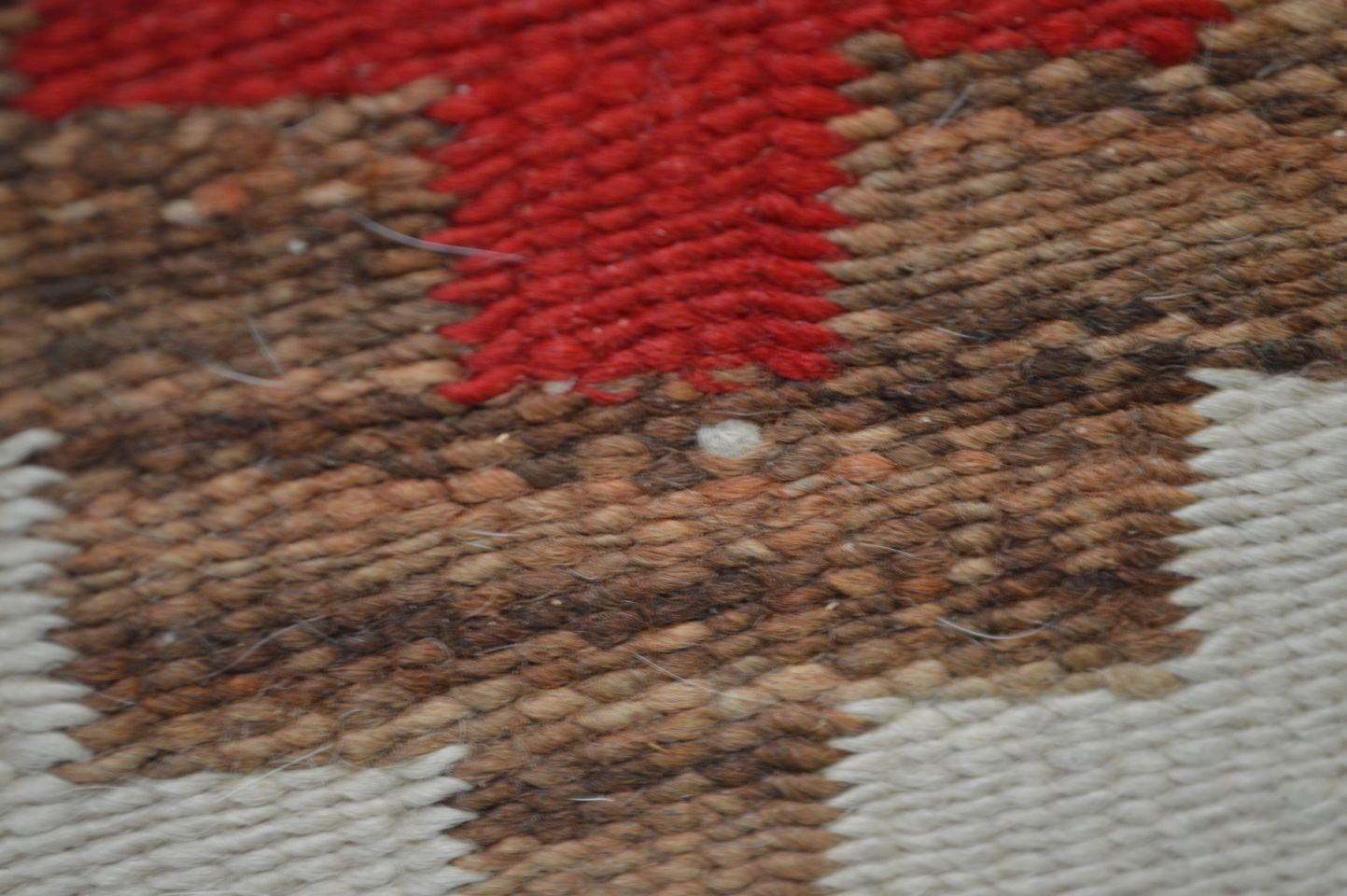 1930's Navajo Indian. Hand woven geometric design has bleed, stains and damaged ends. 54'' x 60''