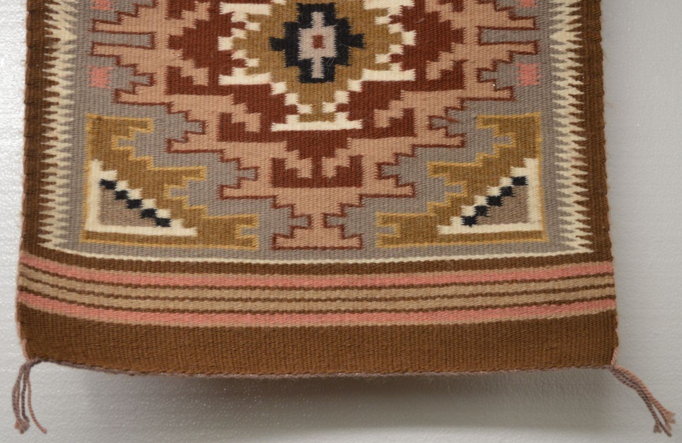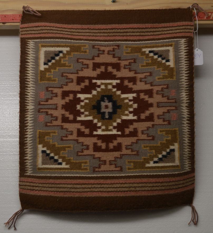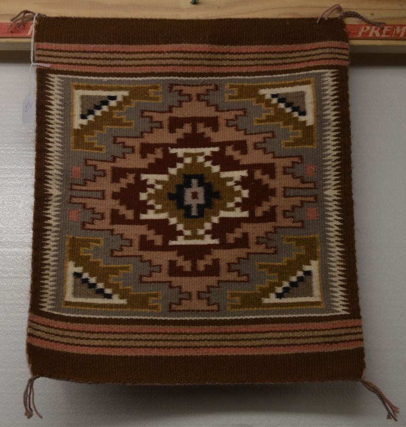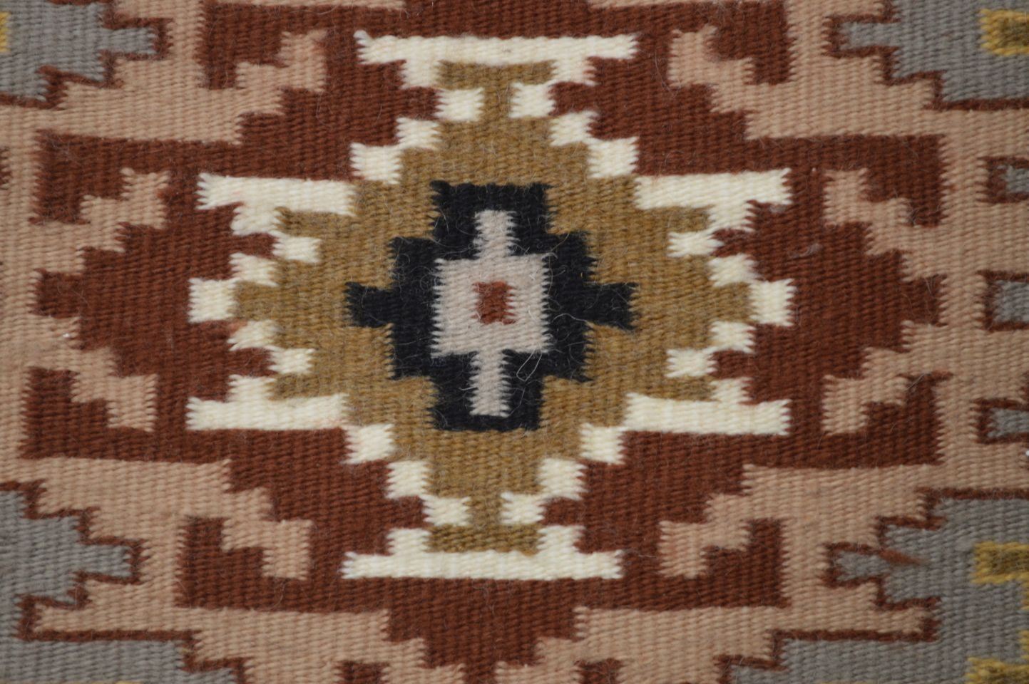 1980's Navajo Indian. Hand woven busy geometric design textile. 20'' x 17''