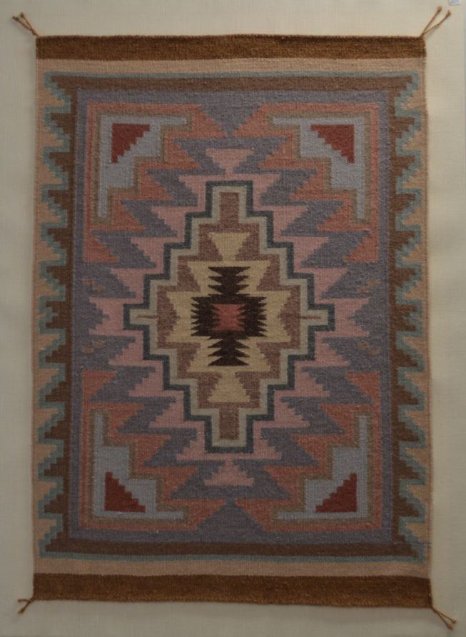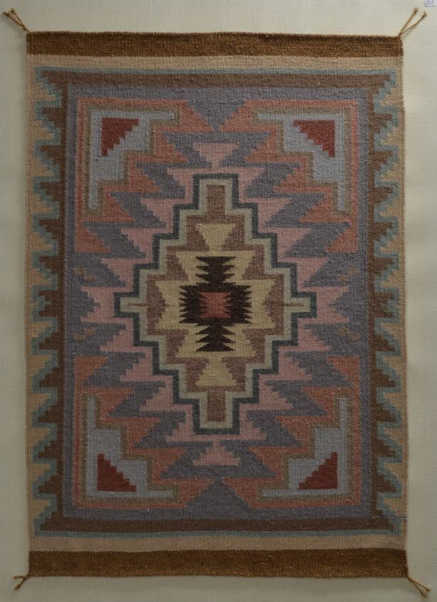 1980's Navajo Indian , hand woven geometric design 36'' x 25''   mounted  on display board 40'' x 30''