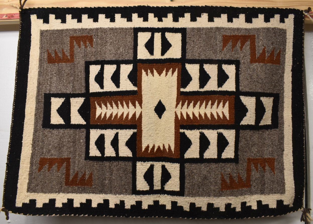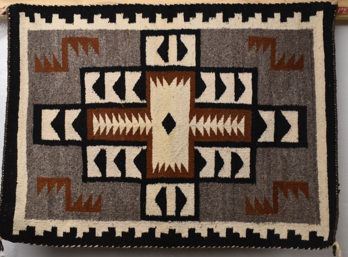 1970's Navajo Indian. Hand woven geometric design textile. 40'' x 28''