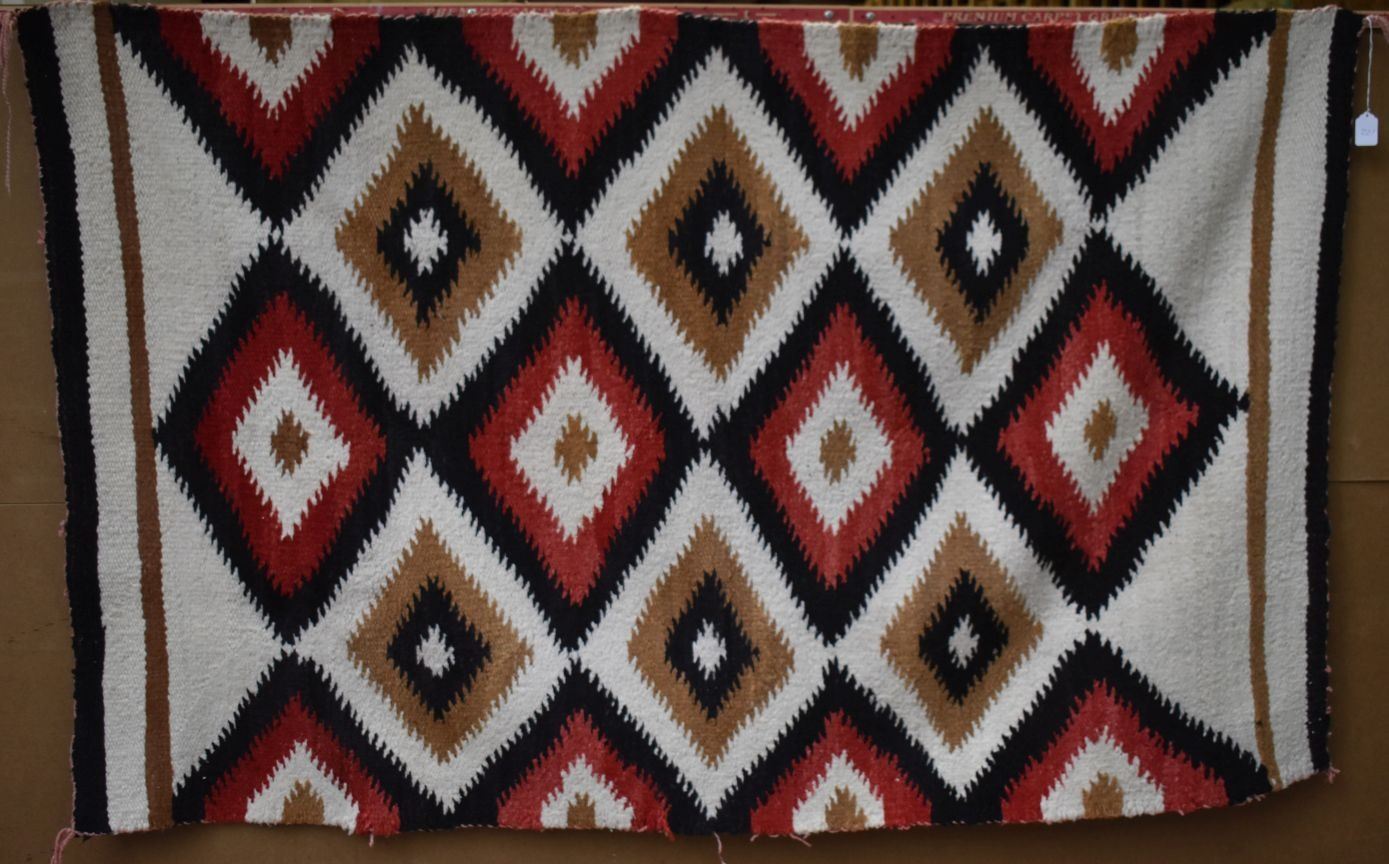 1960's Navajo Indian, hand woven geometric design textile. 67'' x 42''