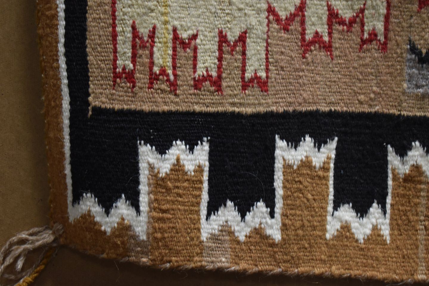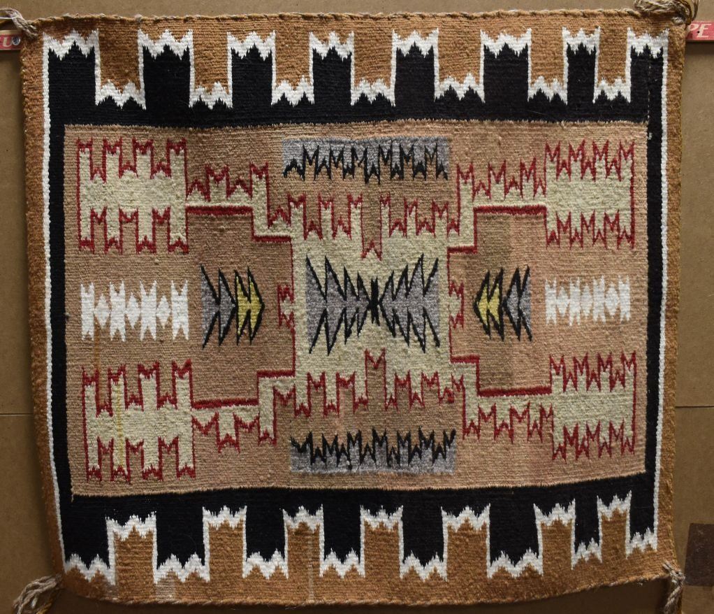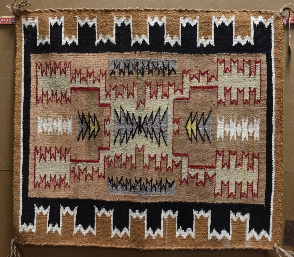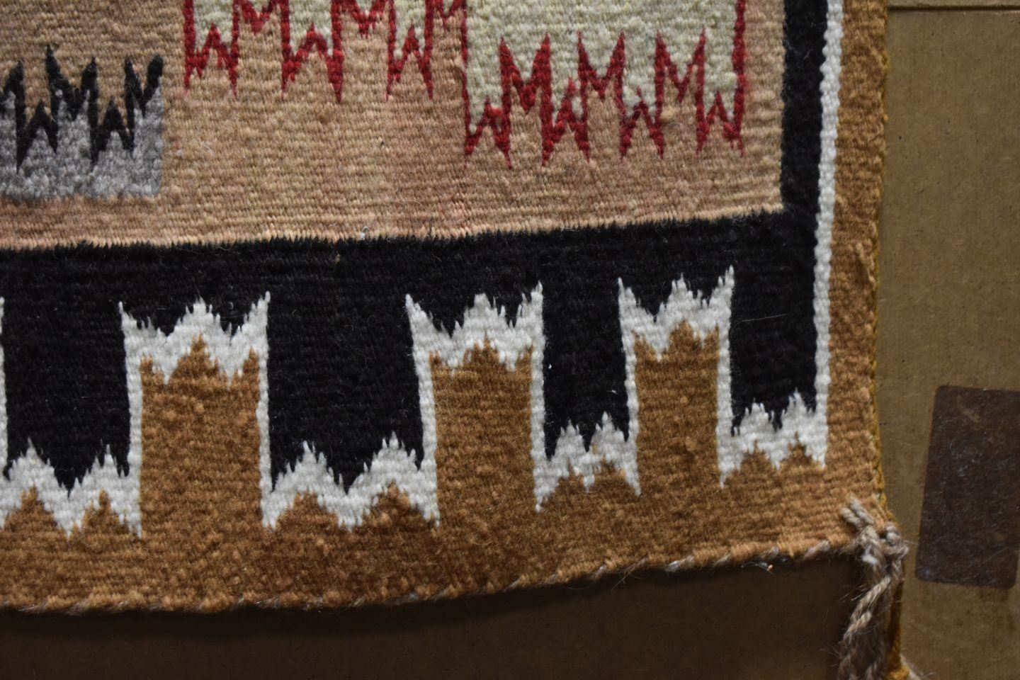 1980's Navajo Indian. Hand woven storm pattern design textile. 29'' x 26''