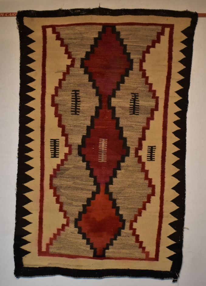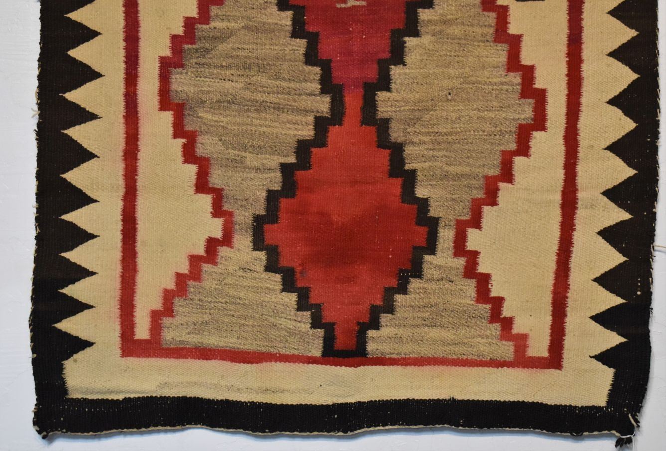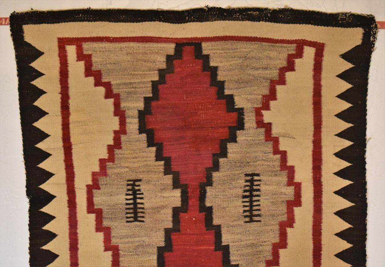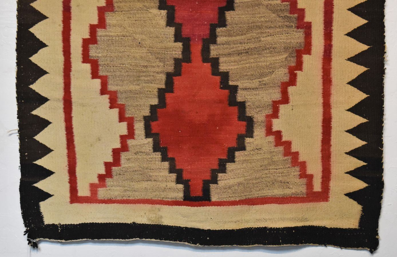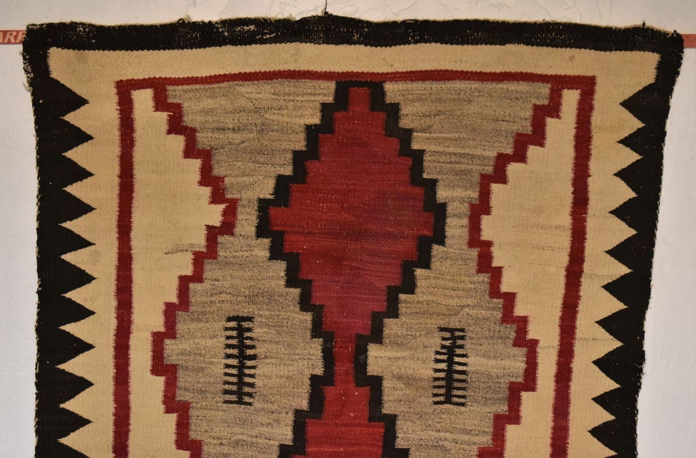 1930-40's Navajo Indian hand woven design 58" x 36" has edge wear and stains