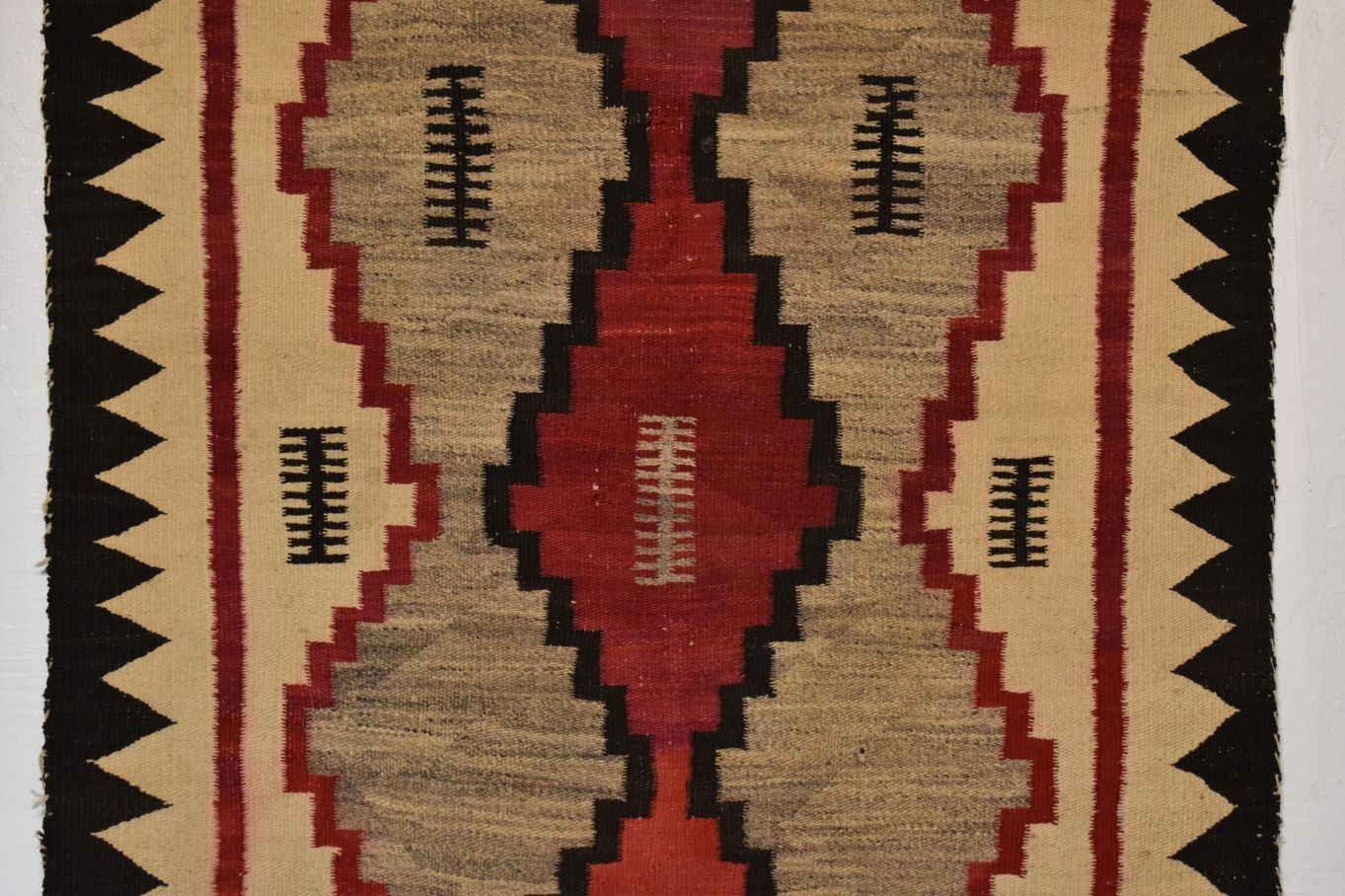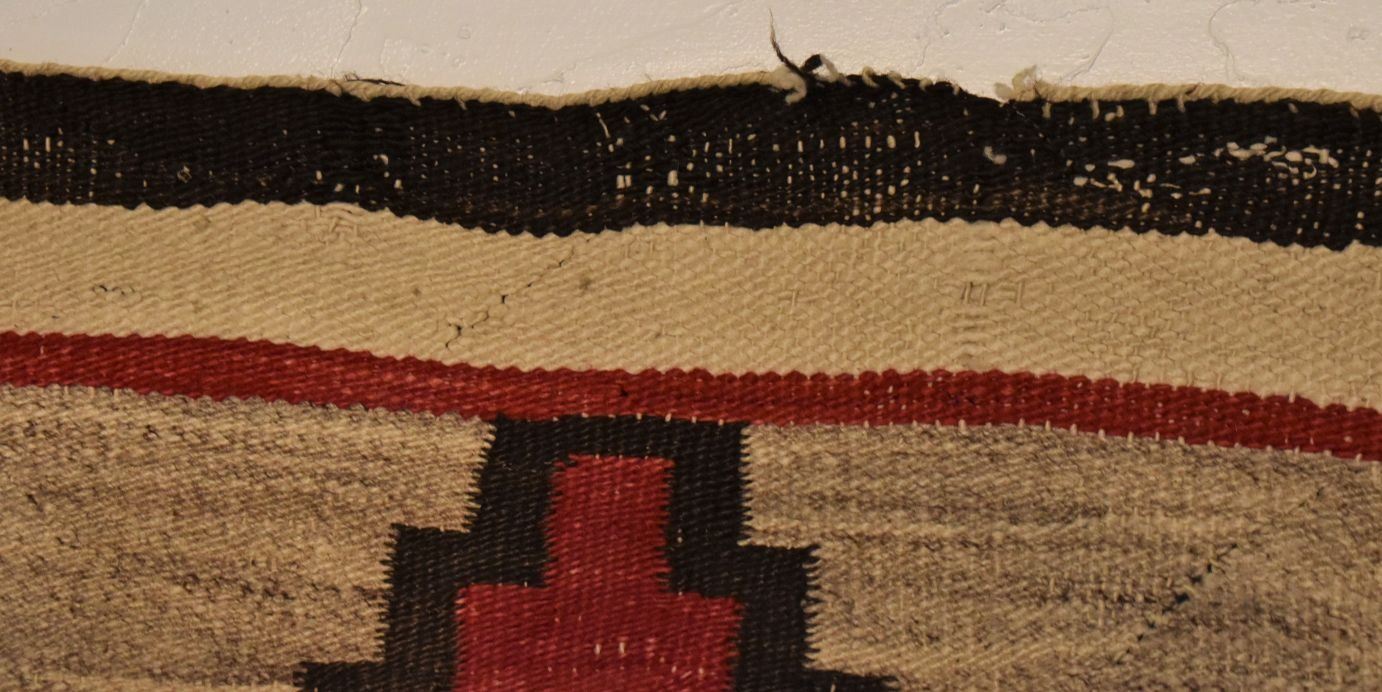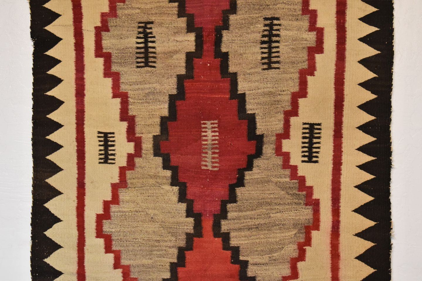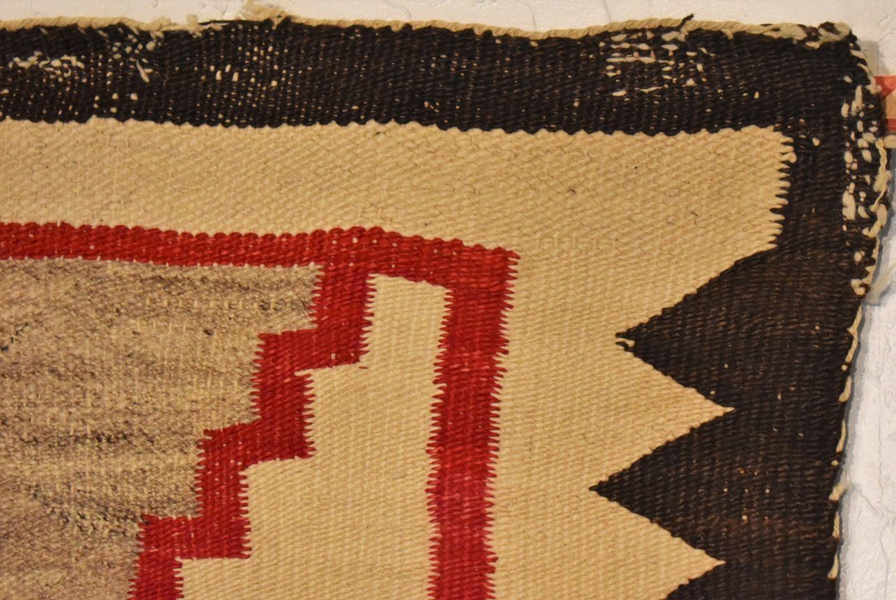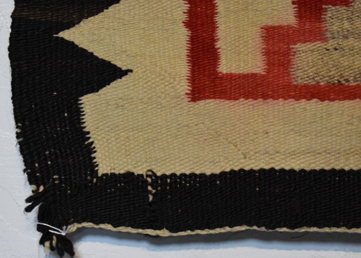 1930-40's Navajo Indian hand woven design 58" x 36" has edge wear and stains