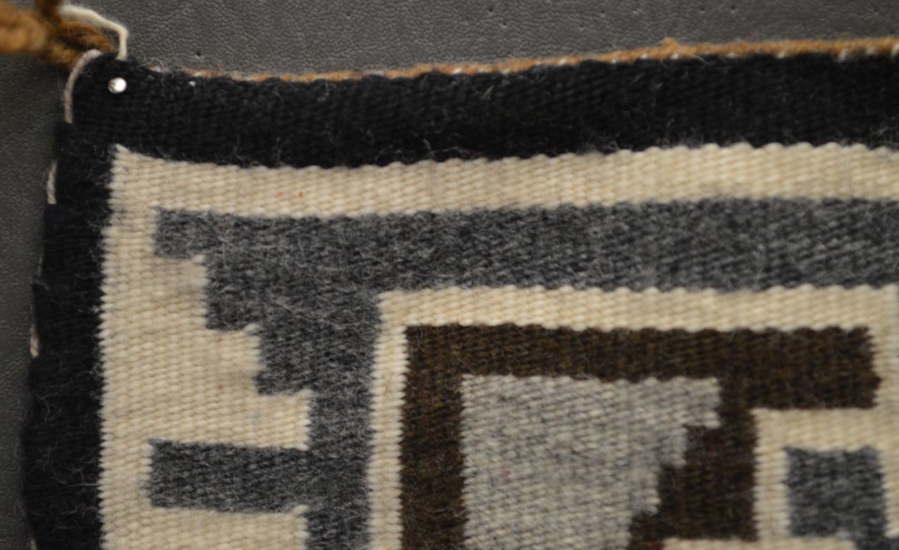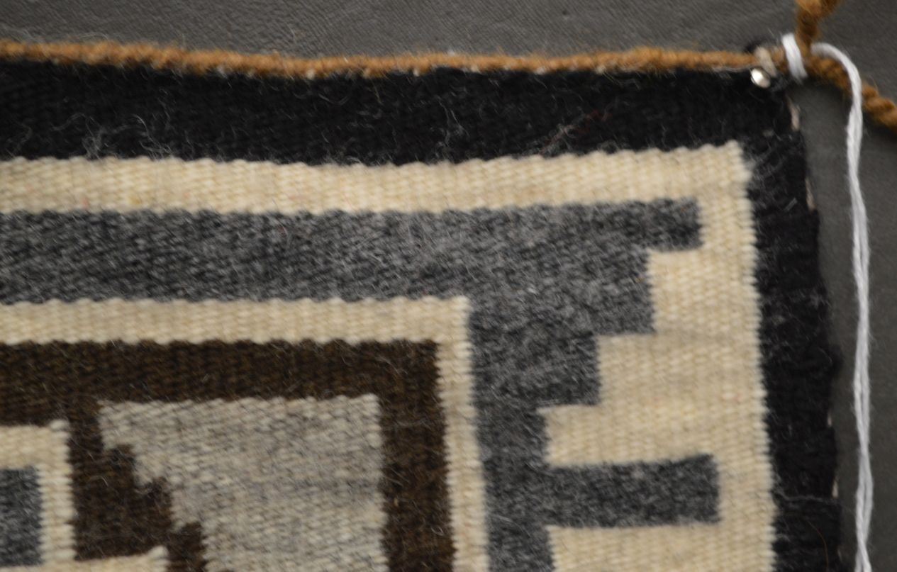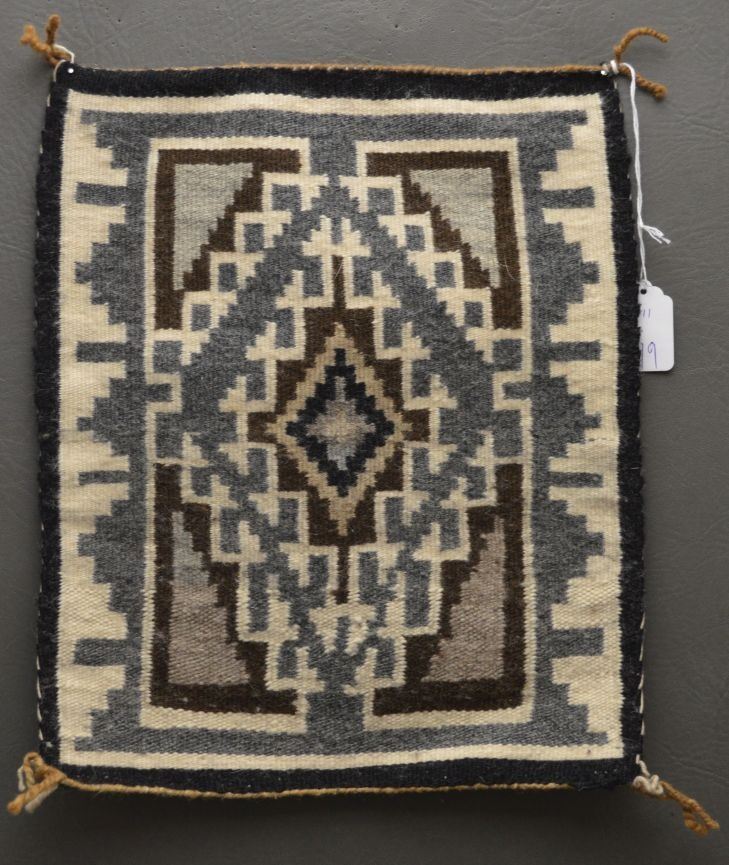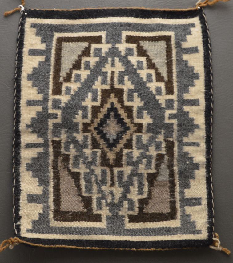 1960's Navajo Indian. Hand woven busy design Two Grey Hills textile, 14'' x 11''