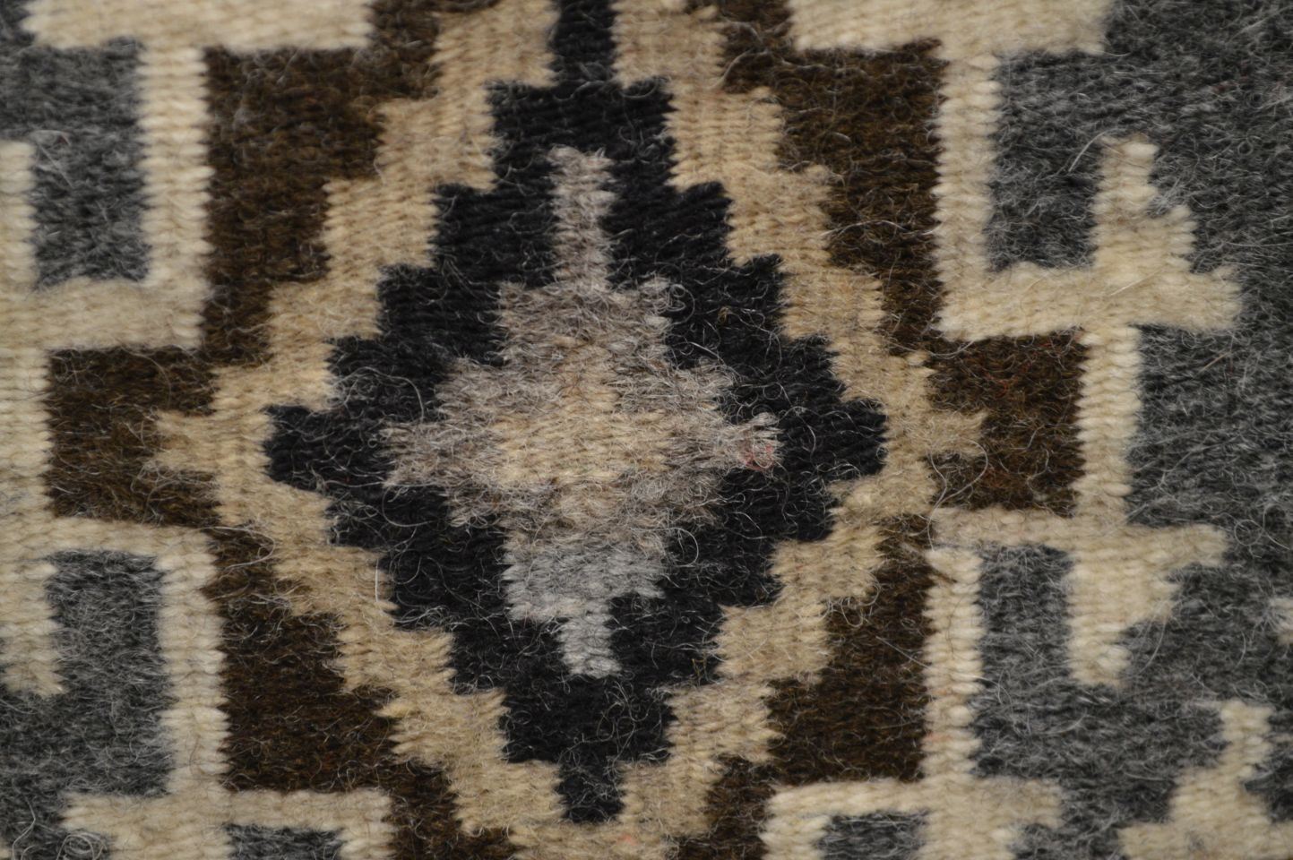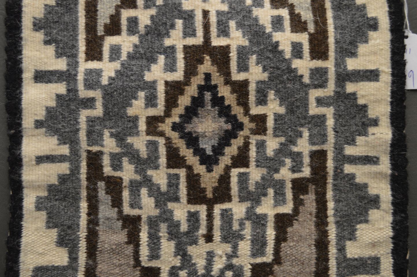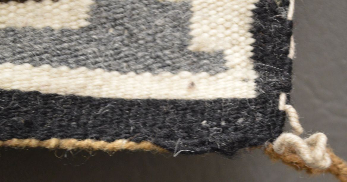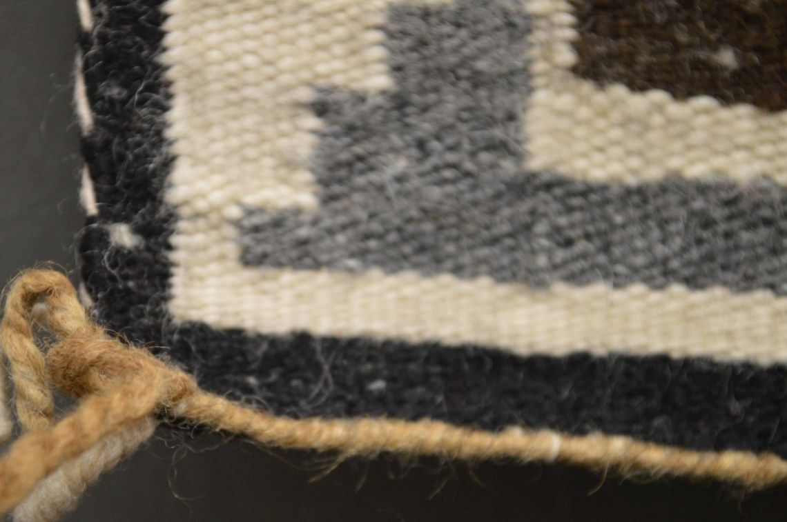 1960's Navajo Indian. Hand woven busy design Two Grey Hills textile, 14'' x 11''