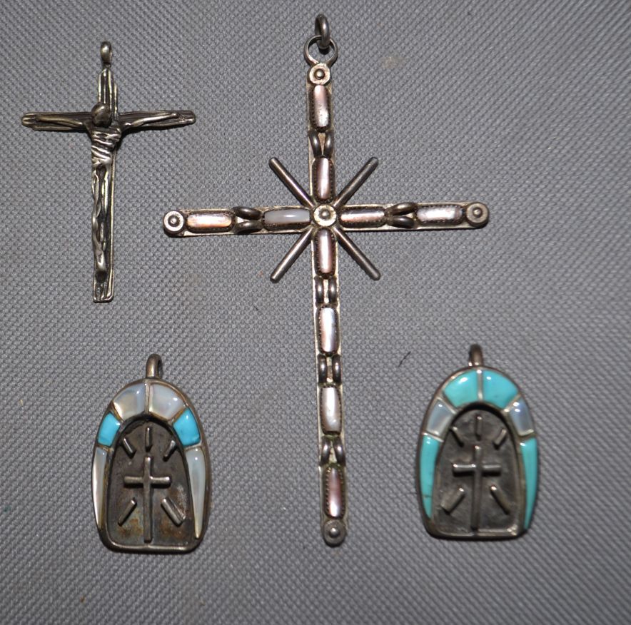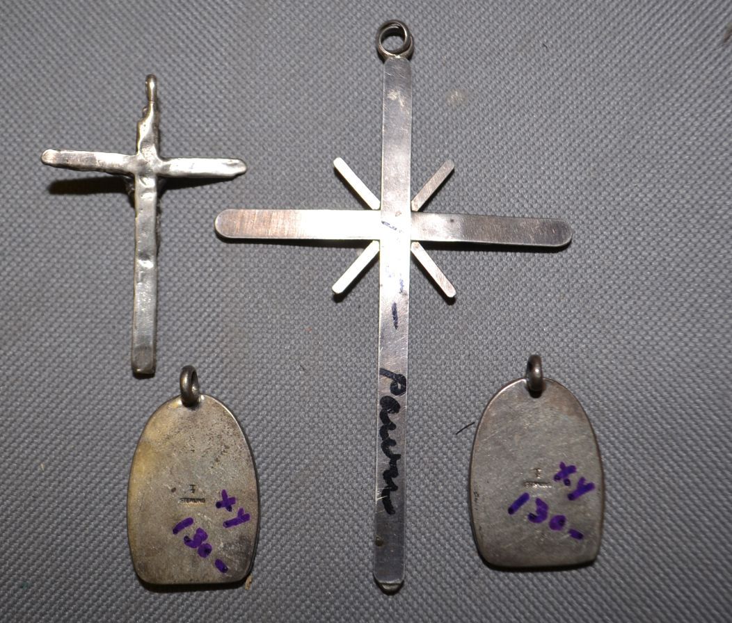 1970s sterling silver turquoise and shell pendants largest 3.75" x 2.5" smallest 1.25" x 1"