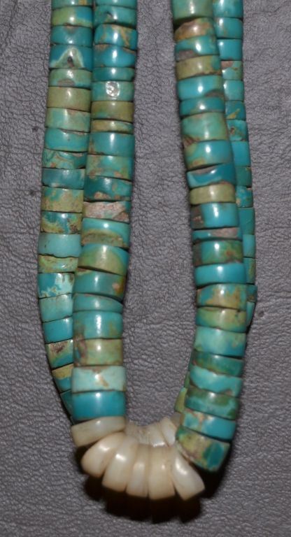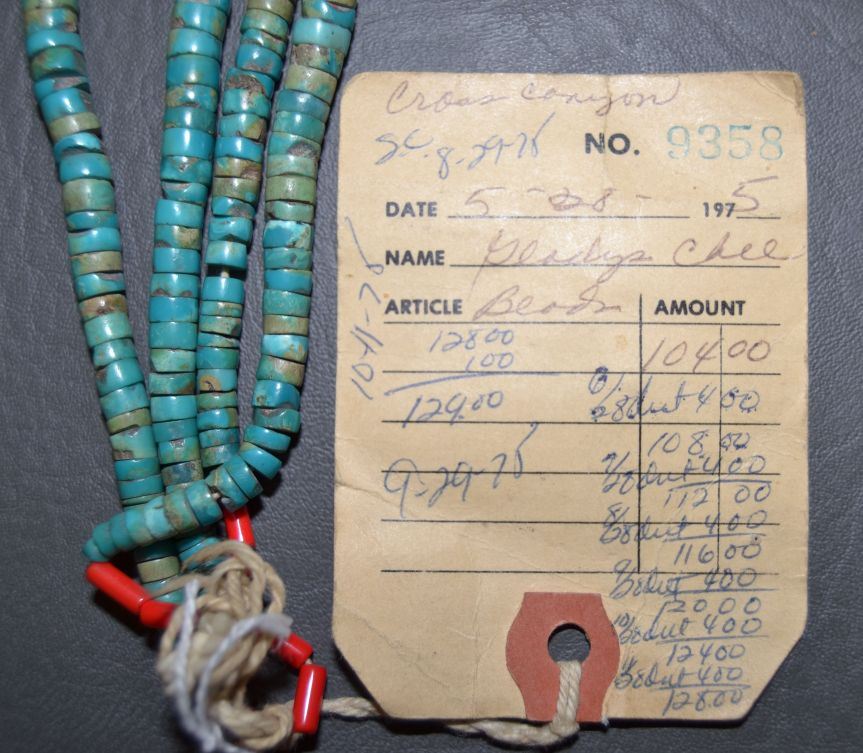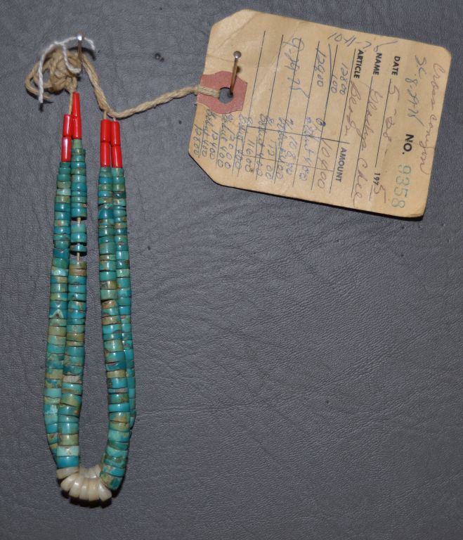 1950's graduated turquoise and shell overall length 10" 1975 pawn ticket