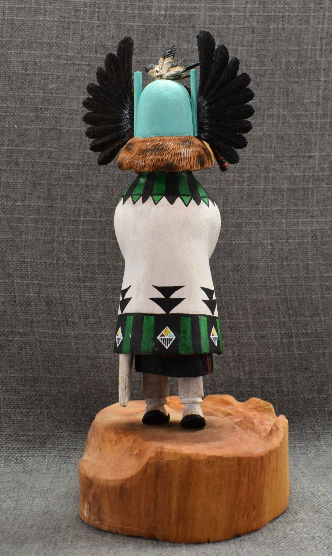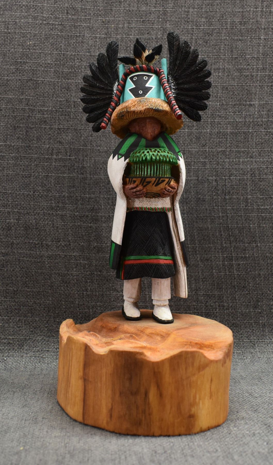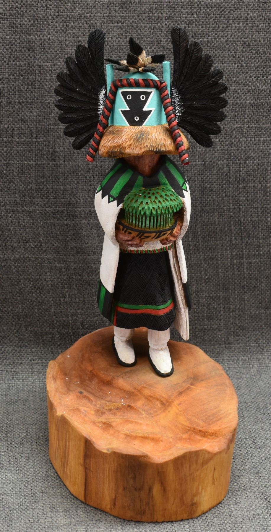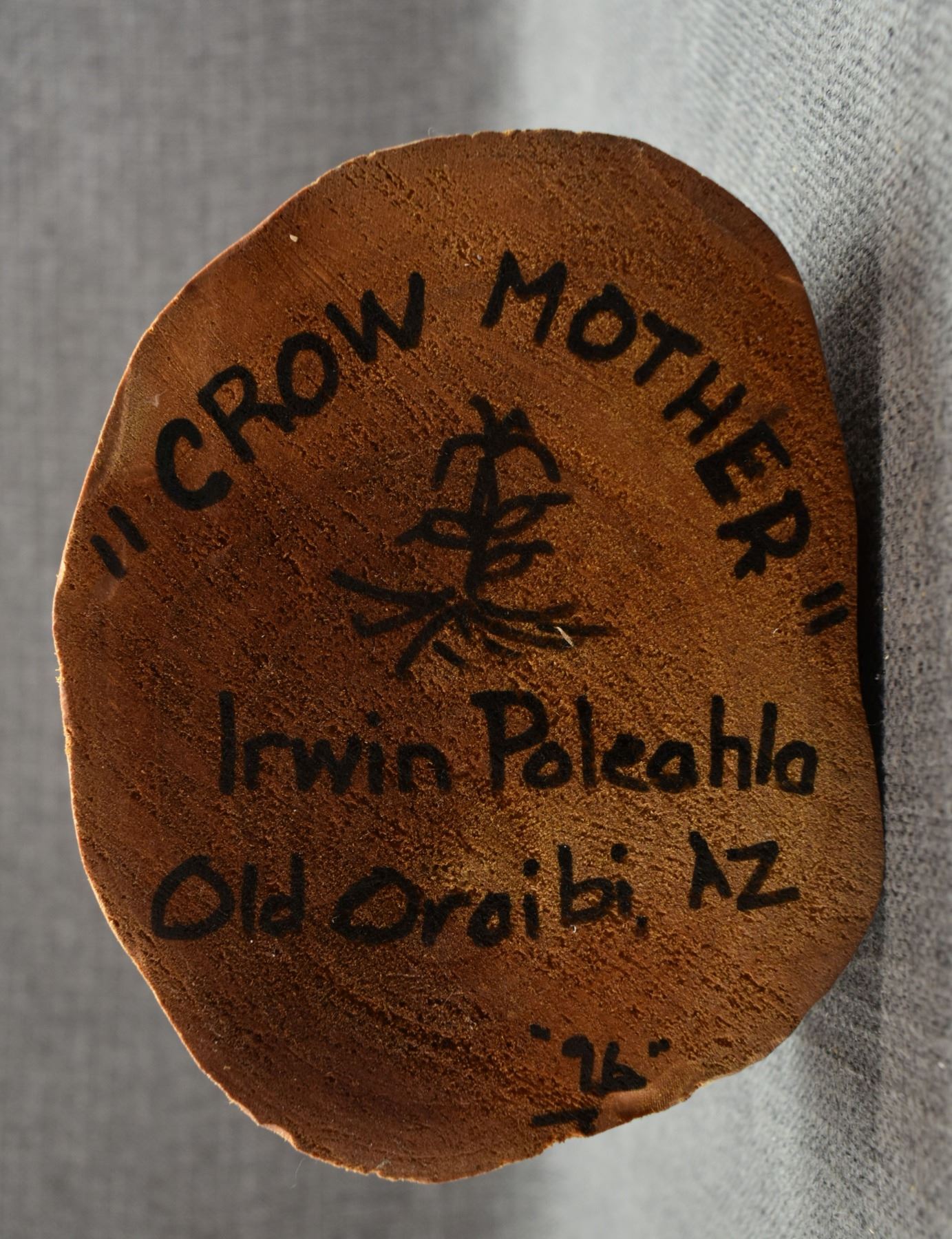 1996 Navajo Hand carved and painted cottonwood kachina signed Irwin Poleahla titled Crow mother. 11" tall