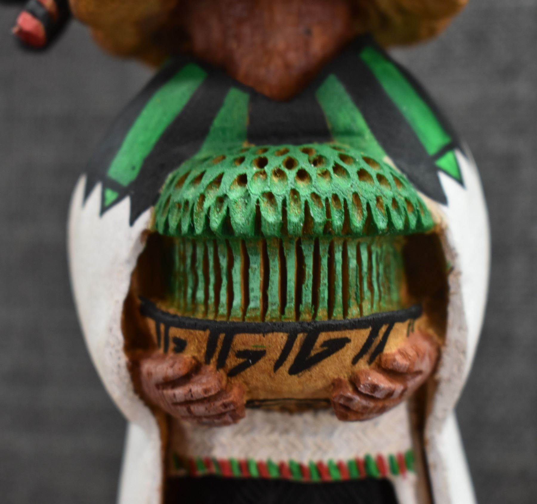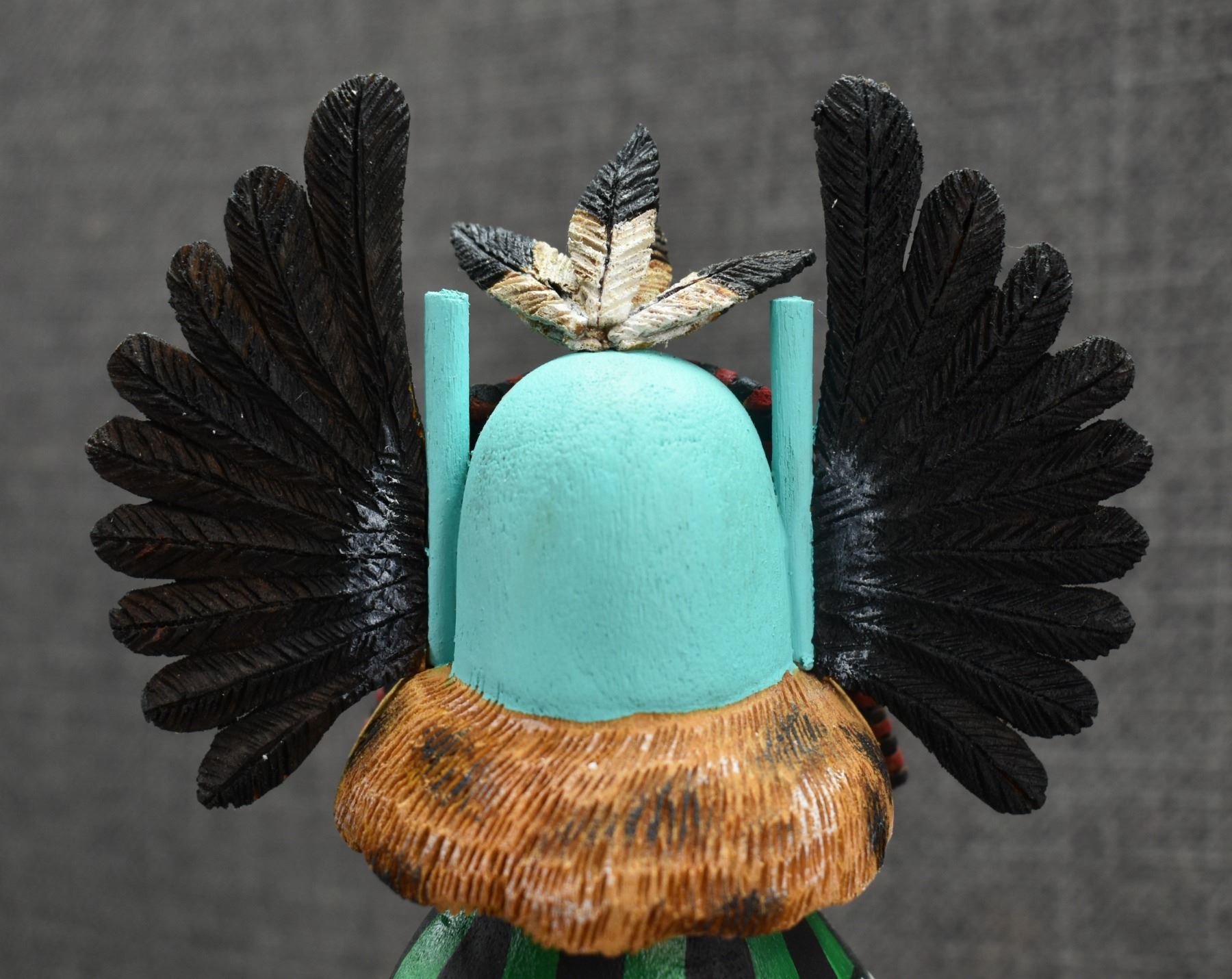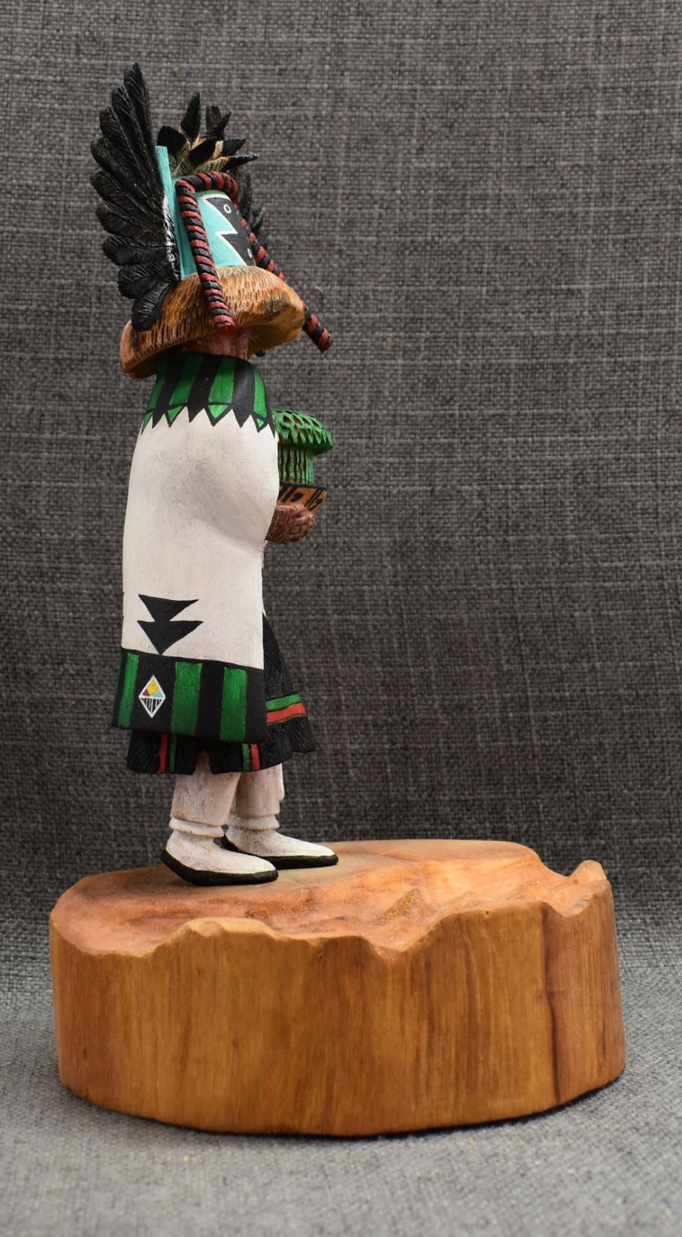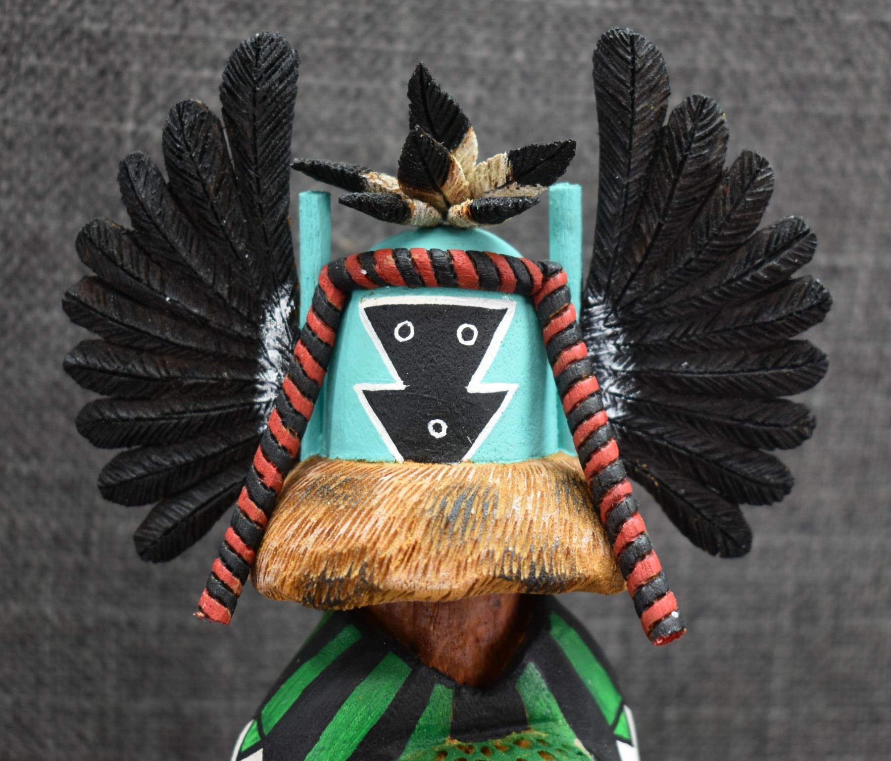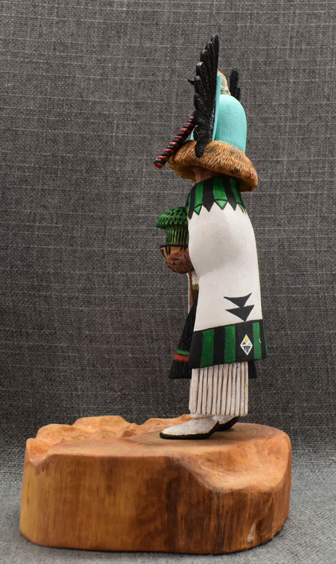 1996 Navajo Hand carved and painted cottonwood kachina signed Irwin Poleahla titled Crow mother. 11" tall