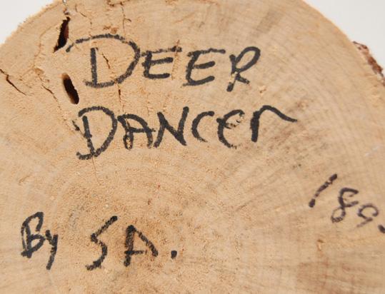 1980'S deer dancer, signed S. A., antlers have damage, 11" tall