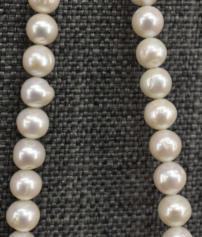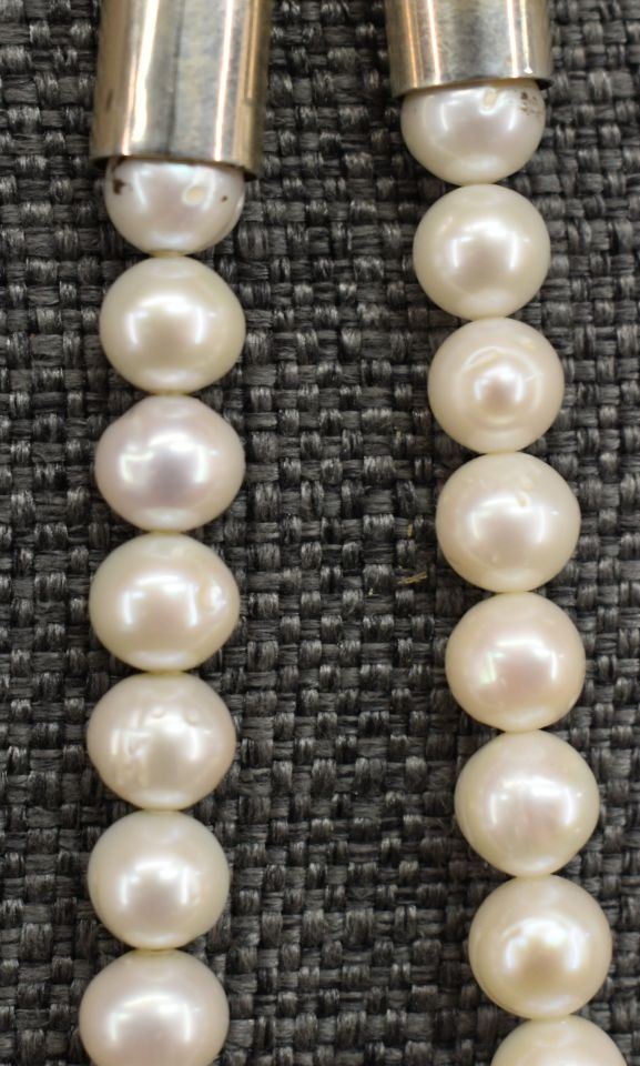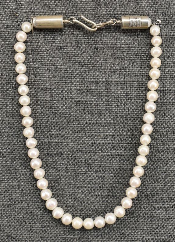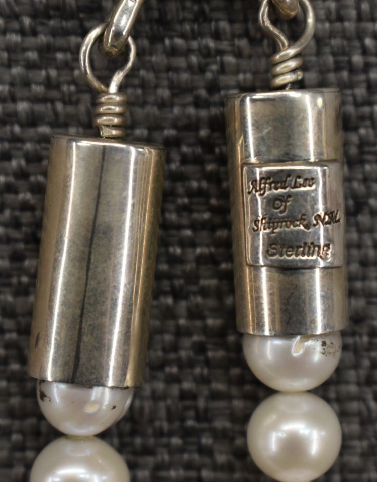 2000's Navajo, sterling silver cone and clasp with pearl beads signed Albert Lee of Shiprock NM 18" long