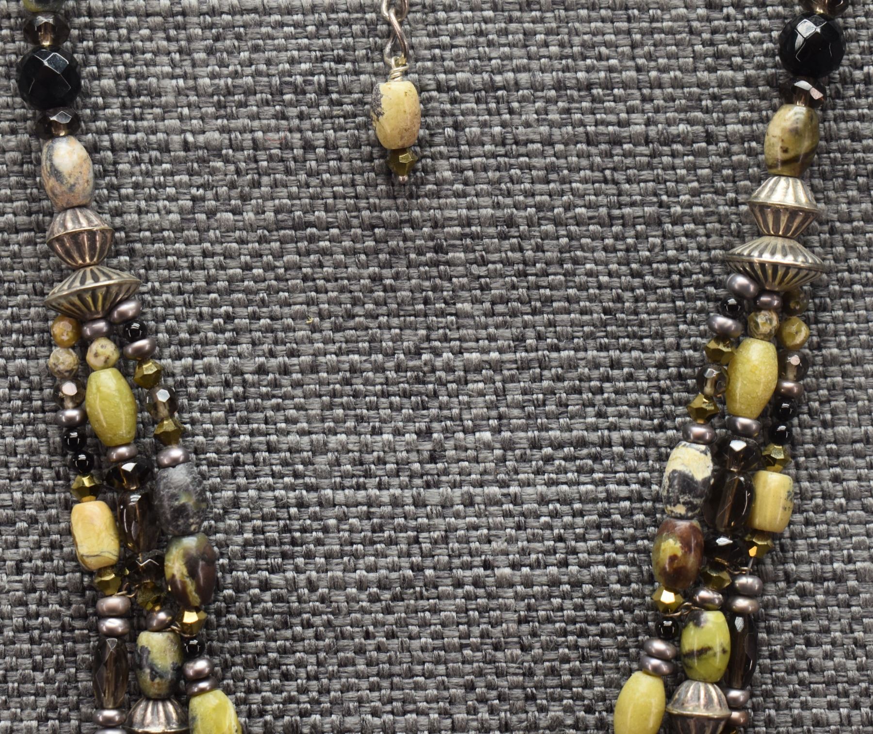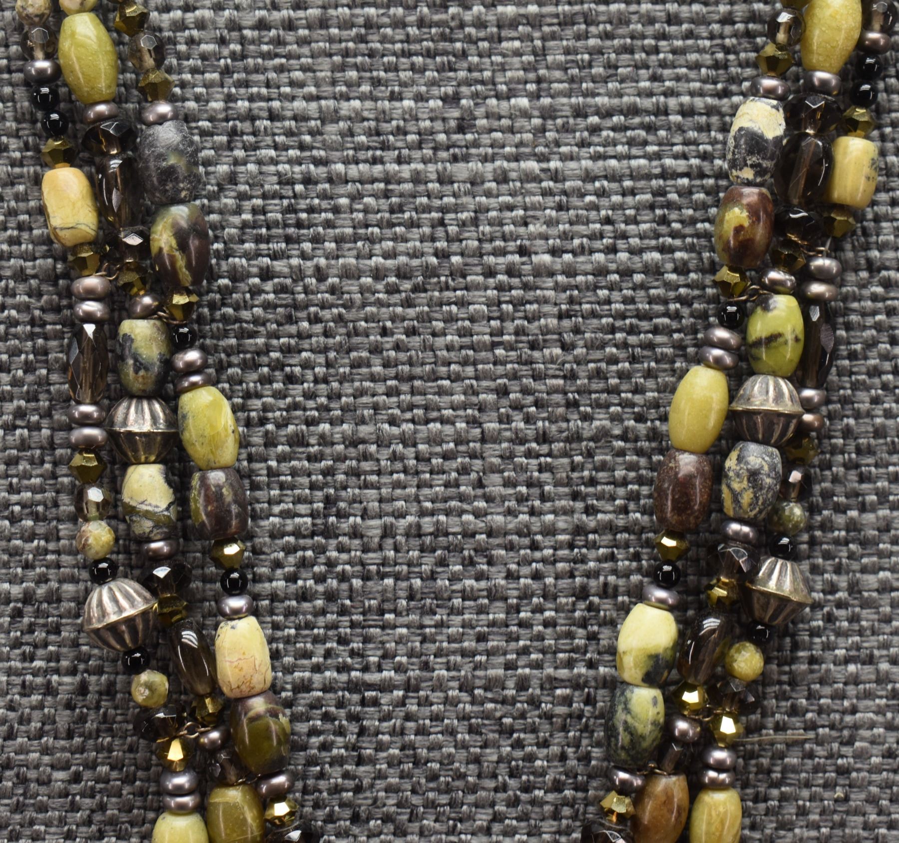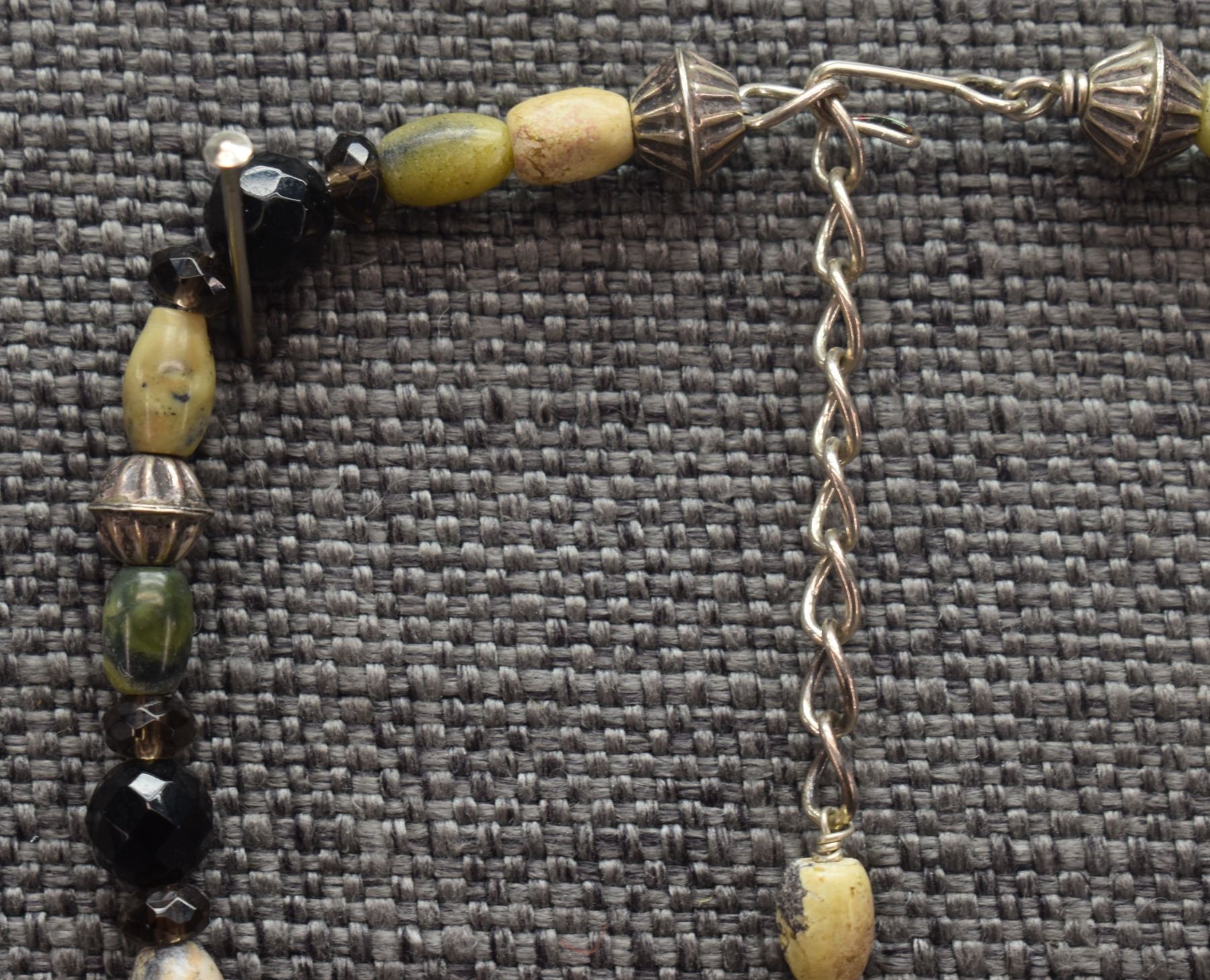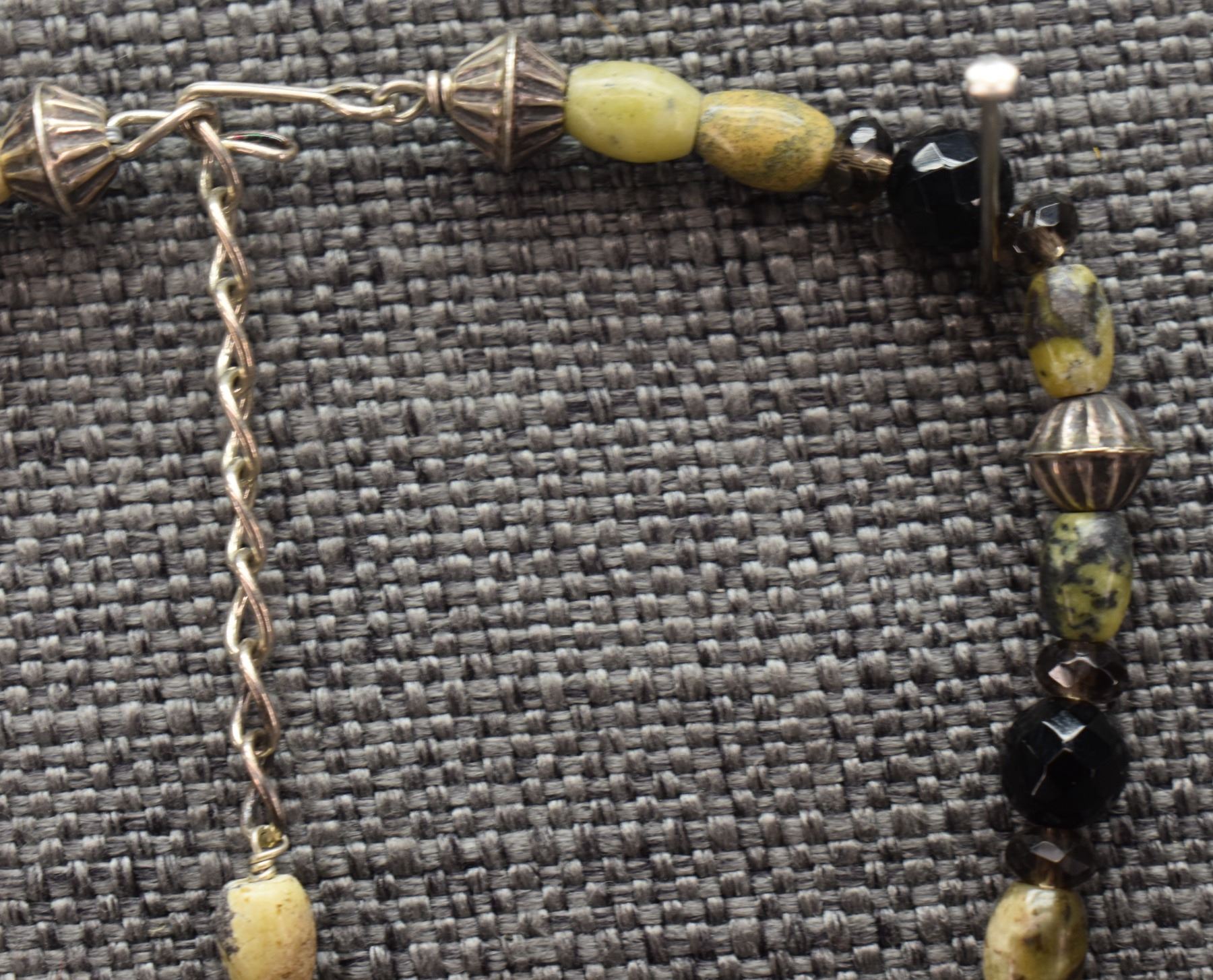 2000. Navajo. Silver and stone bead necklace 18'' long. Stone set in sterling silver pendant 3'' x 1.75'' signed B. Johnson