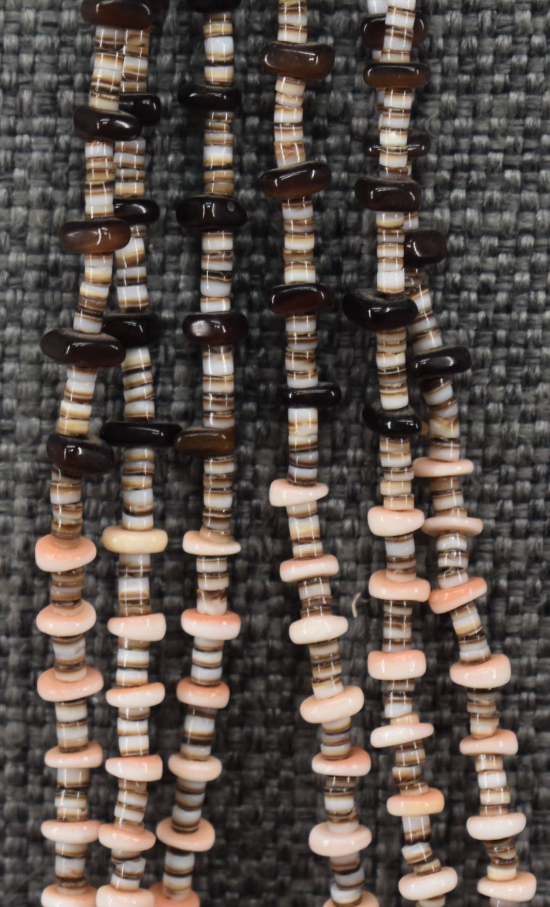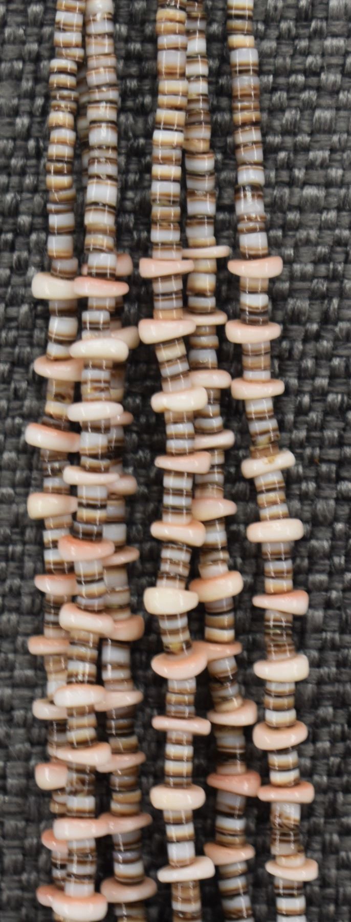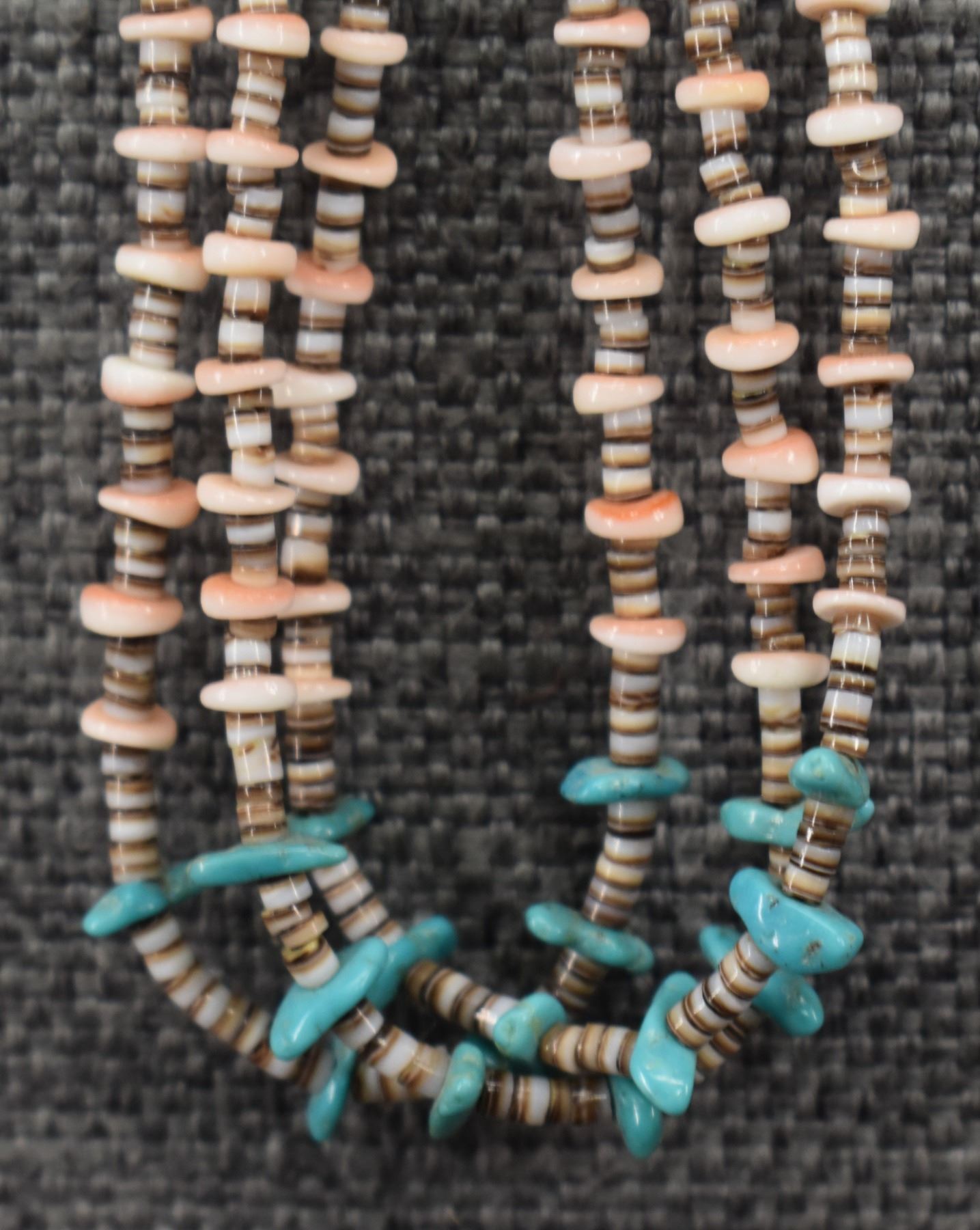 1980-90's Navajo, multiple strand of shell heishi with turquoise and shell 32" long attributed to Clara Tlito