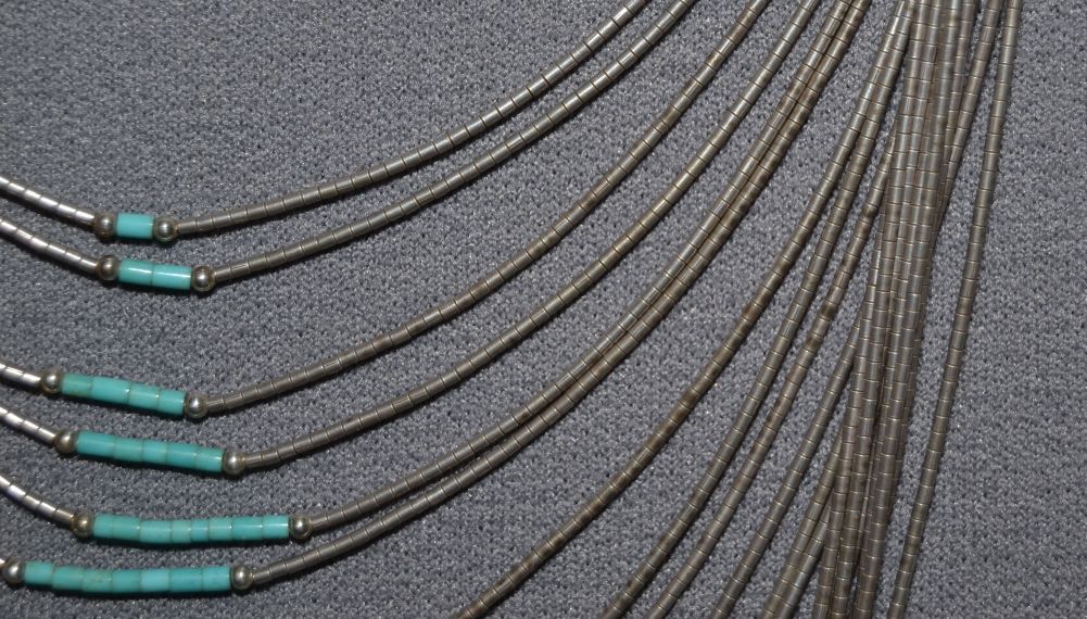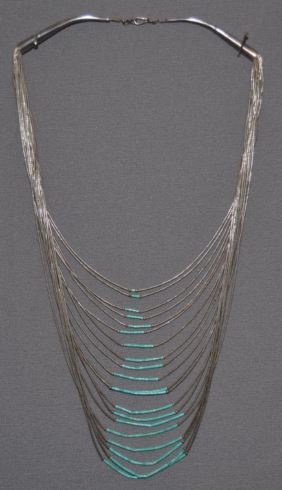 1960s 70s sterling Silver and turquoise liquid Silver style 20 strands 20 inches long