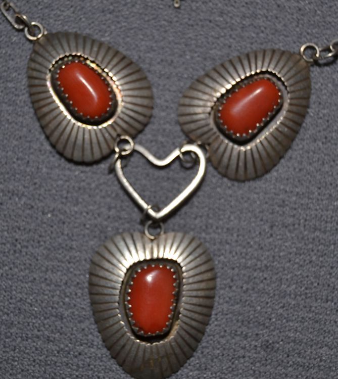 1960s 70s sterling silver hand made chain shadow box coral design 14" long