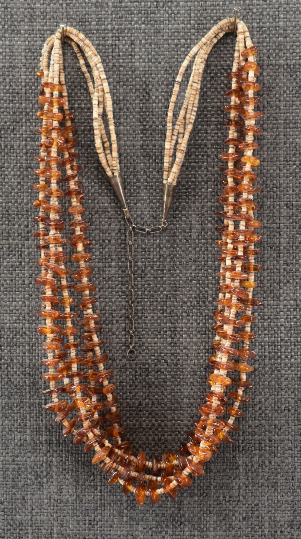 1980-90's Navajo, multiple strands of heishi with amber beads 27" long