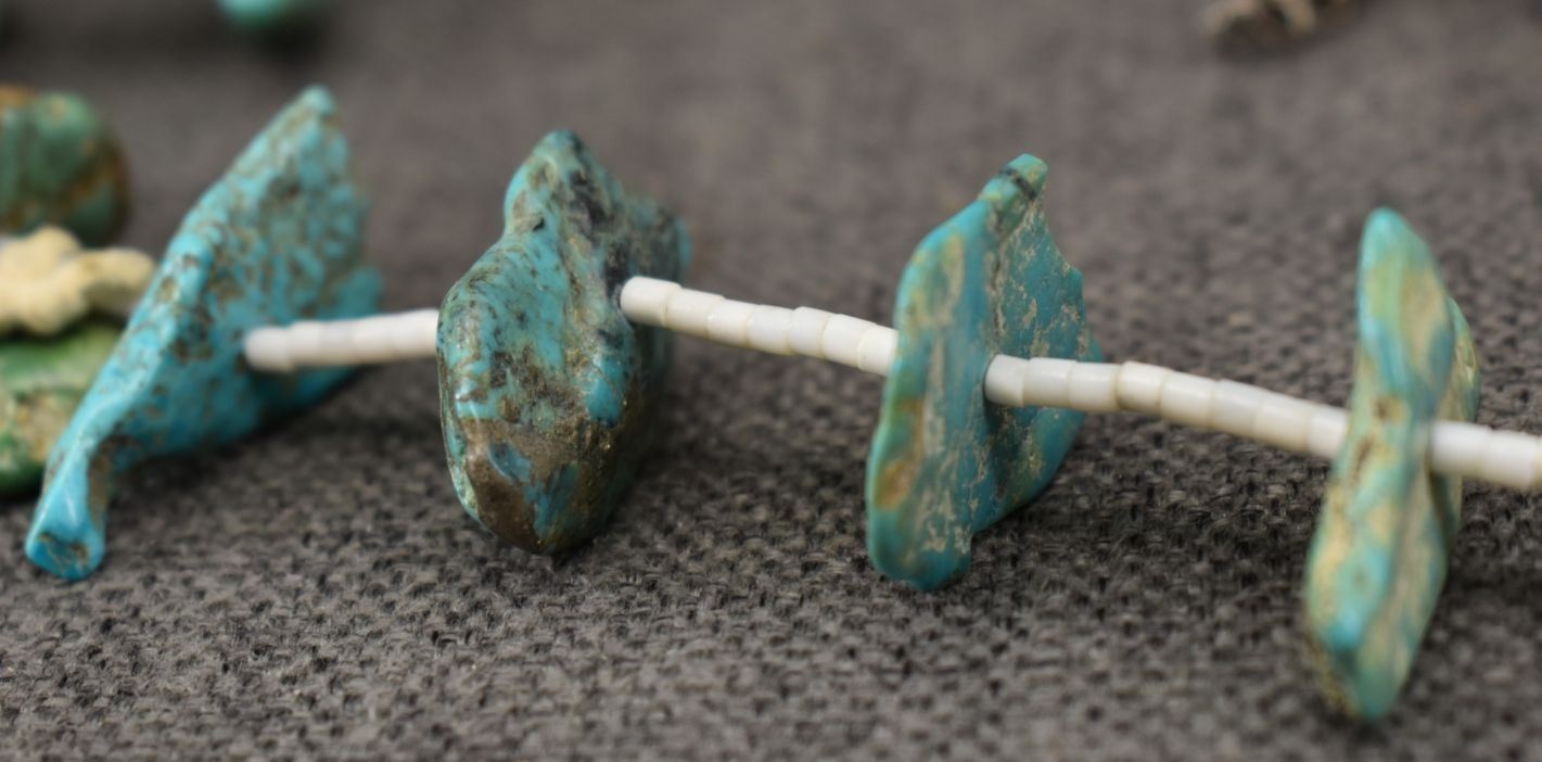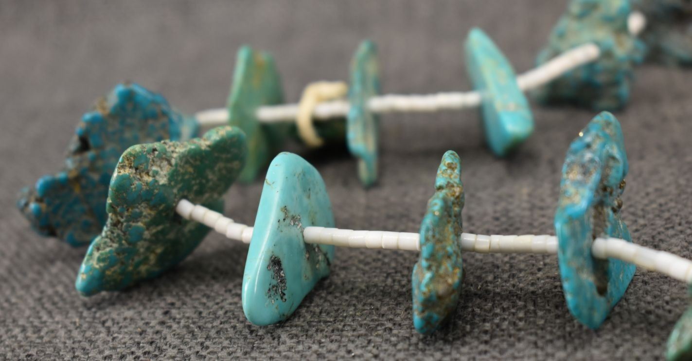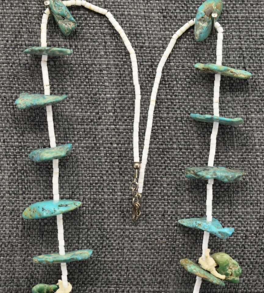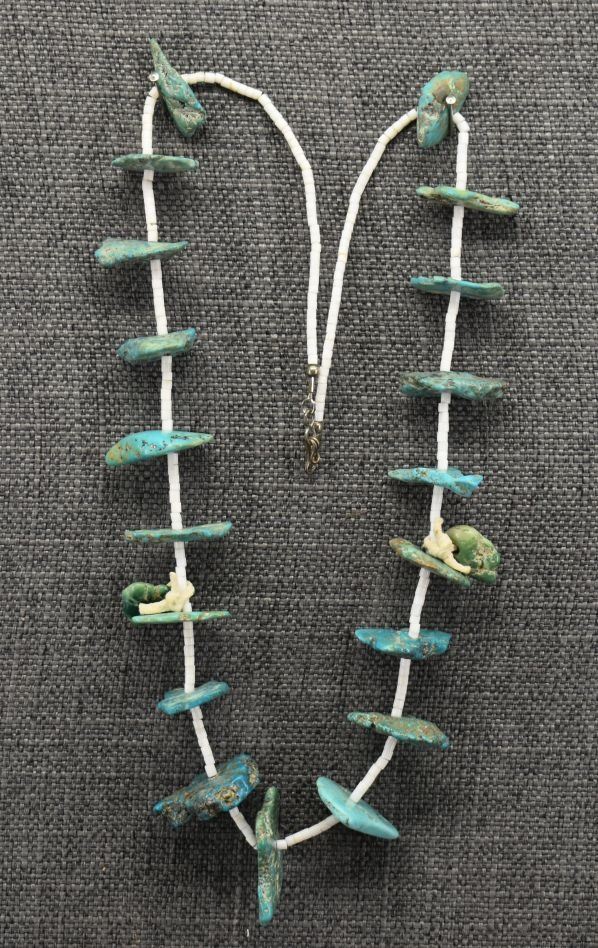 1960-70's Navajo, single strand of shell beads with turquoise 26" long