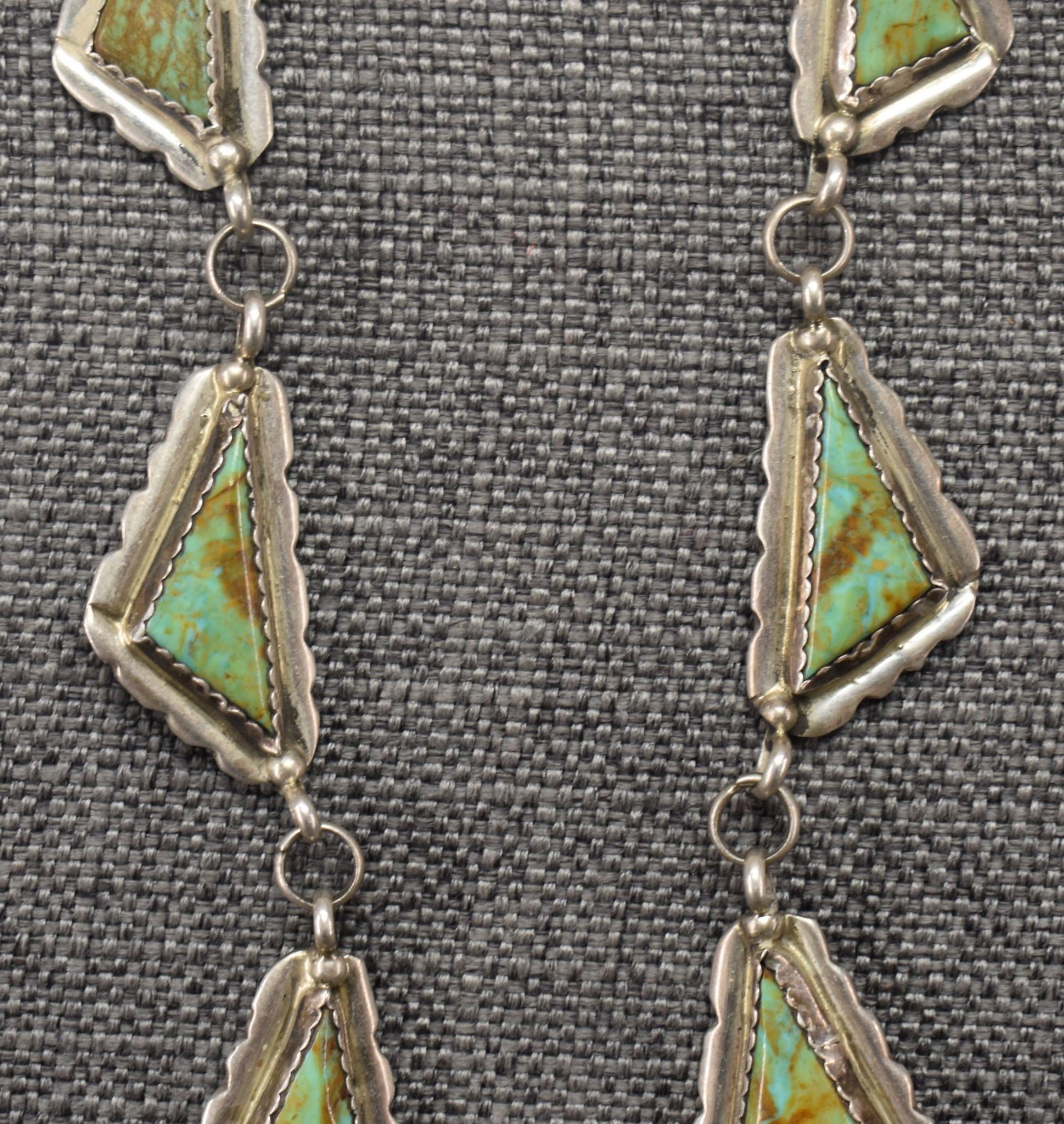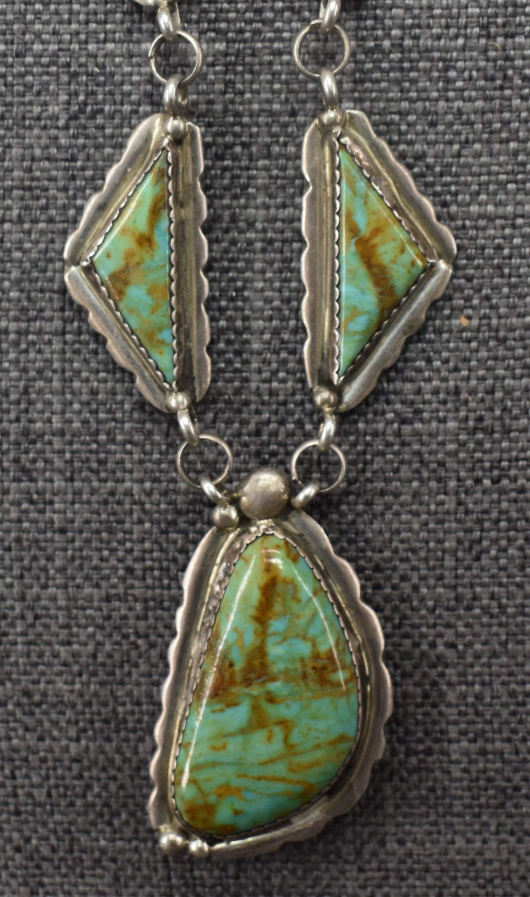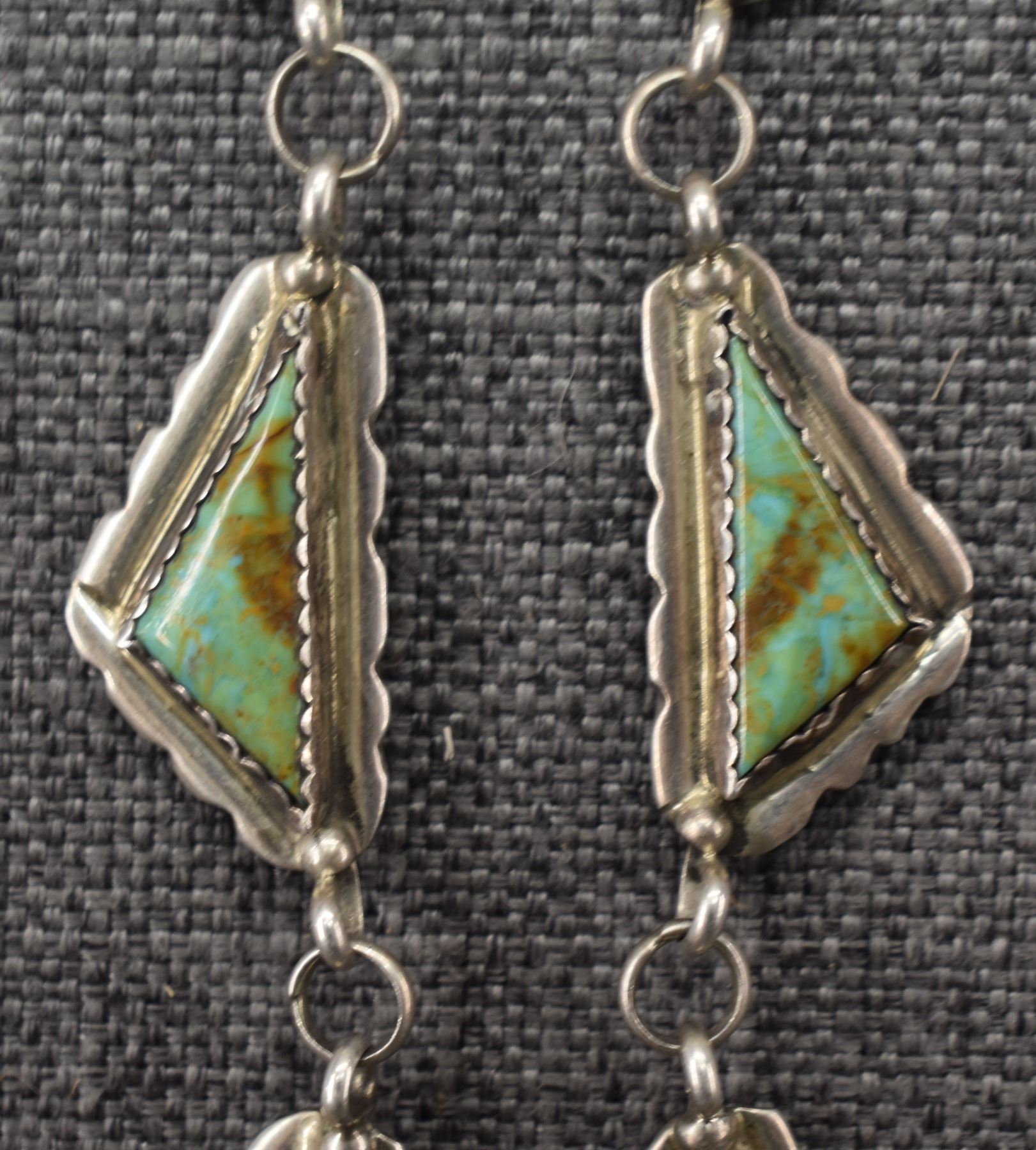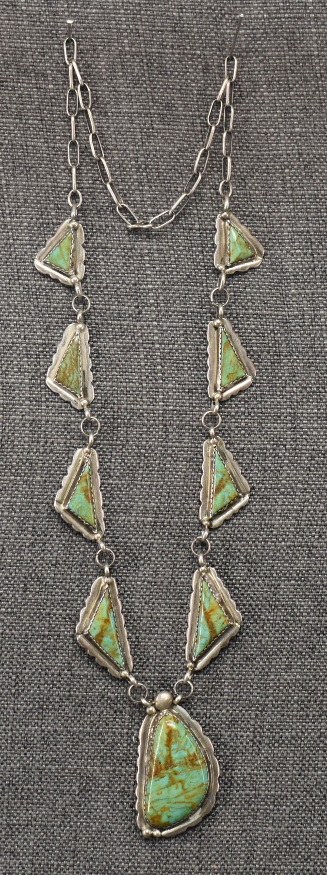 1960's Navajo, sterling silver and turquoise necklace 28'' long and pendant2.5'' x 1.5''. Total weight 110 grams