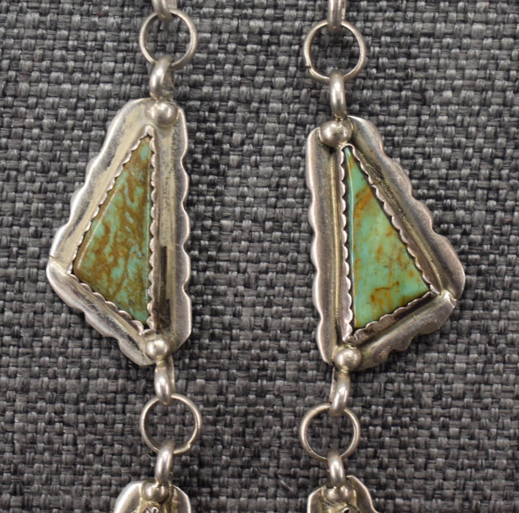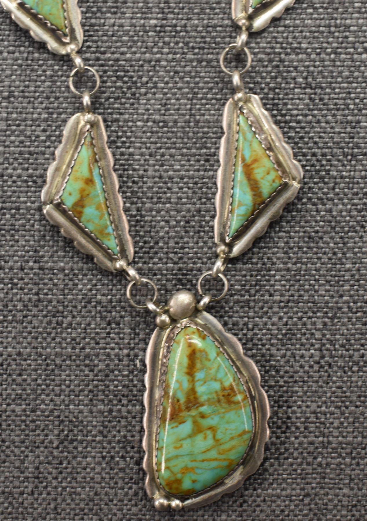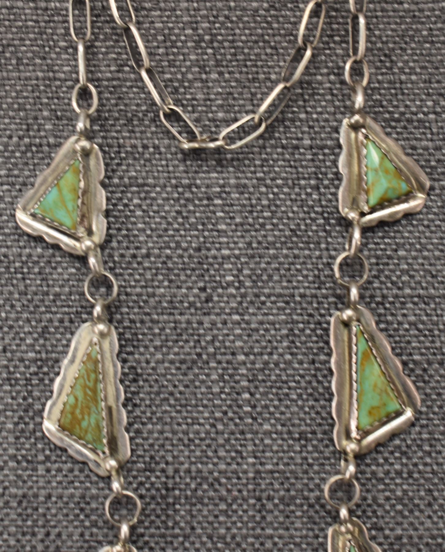 1960's Navajo, sterling silver and turquoise necklace 28'' long and pendant2.5'' x 1.5''. Total weight 110 grams