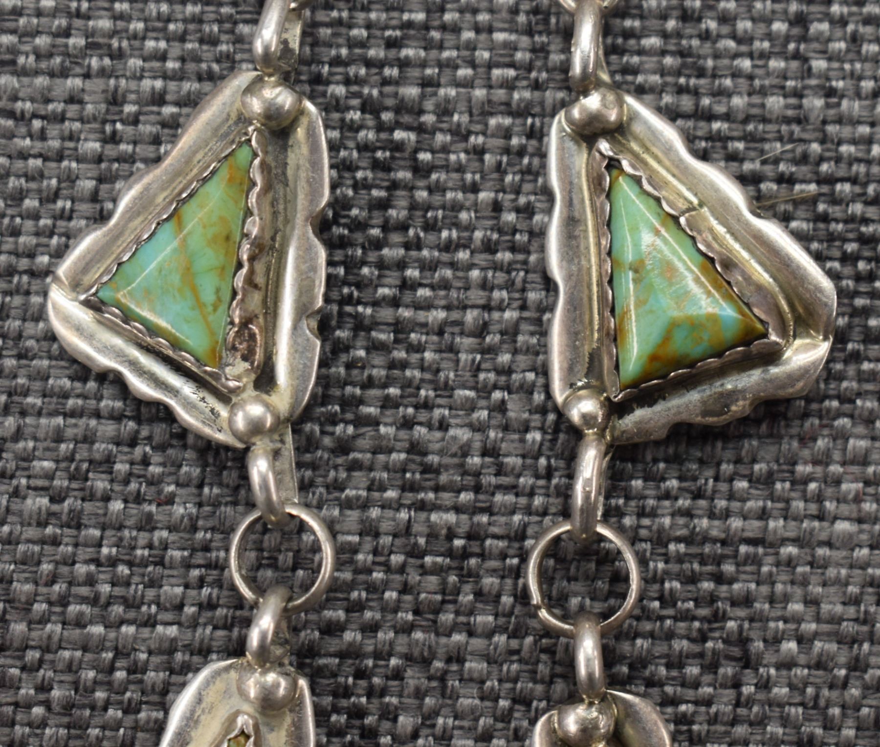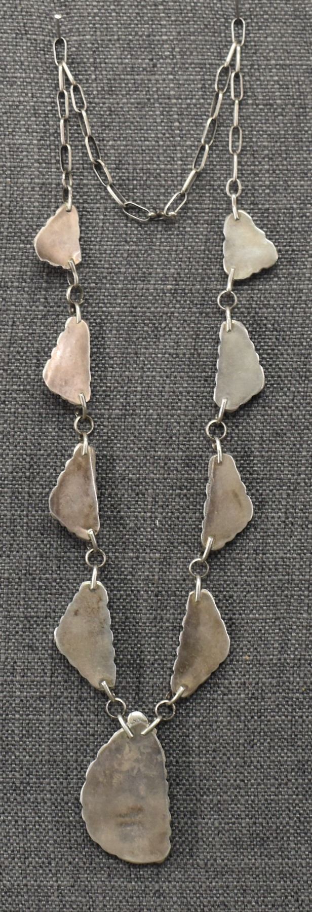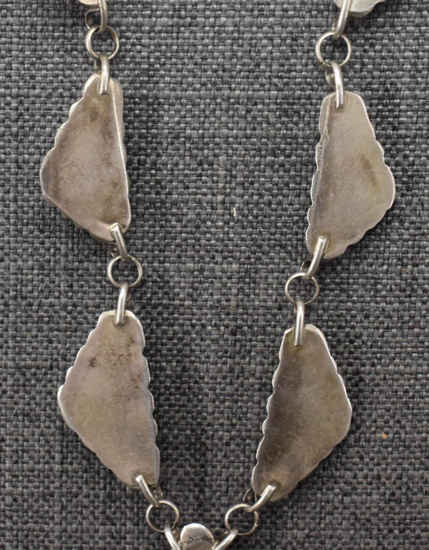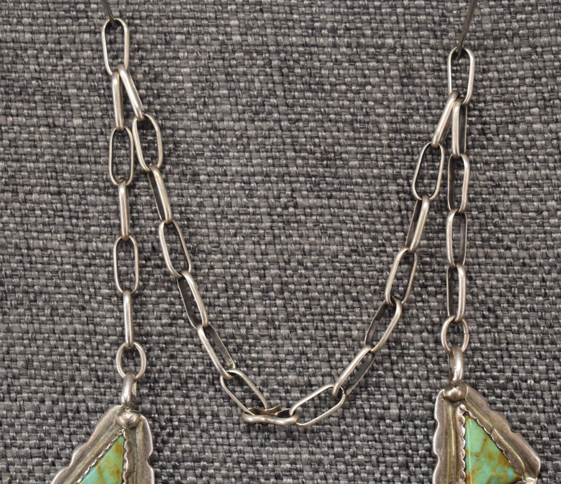 1960's Navajo, sterling silver and turquoise necklace 28'' long and pendant2.5'' x 1.5''. Total weight 110 grams