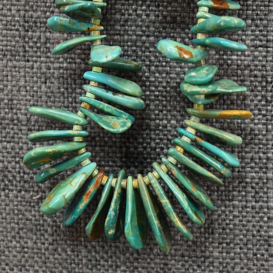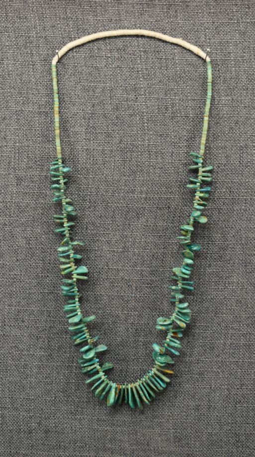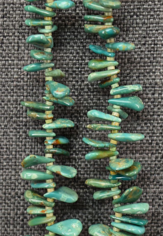 1960's Navajo. Single strand turquoise tab necklace 30'' long