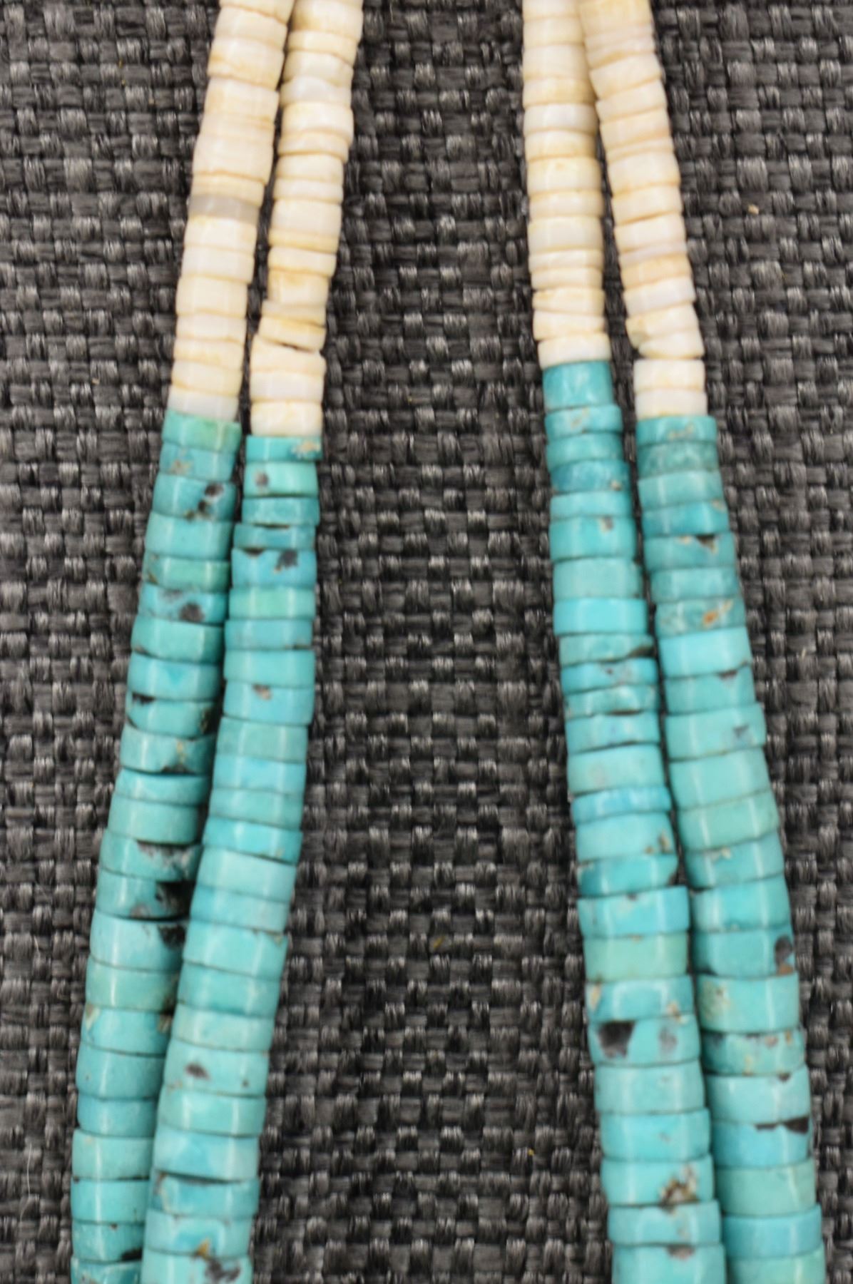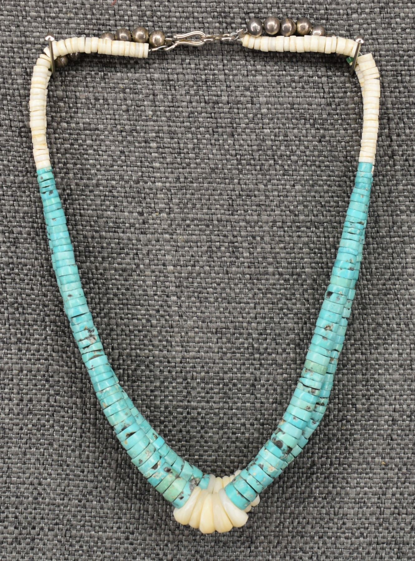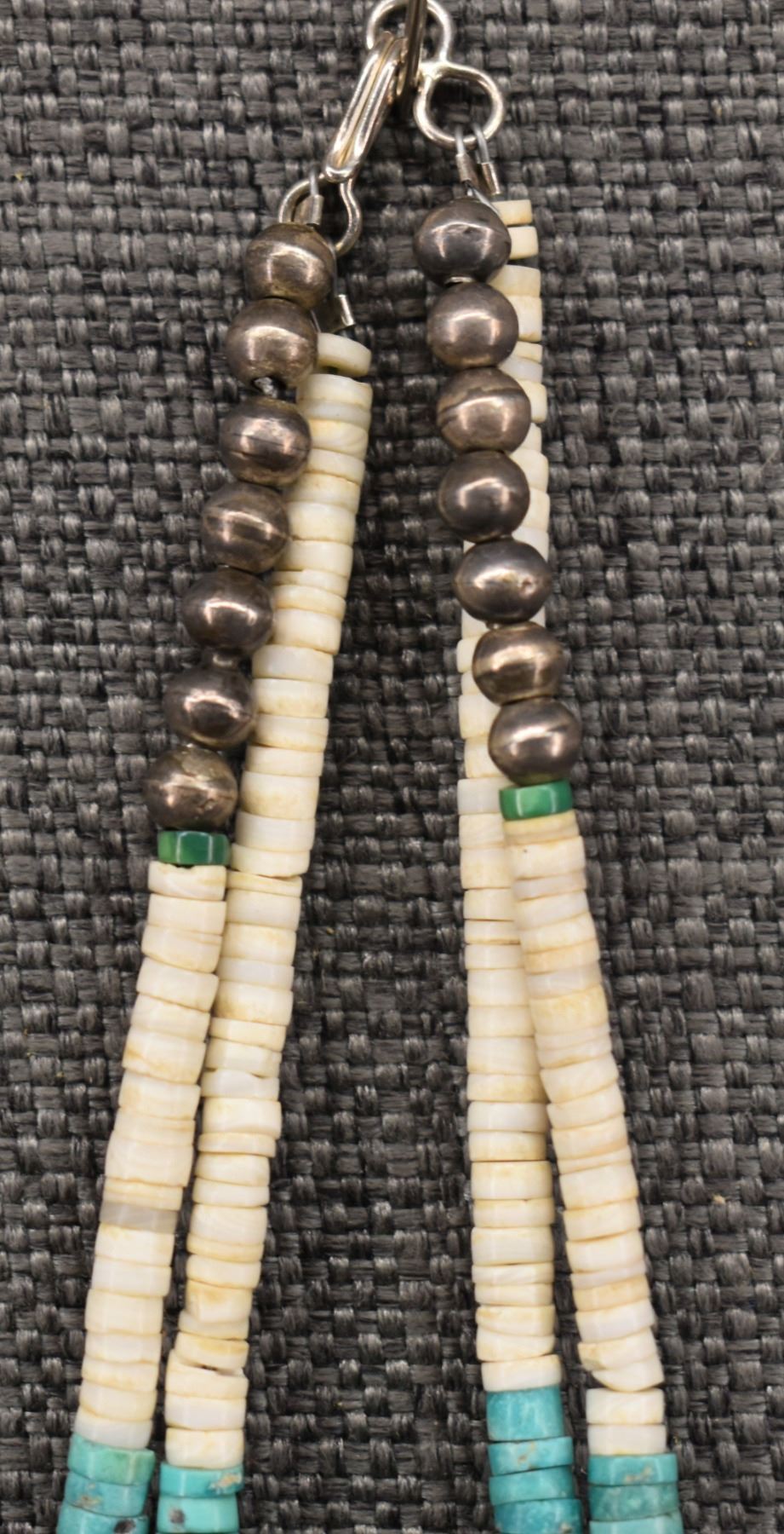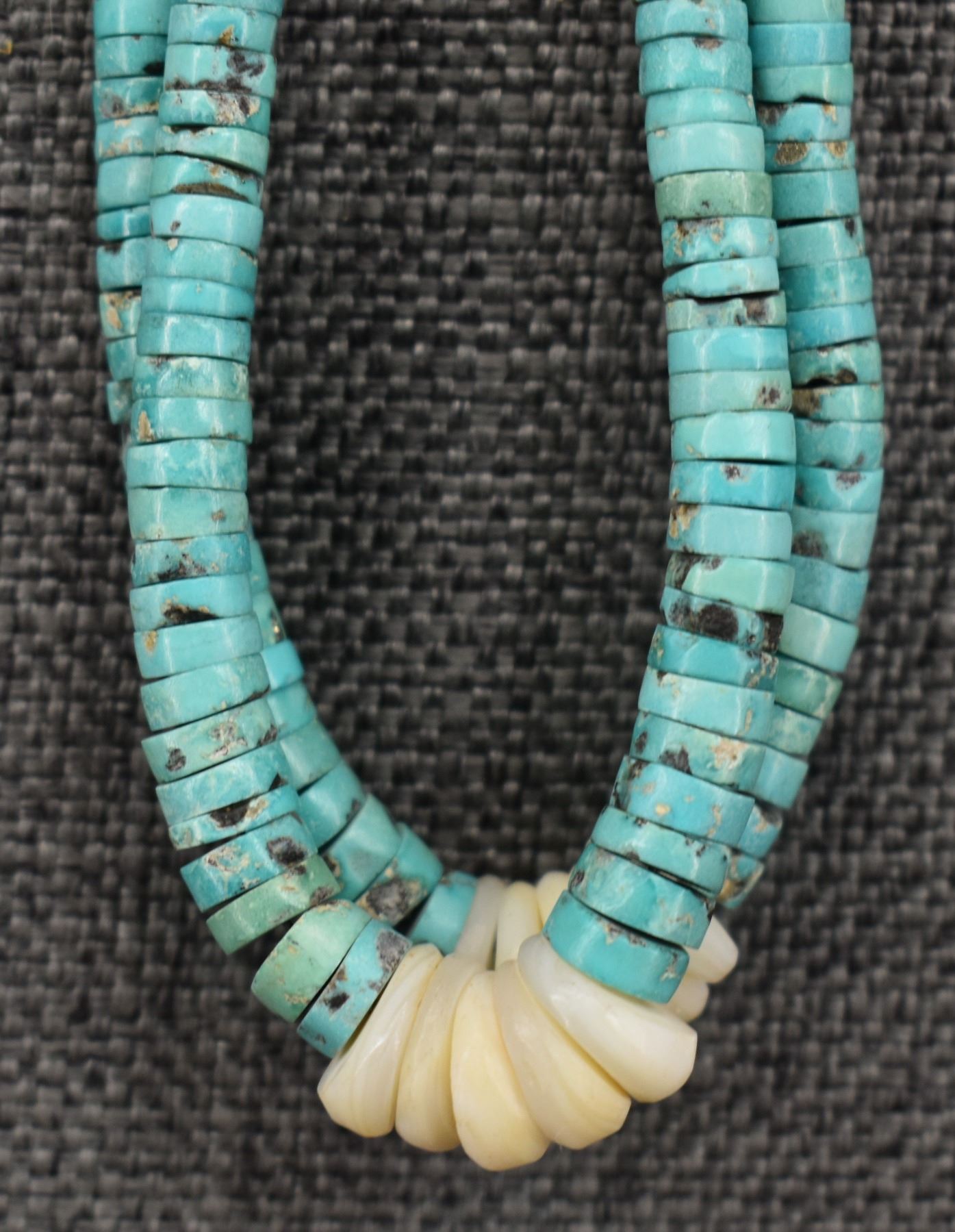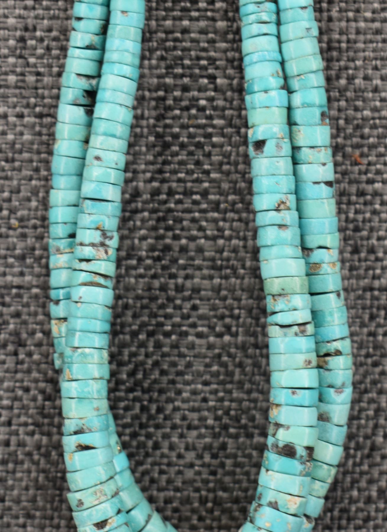 1980's Navajo, two strands of turquoise shell and silver beads 15.5" long