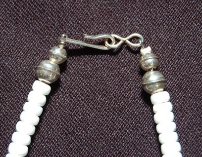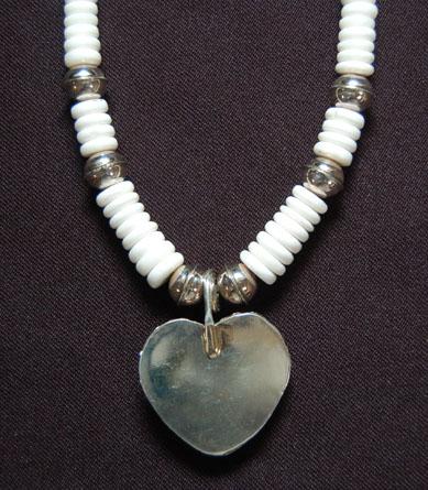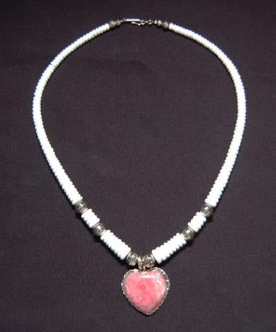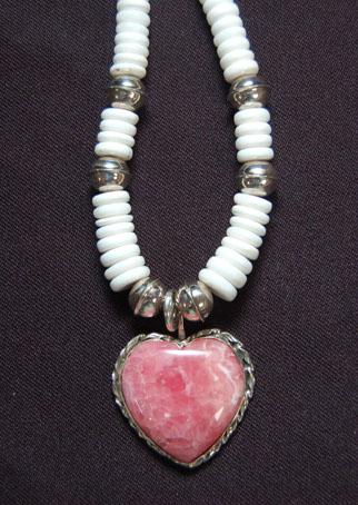 shell heshi, silver & stone pendant, 20” long, 1970’S