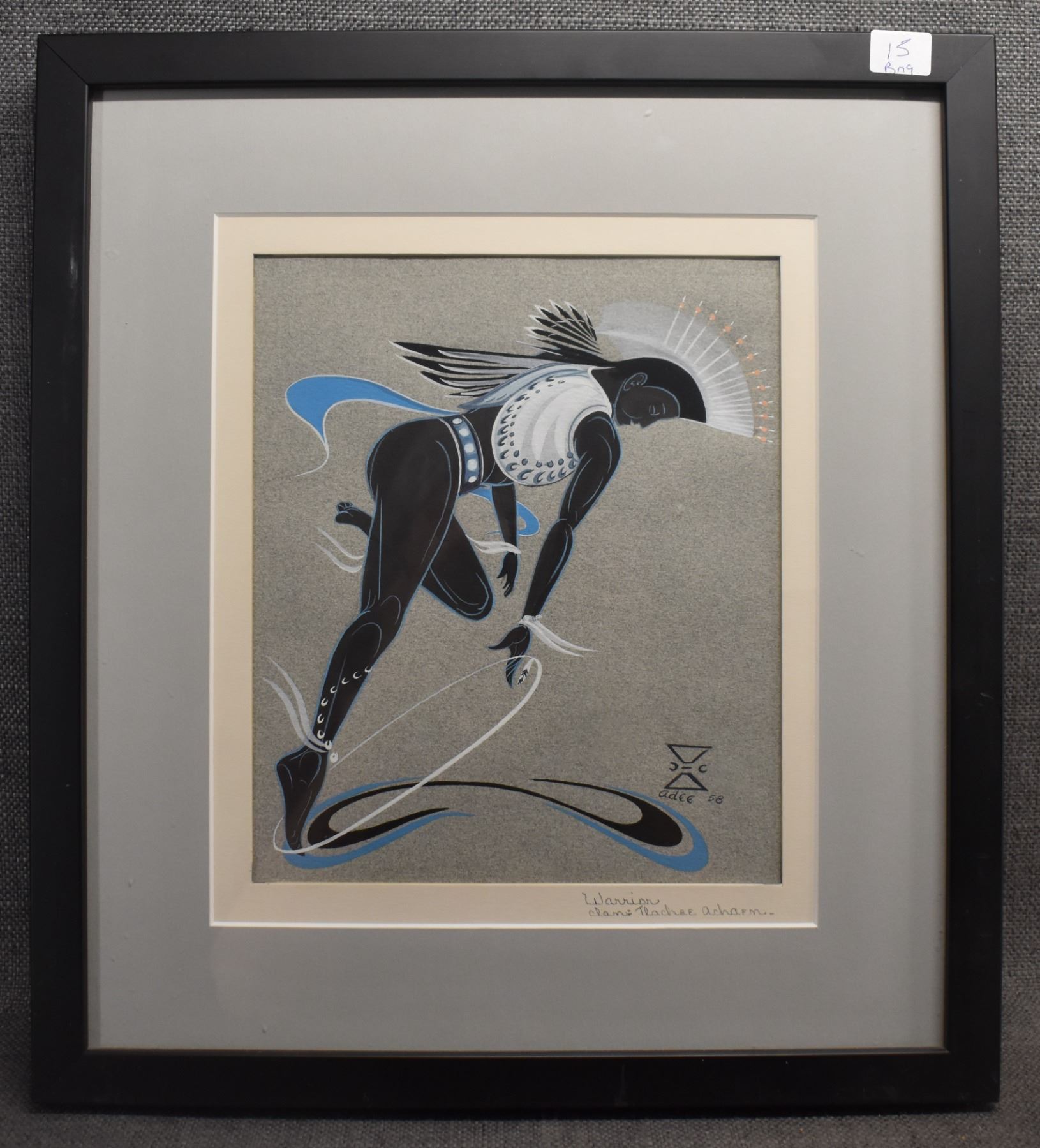 1958 Navajo. Original on paper depicting dancer, signed Adee. 9'' x 7.5'' frame size 15.5'' x 13.5''