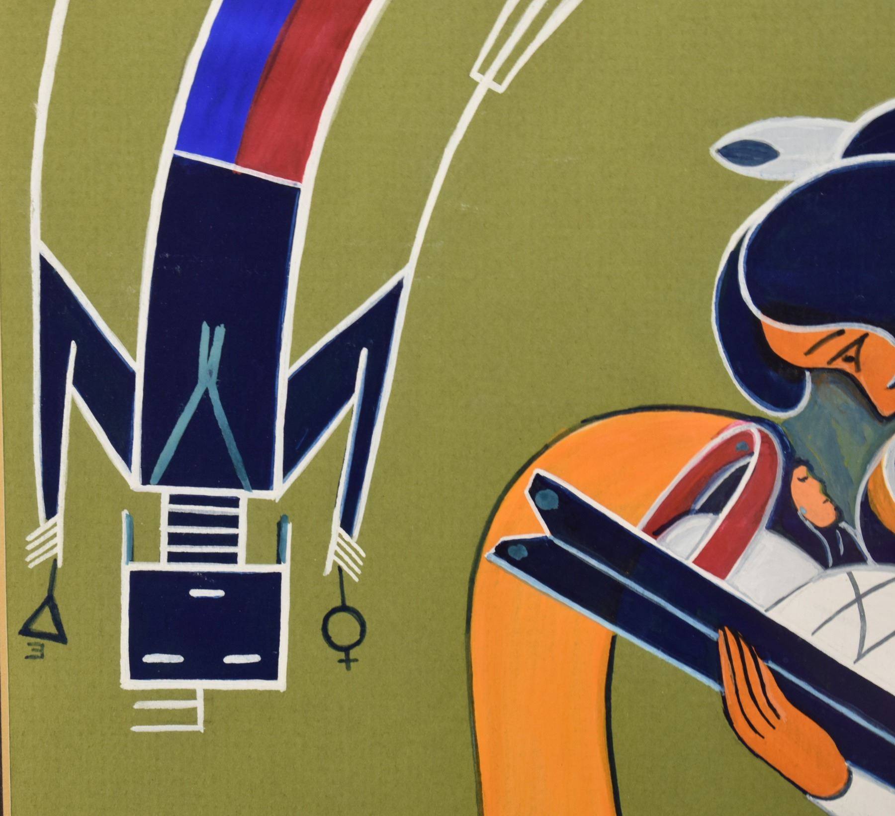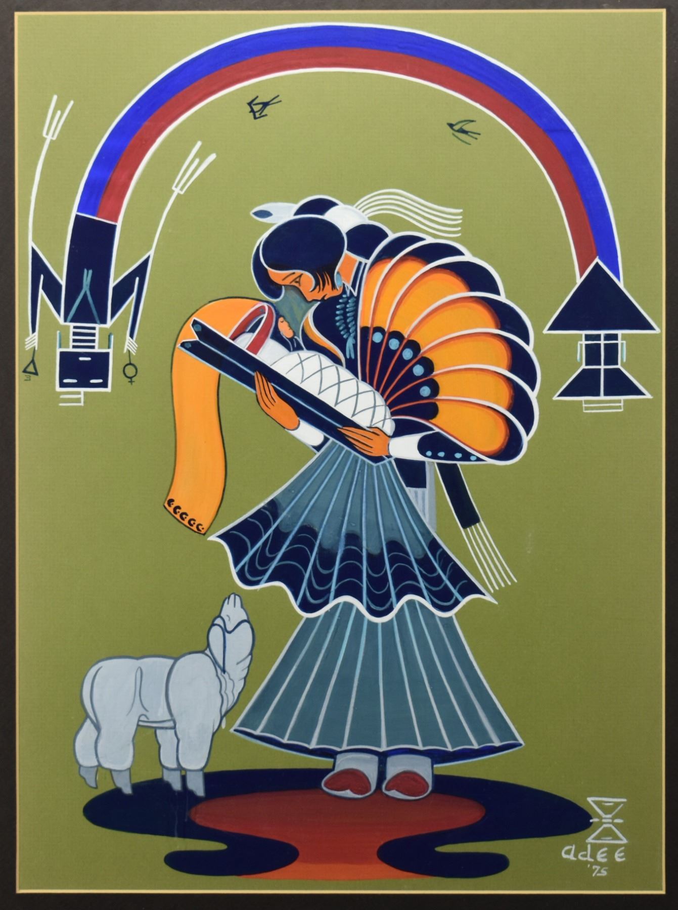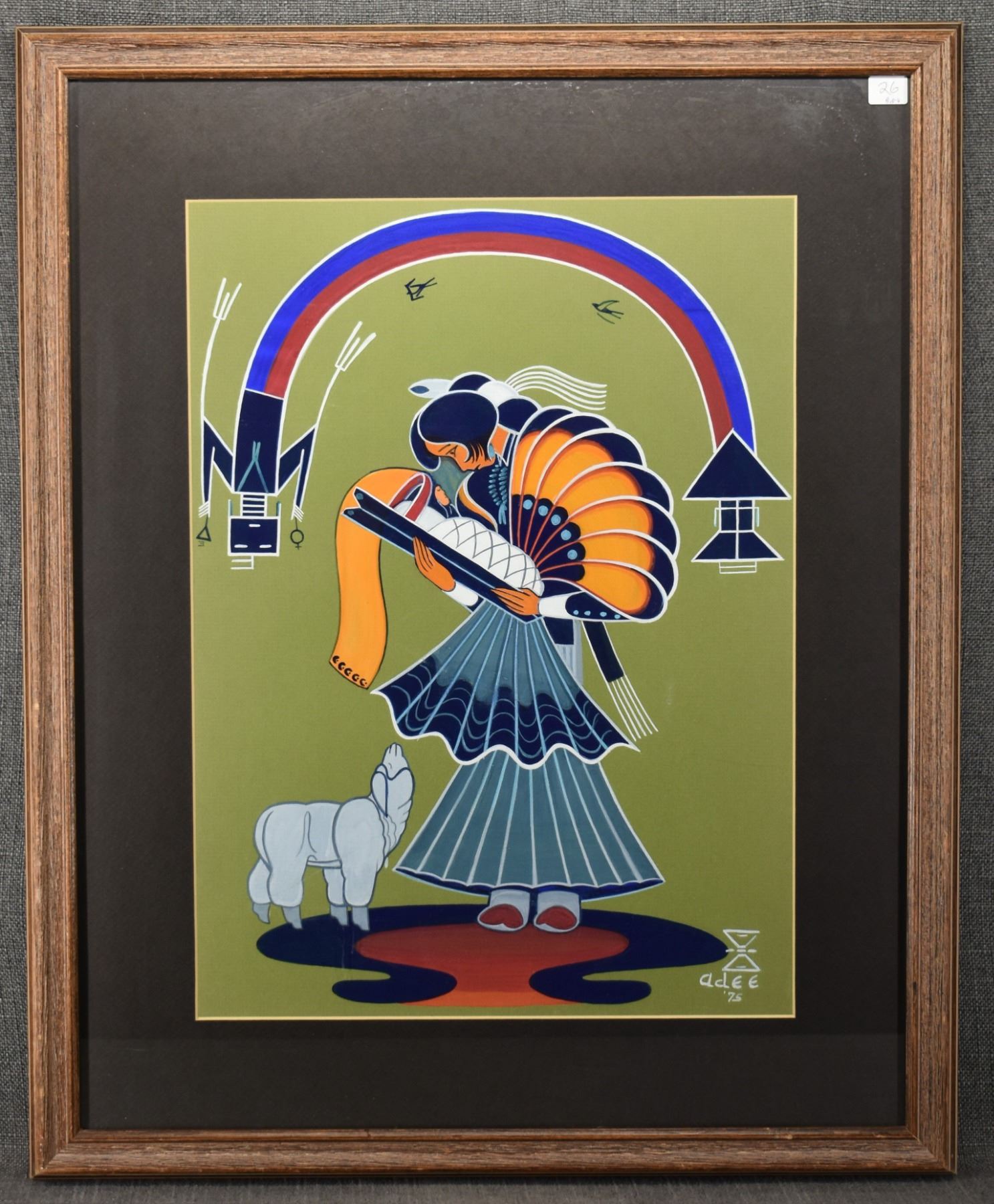 1975 Navajo. Original on paper depicting Navajo woman and child. Signed Adee. 19'' x 14'', frame 26'' x 21''