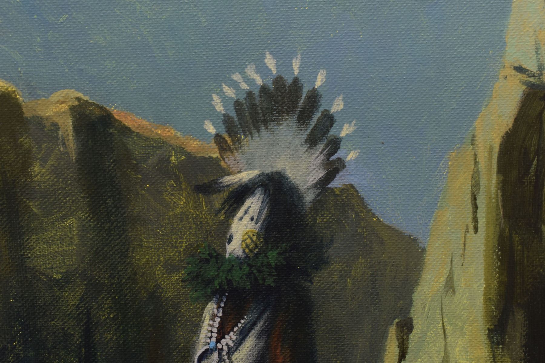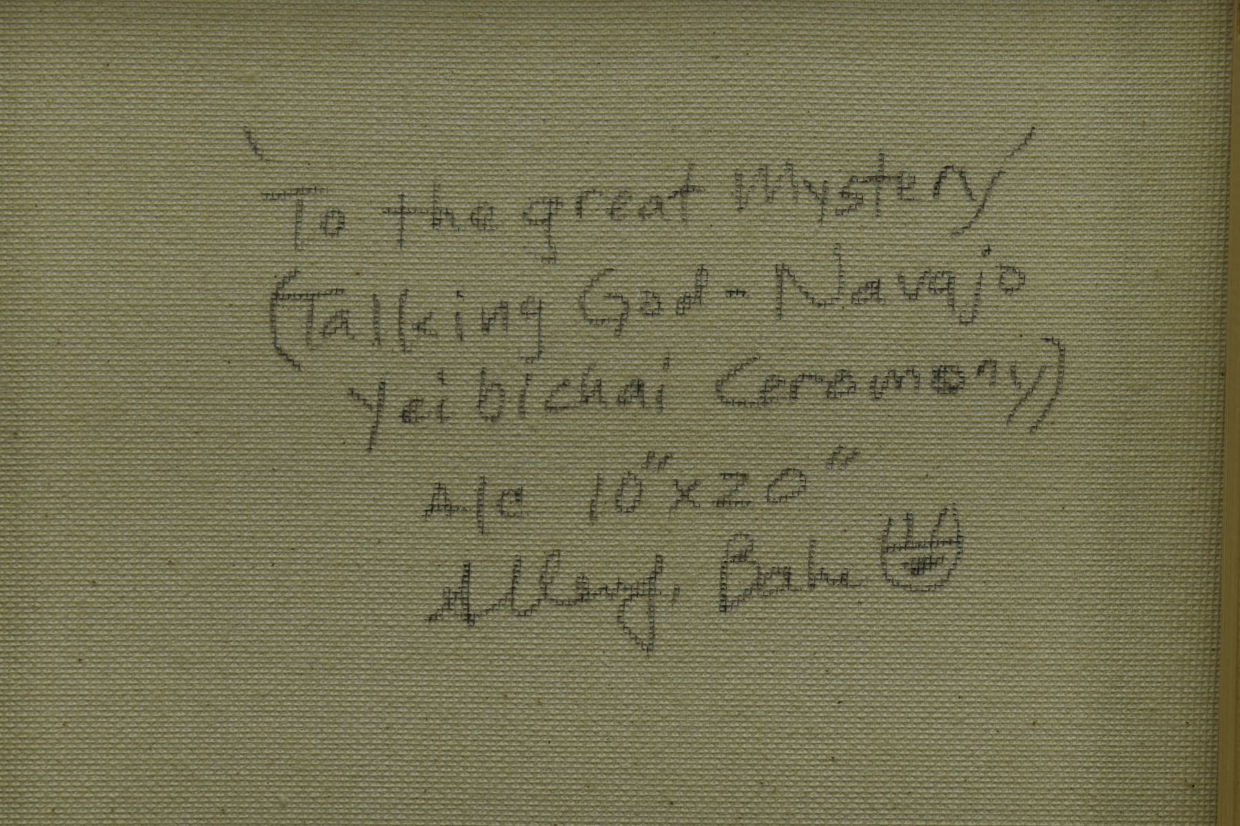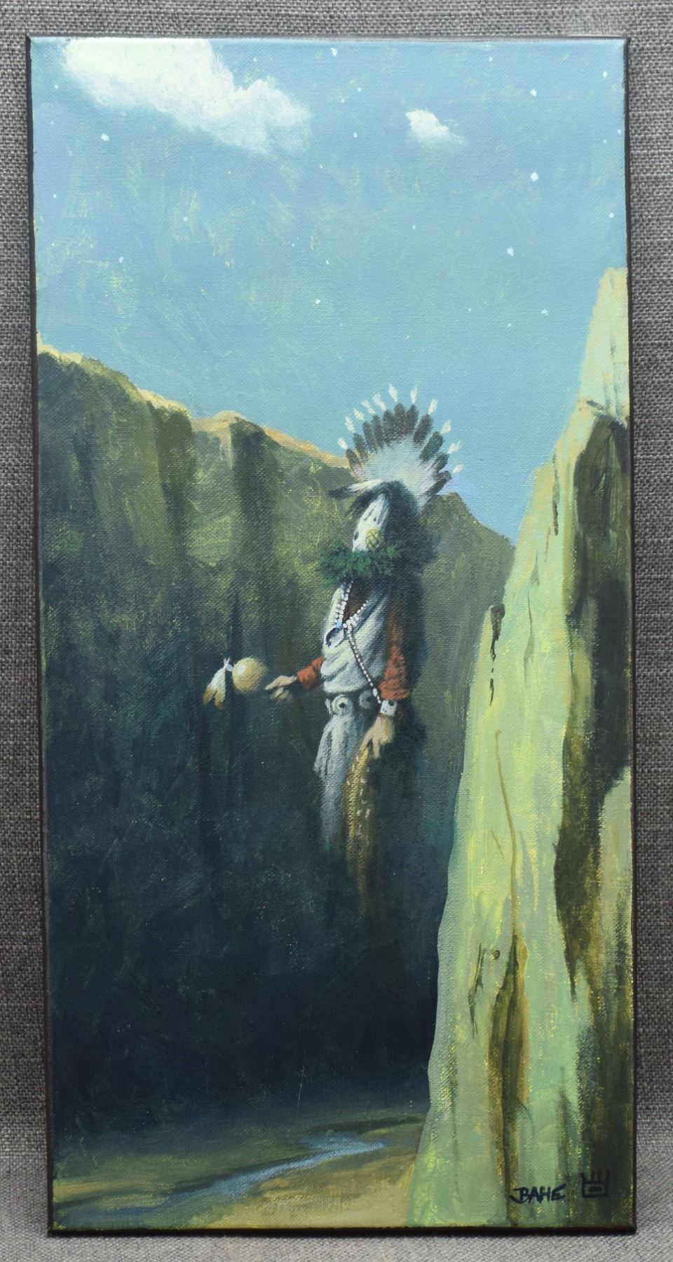 2000's Navajo. Original painting on canvas titled "To The Great Mystery" signed Bahe. 20'' x 10''