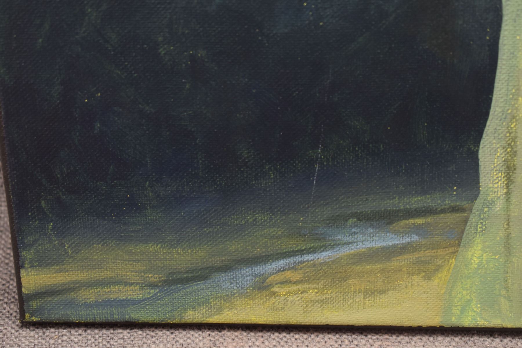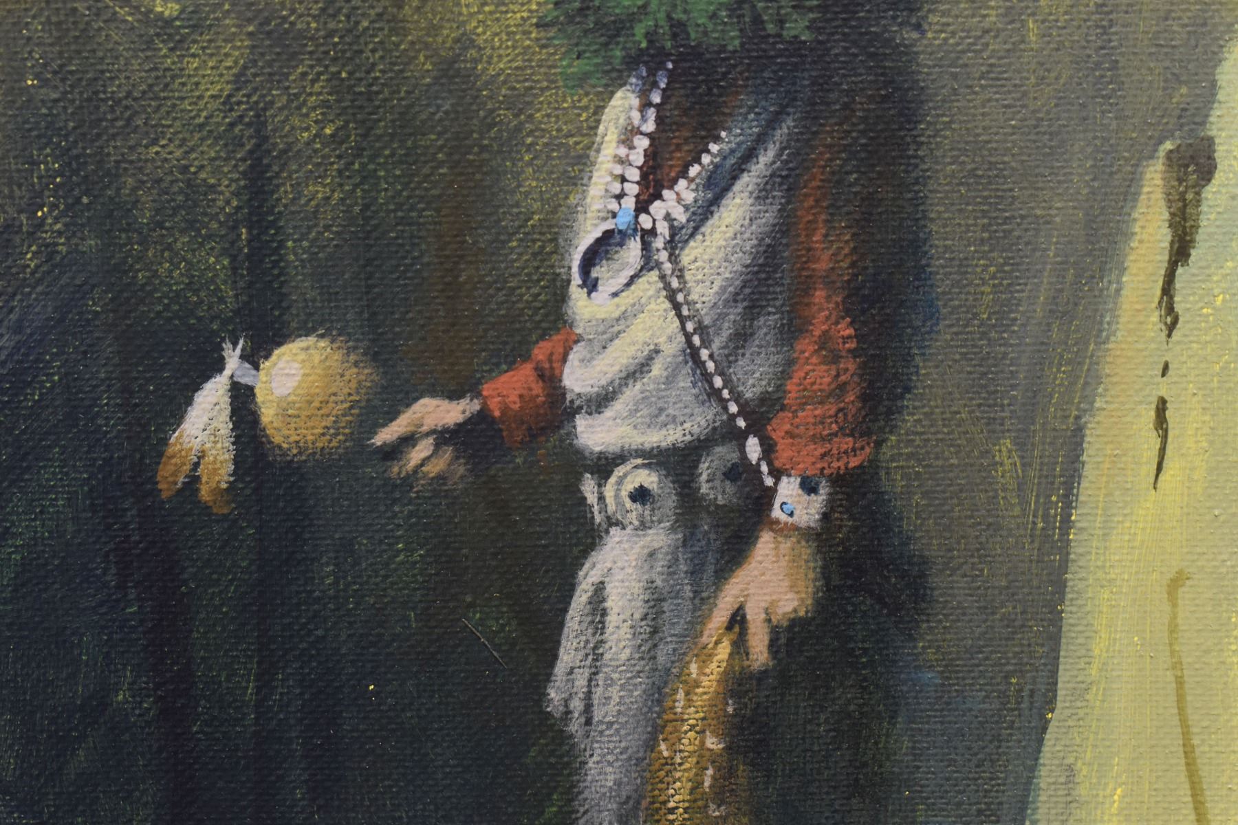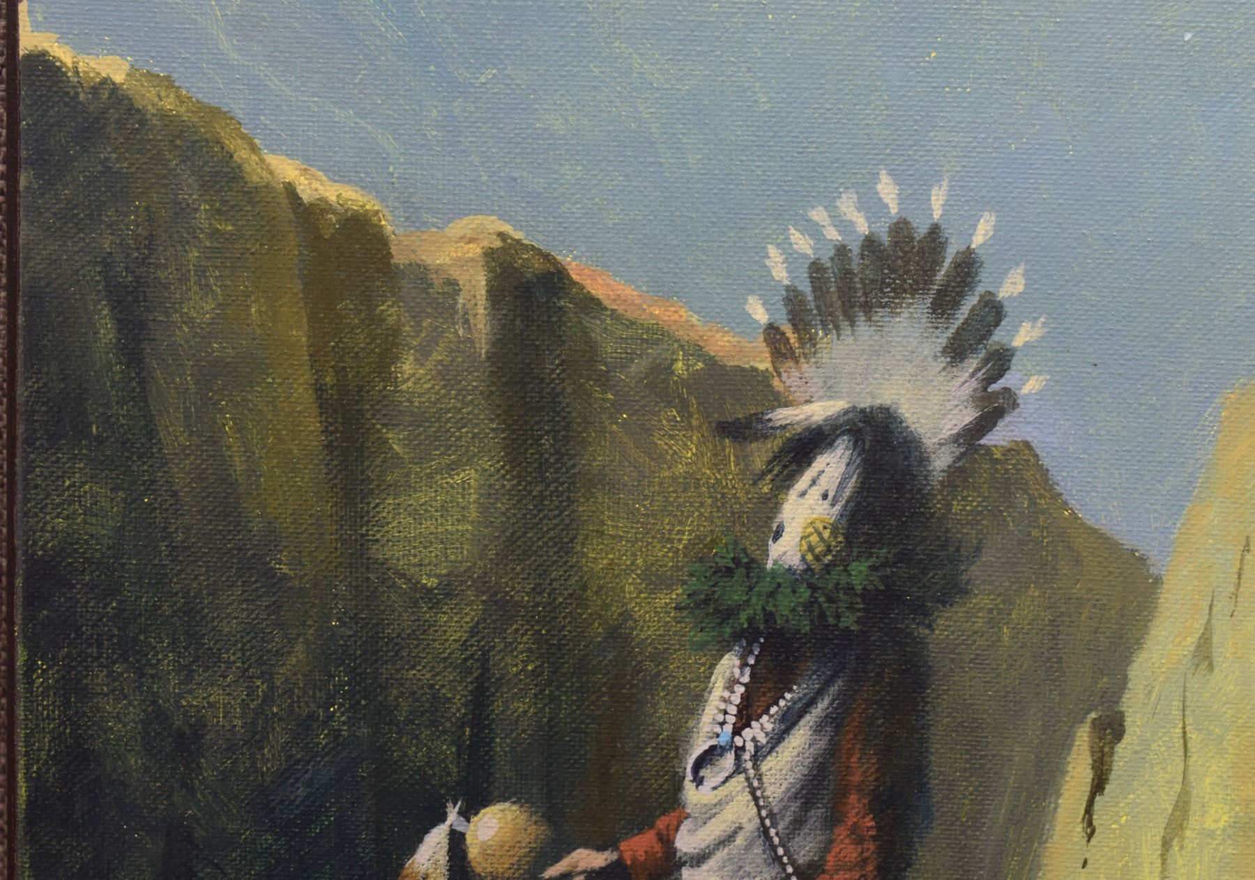 2000's Navajo. Original painting on canvas titled "To The Great Mystery" signed Bahe. 20'' x 10''