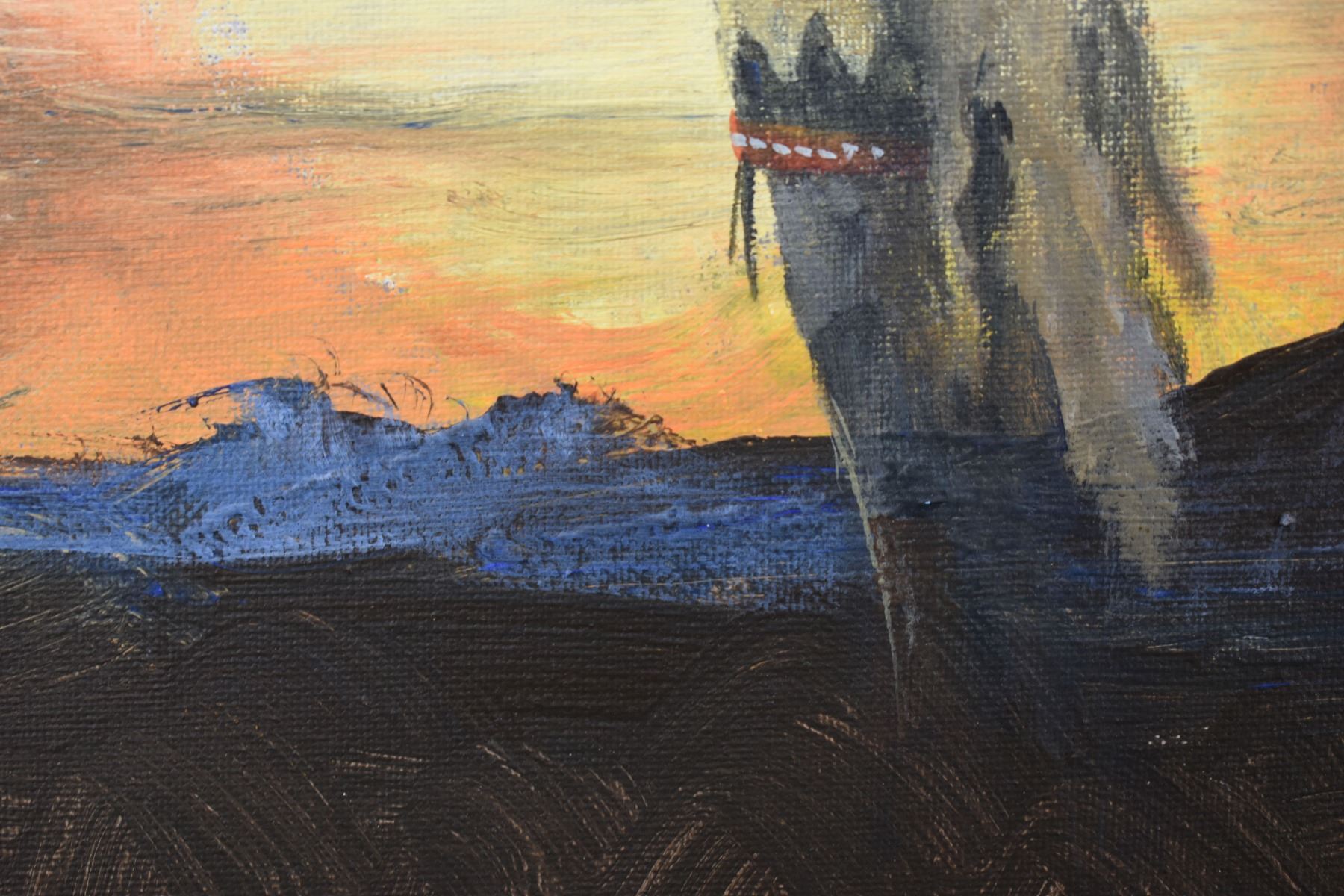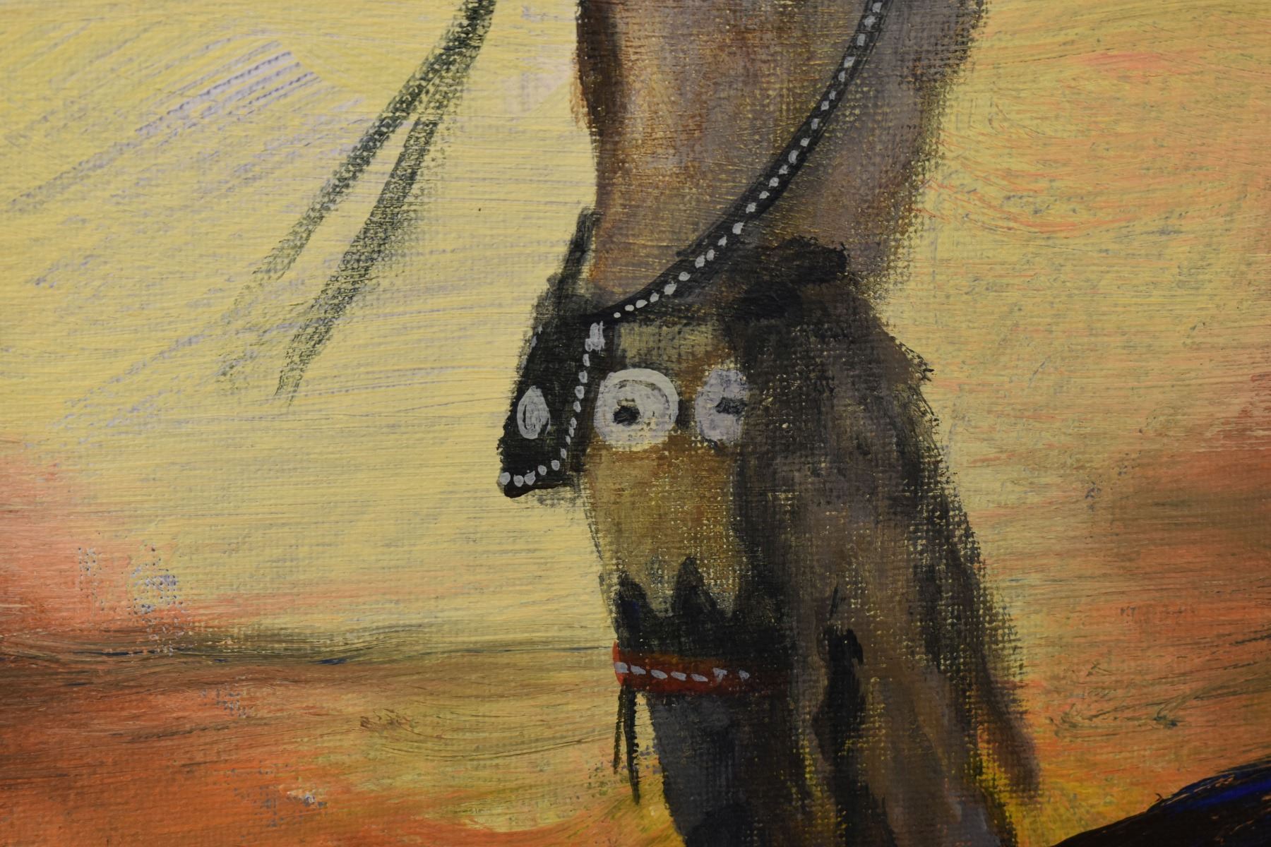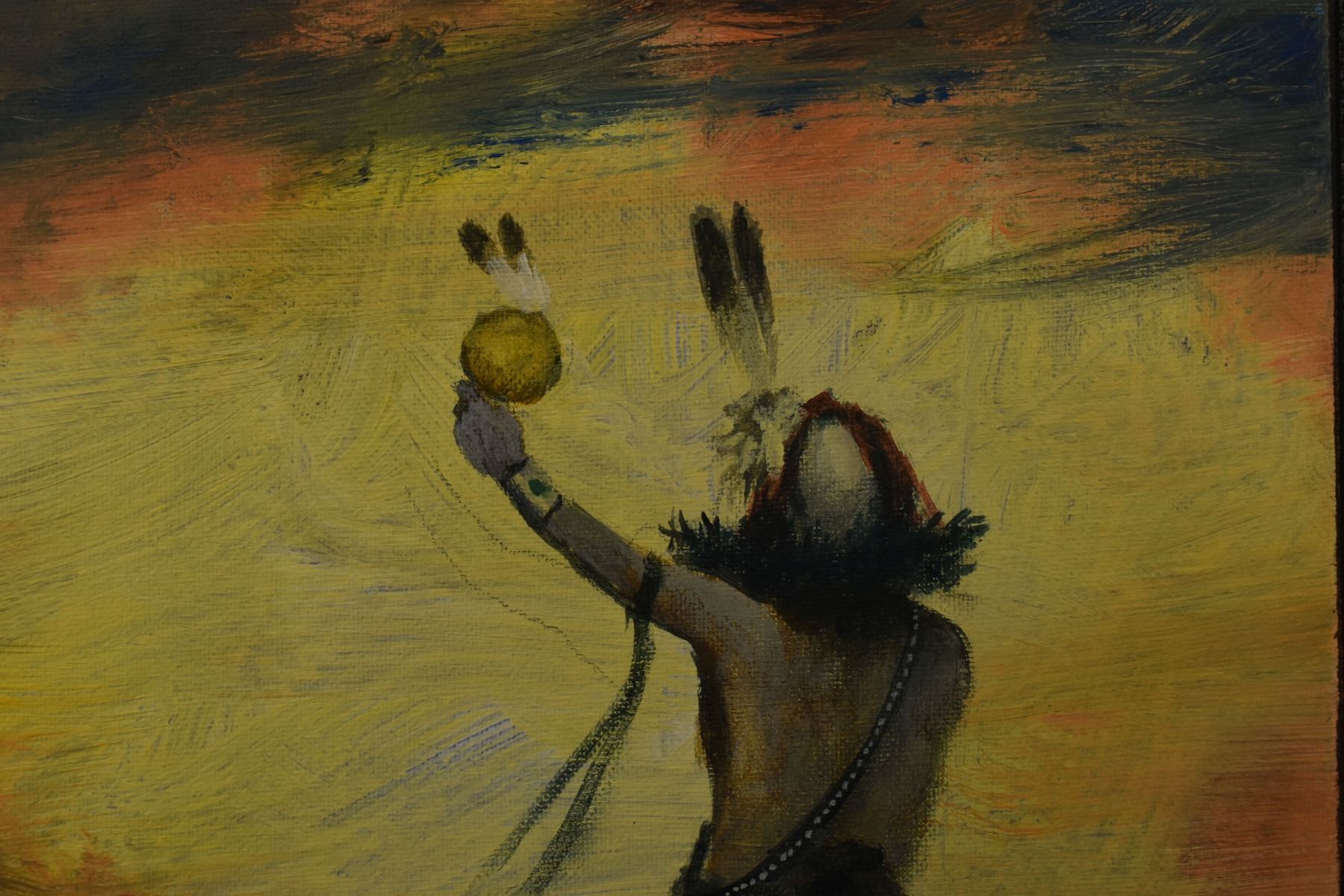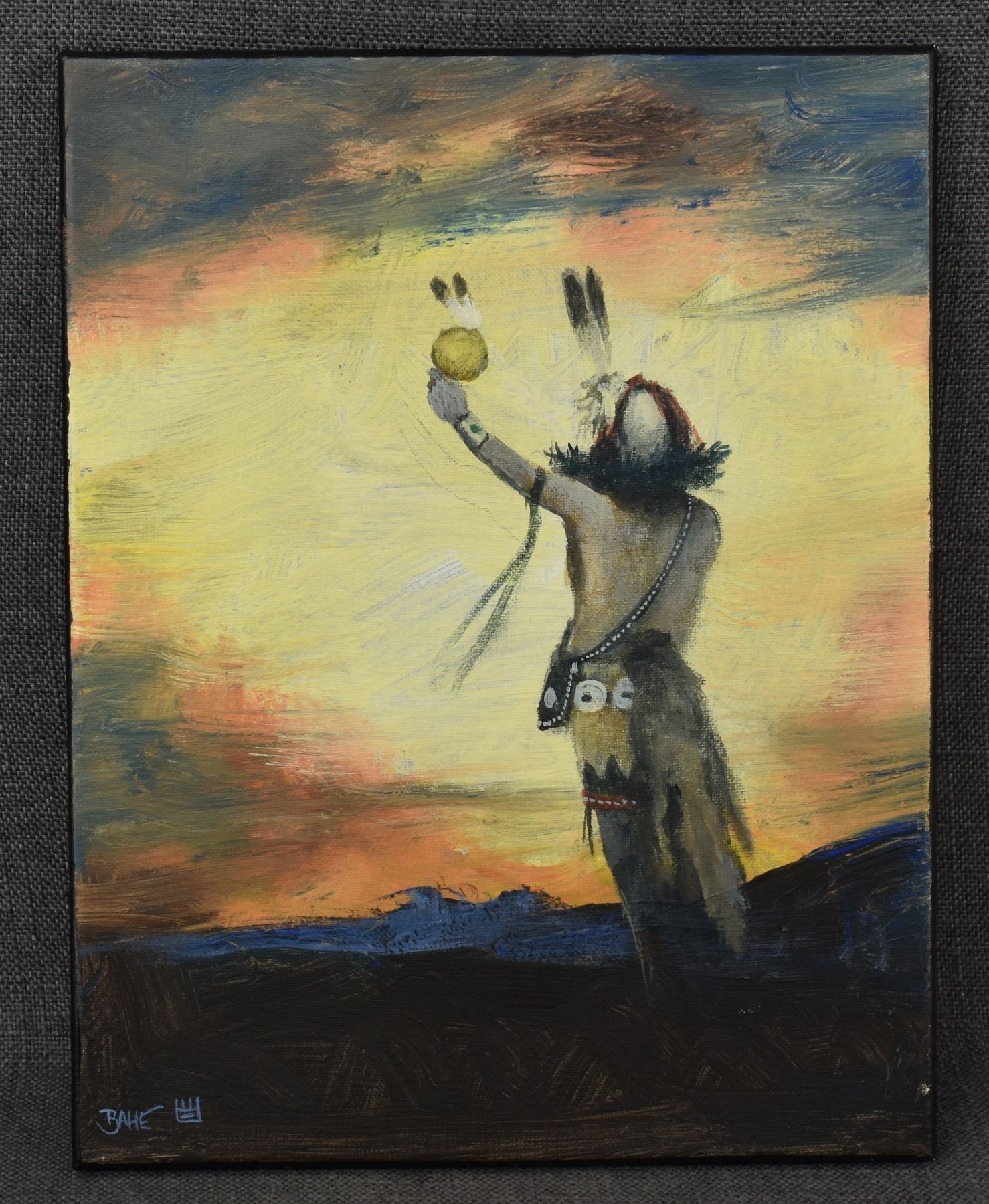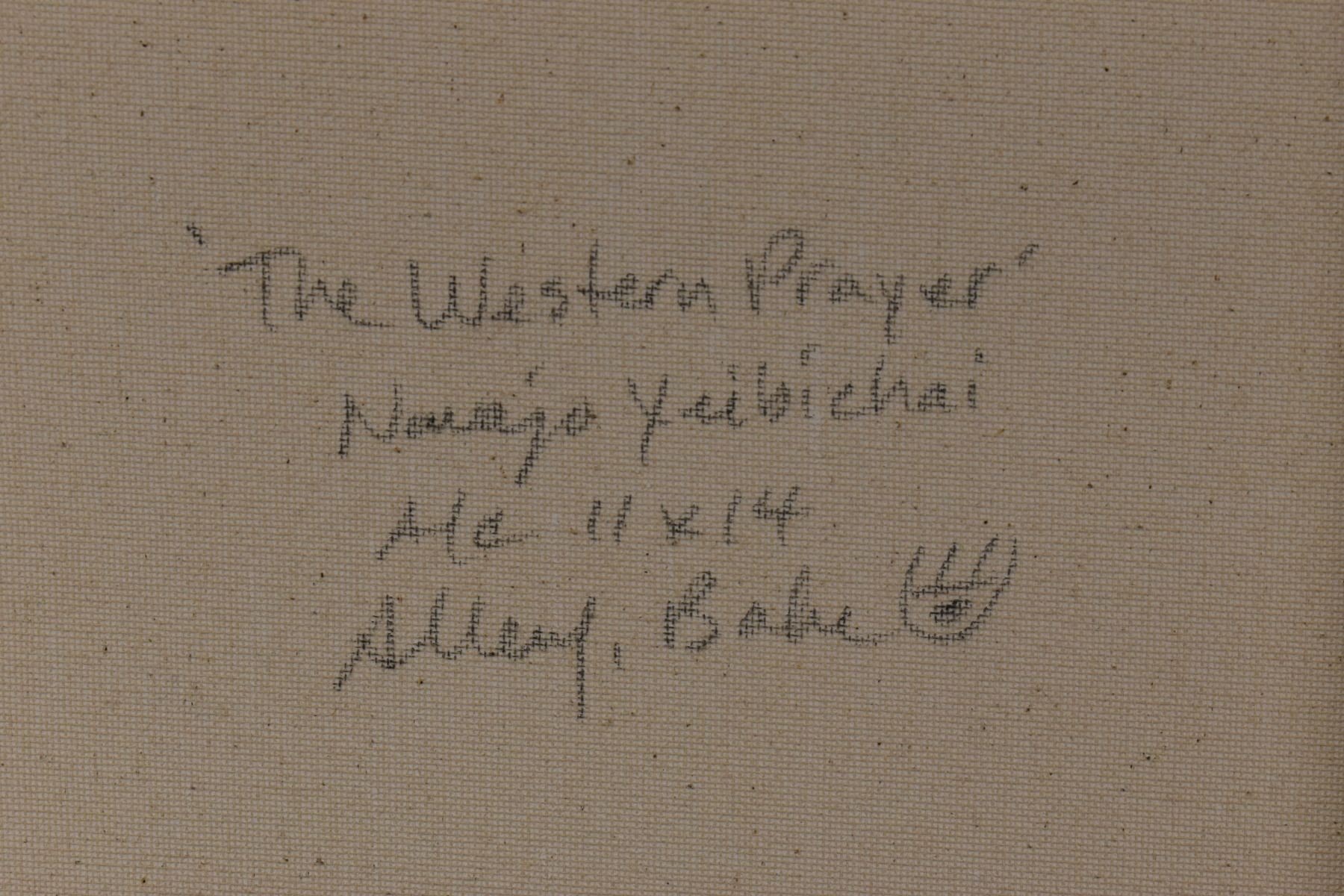 2000's Navajo, original hand painted acrylic on canvas titled "The Western Prayer" by Allen Bahe, 14" x 11"