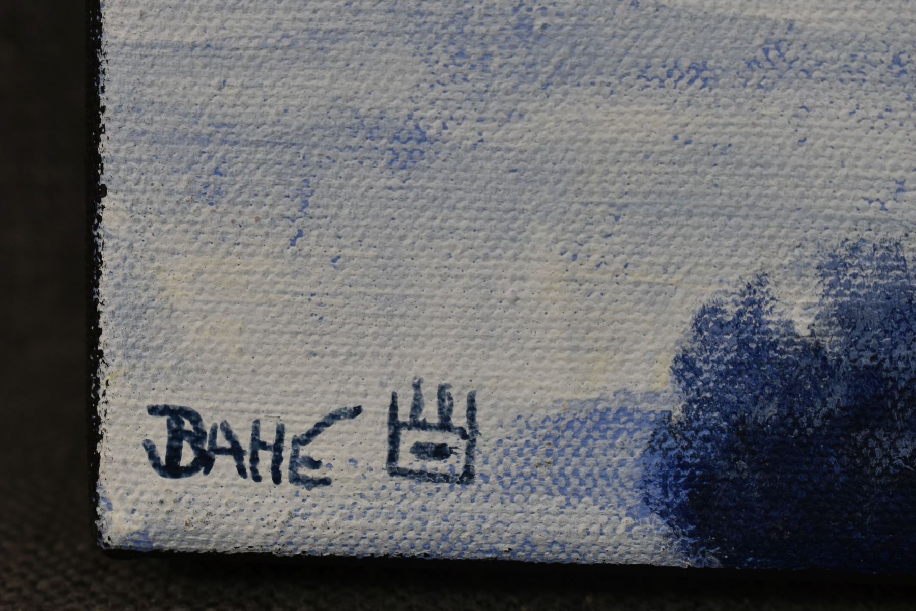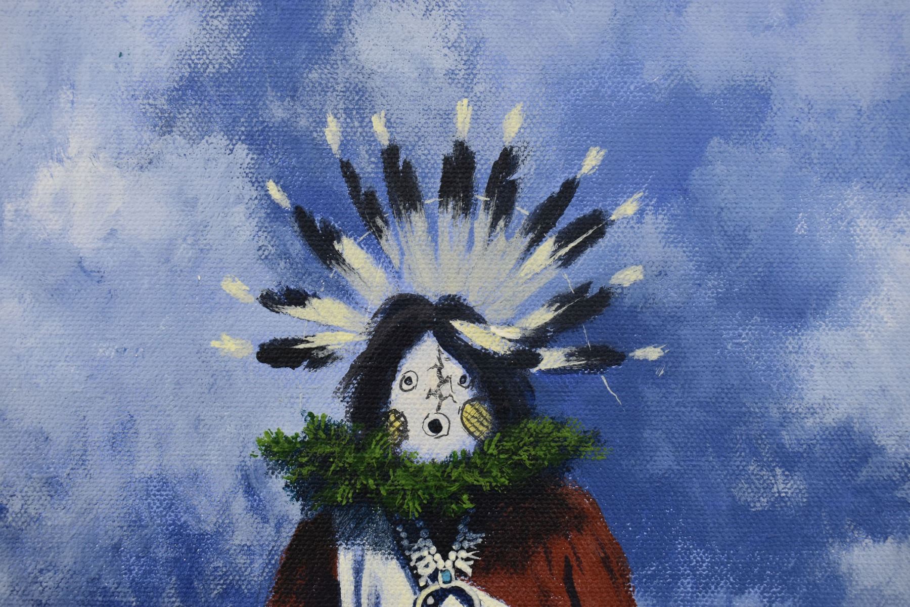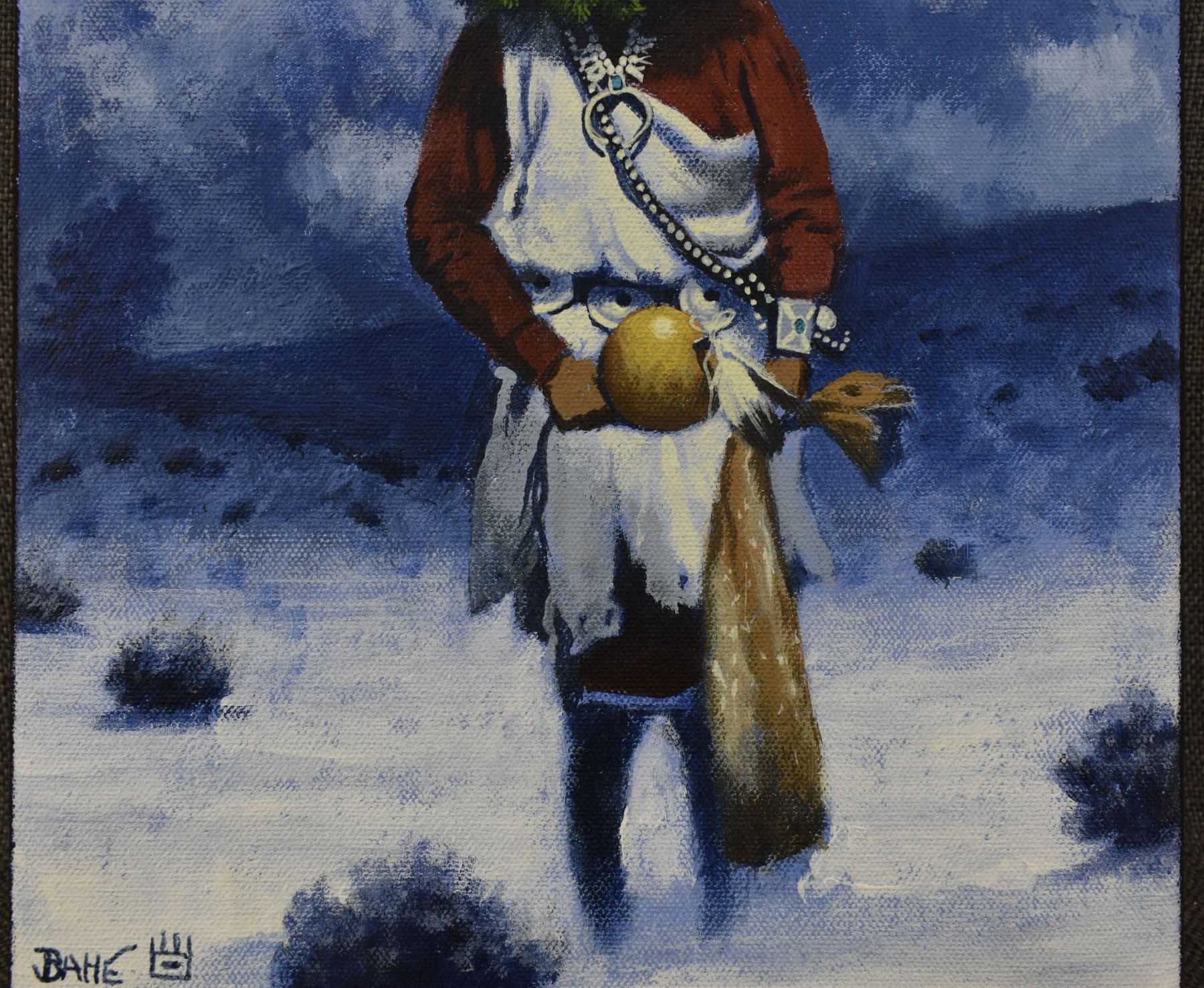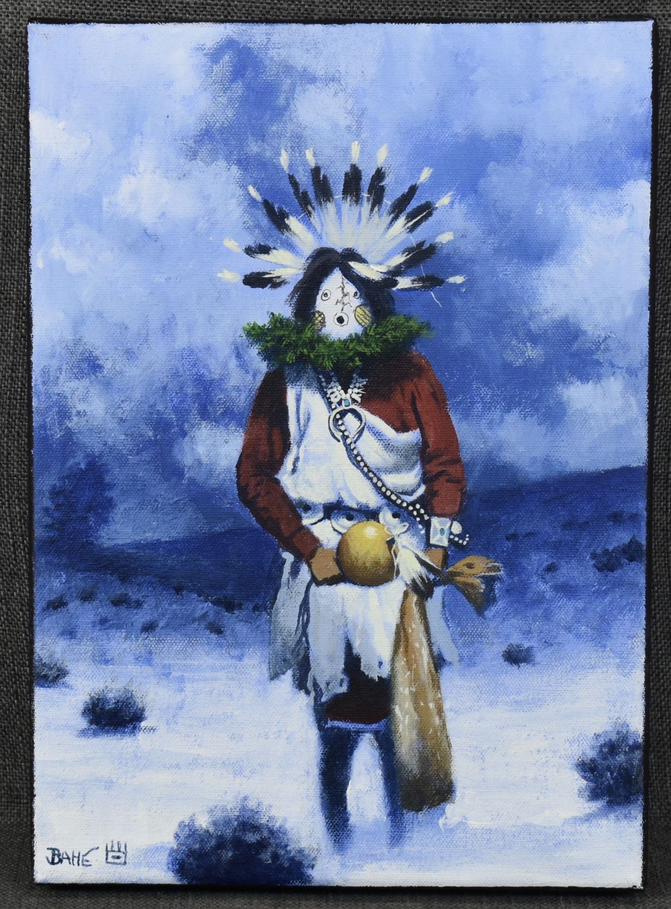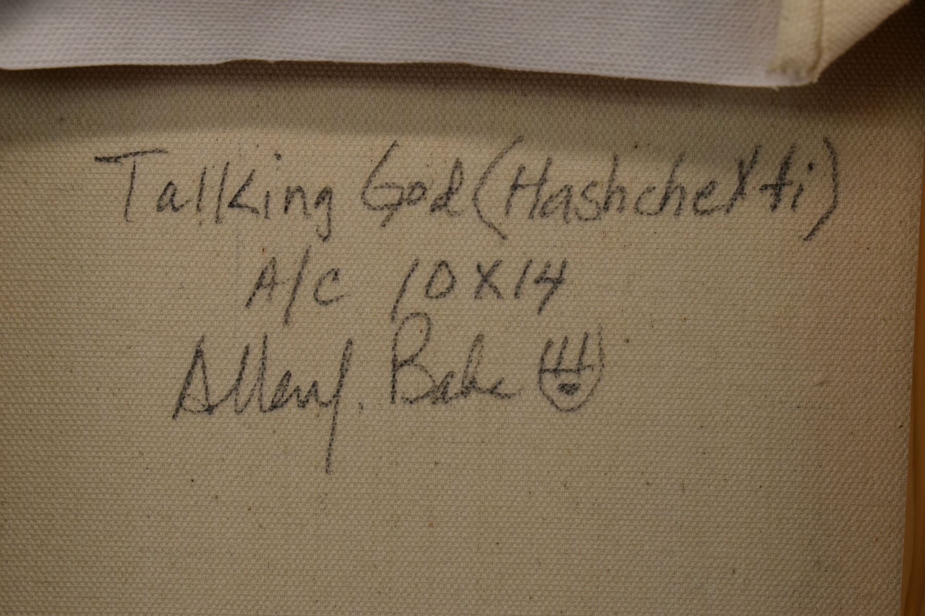 2000's Navajo, original hand painted acrylic on canvas titled "Talking God (Hashcheyti)" by Allen Bahe 14" x 10"