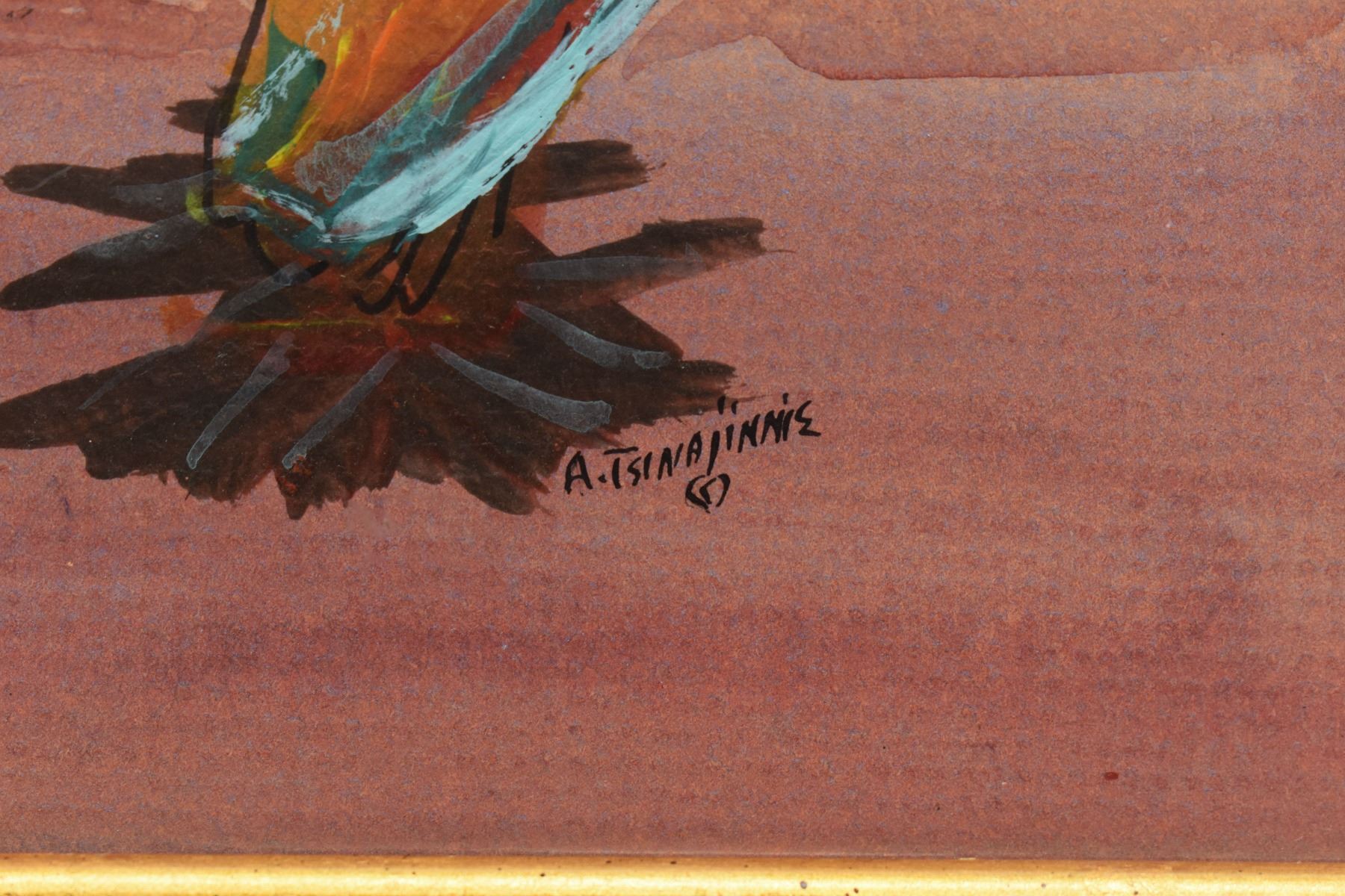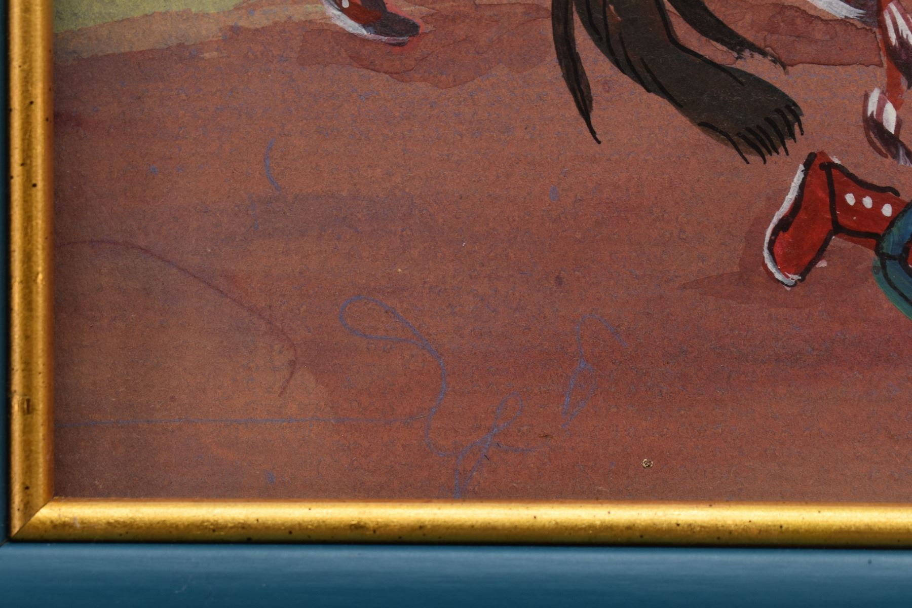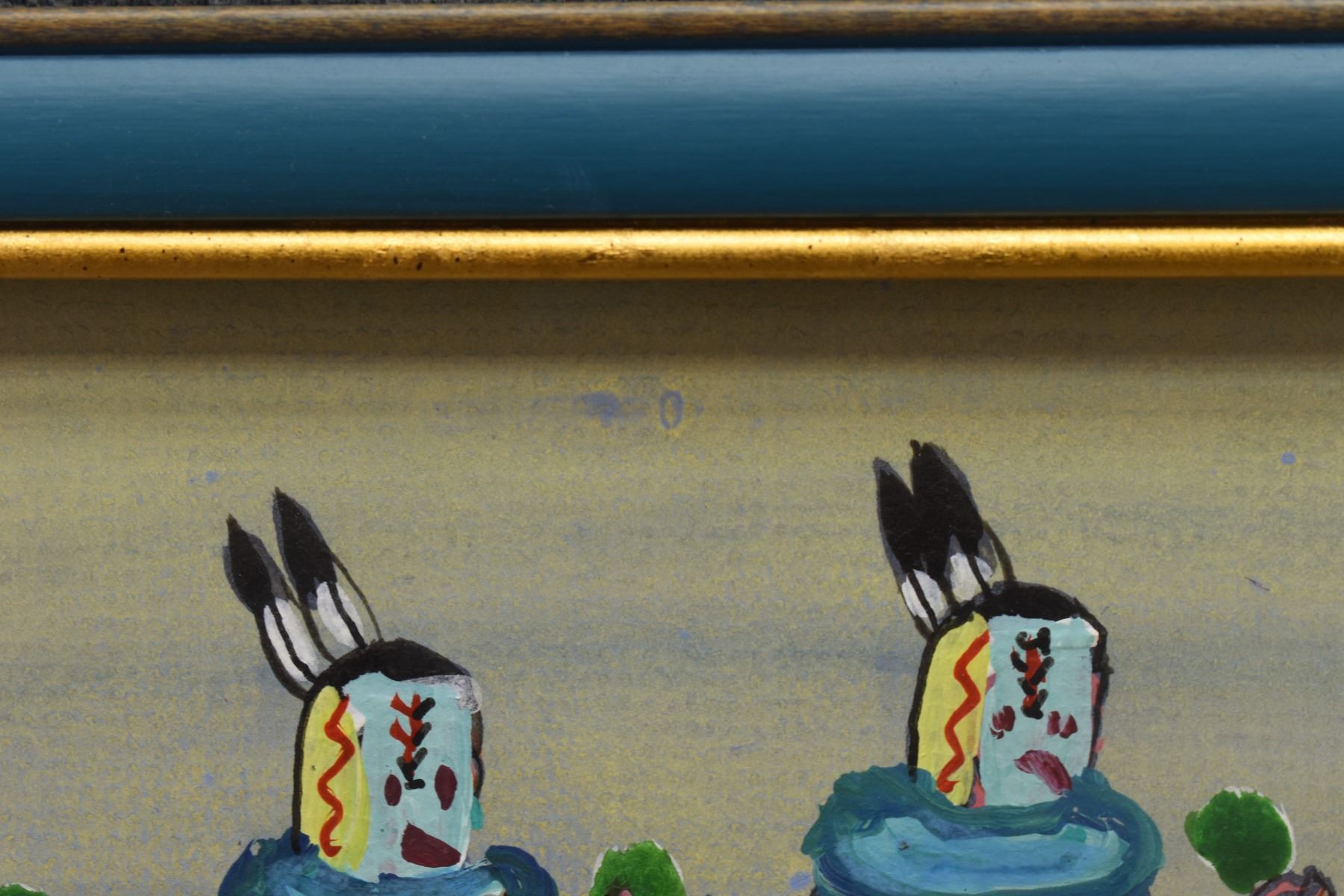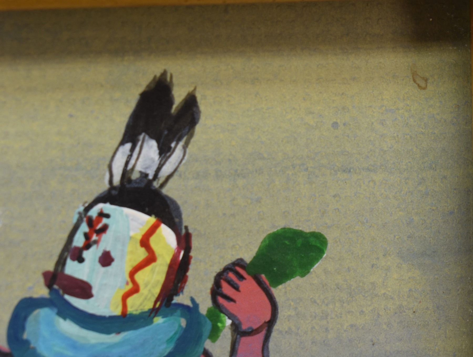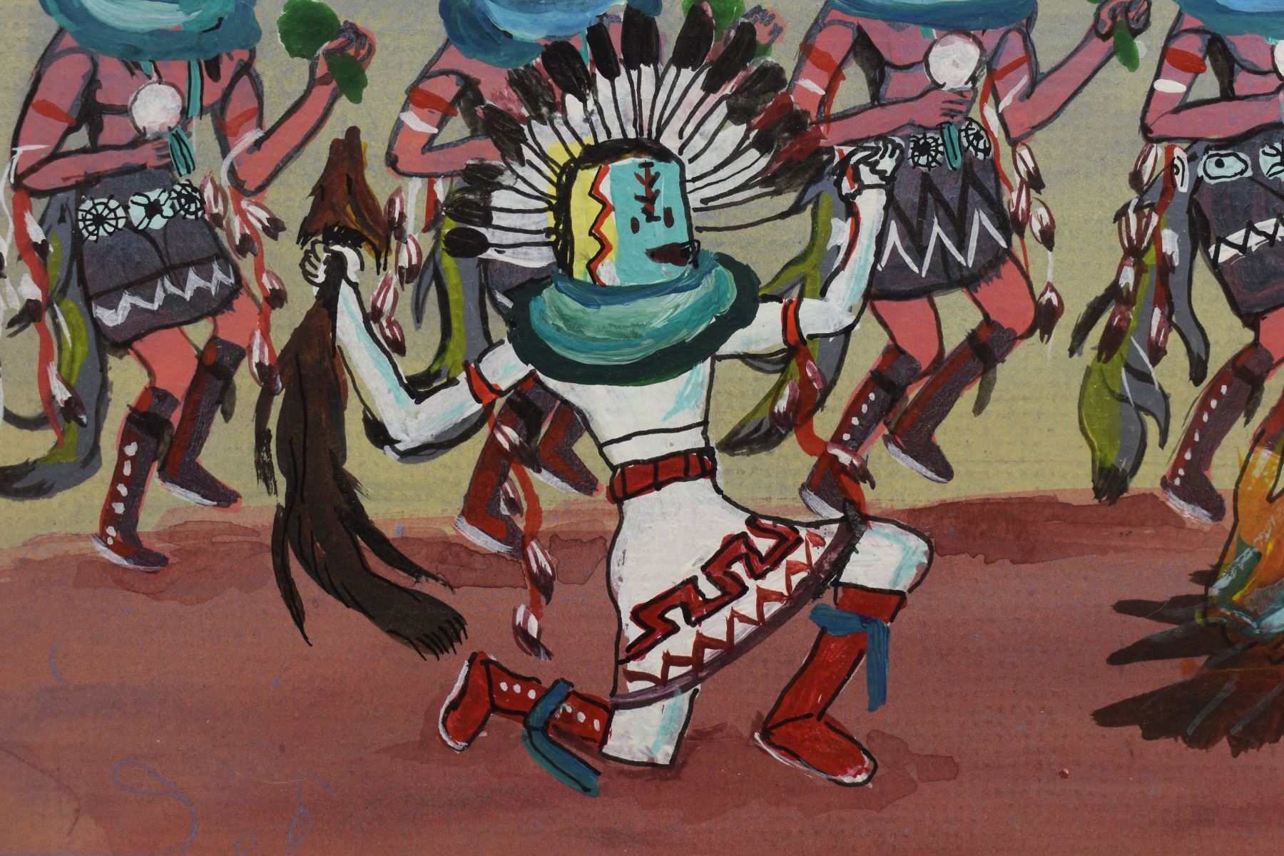 1960's Navajo. Original on paper depicting yeis. Signed A. Tsinajinnie. 7'' x 13'' frame size 9'' x 14''