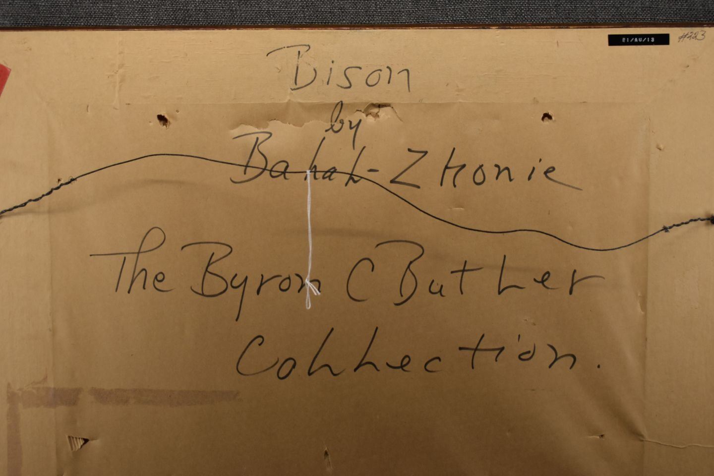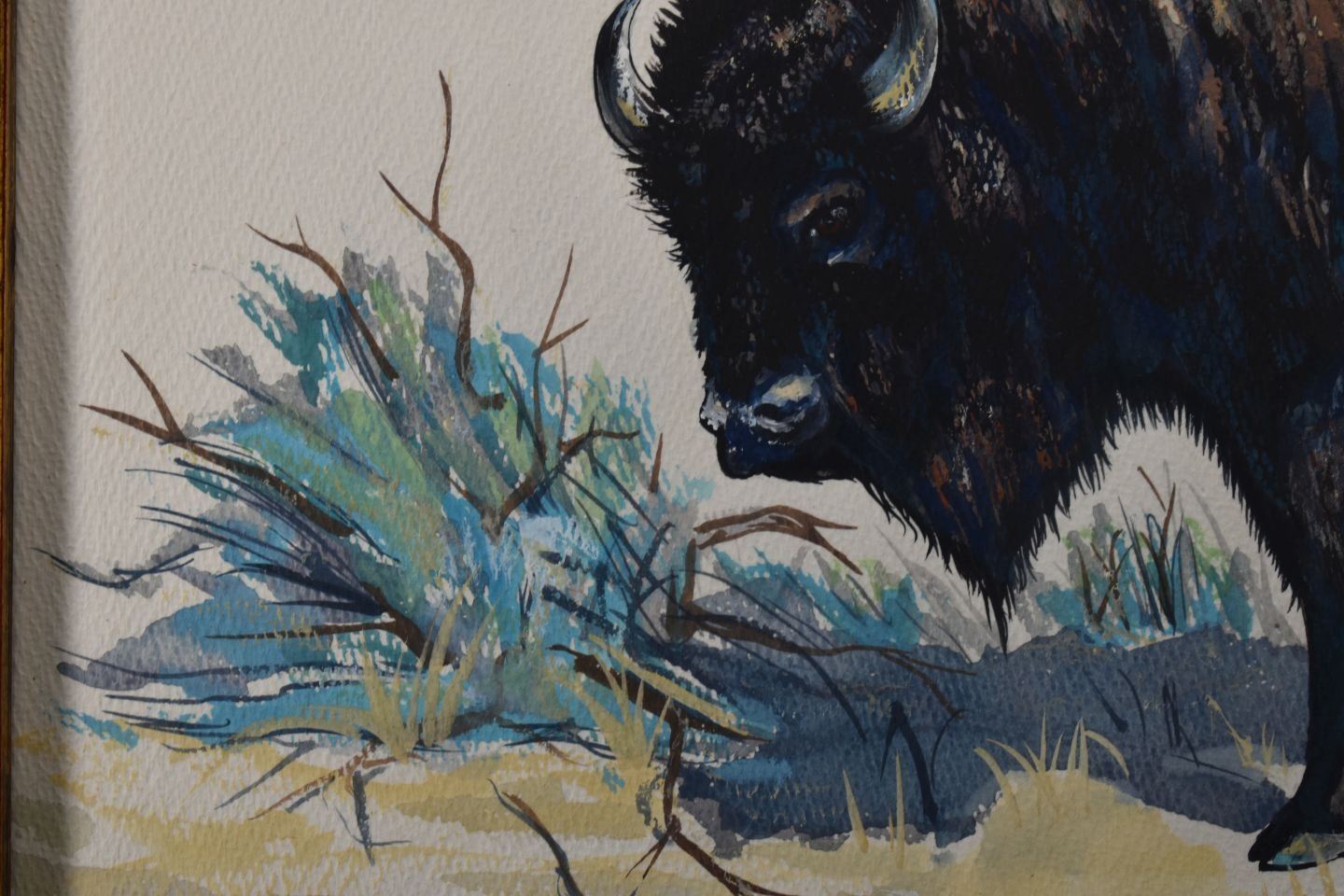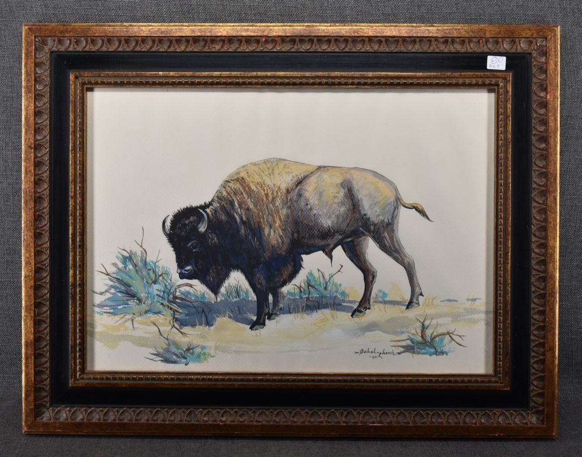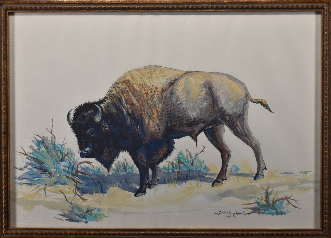 1960 Navajo. Original on paper depicting buffalo signed Bahah-Zhonie. 14'' x 20'' frame size 20'' x 26''