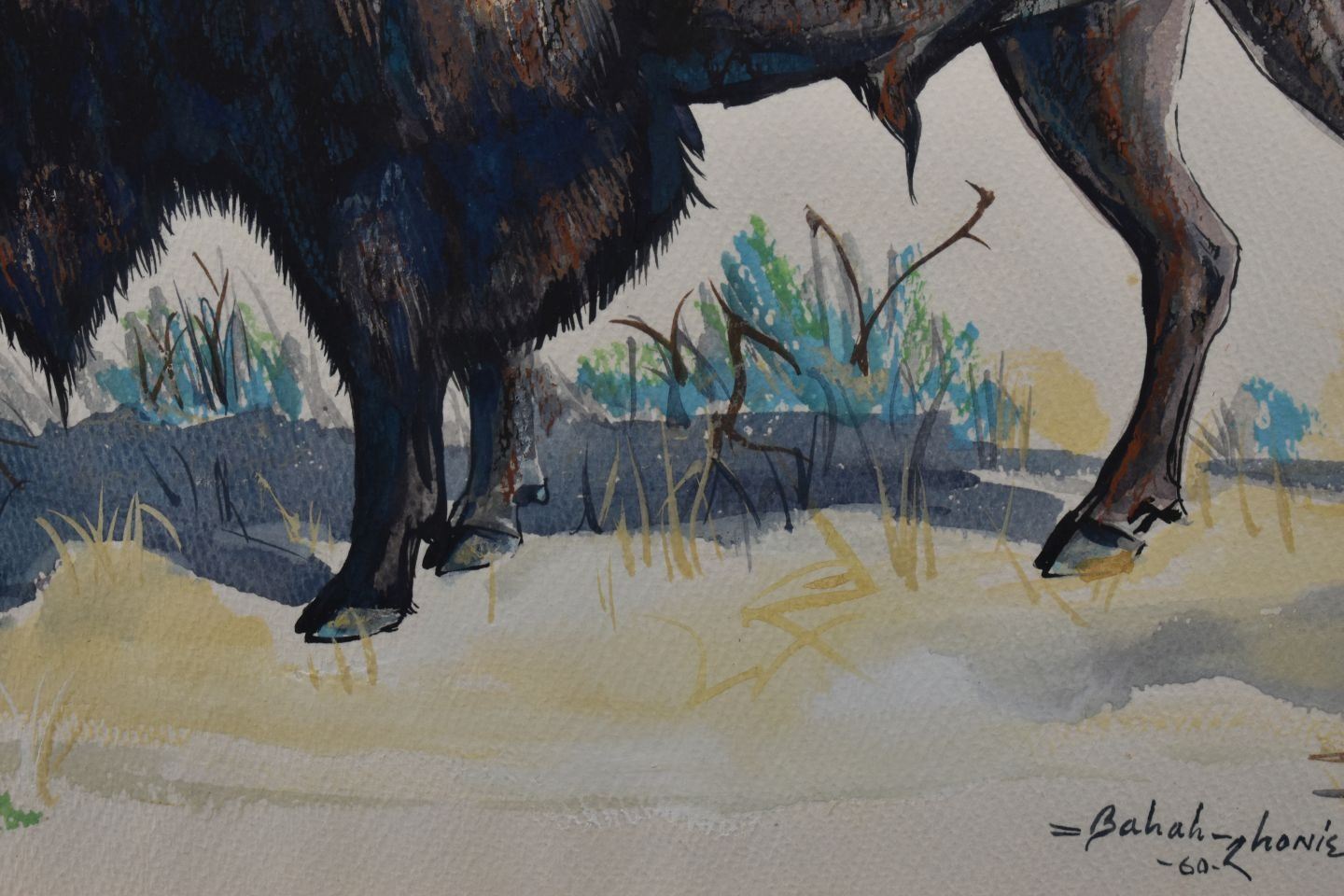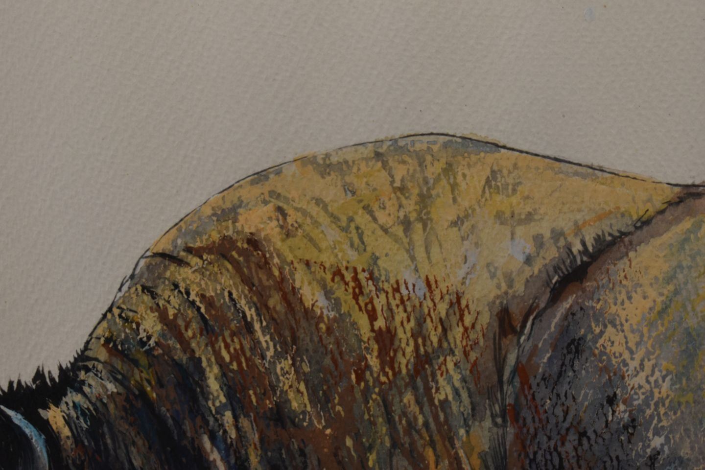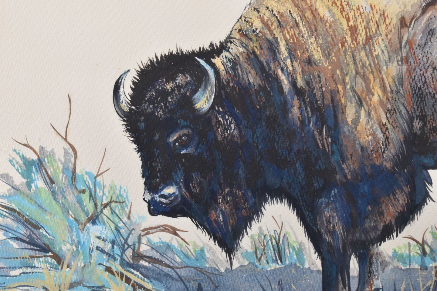 1960 Navajo. Original on paper depicting buffalo signed Bahah-Zhonie. 14'' x 20'' frame size 20'' x 26''