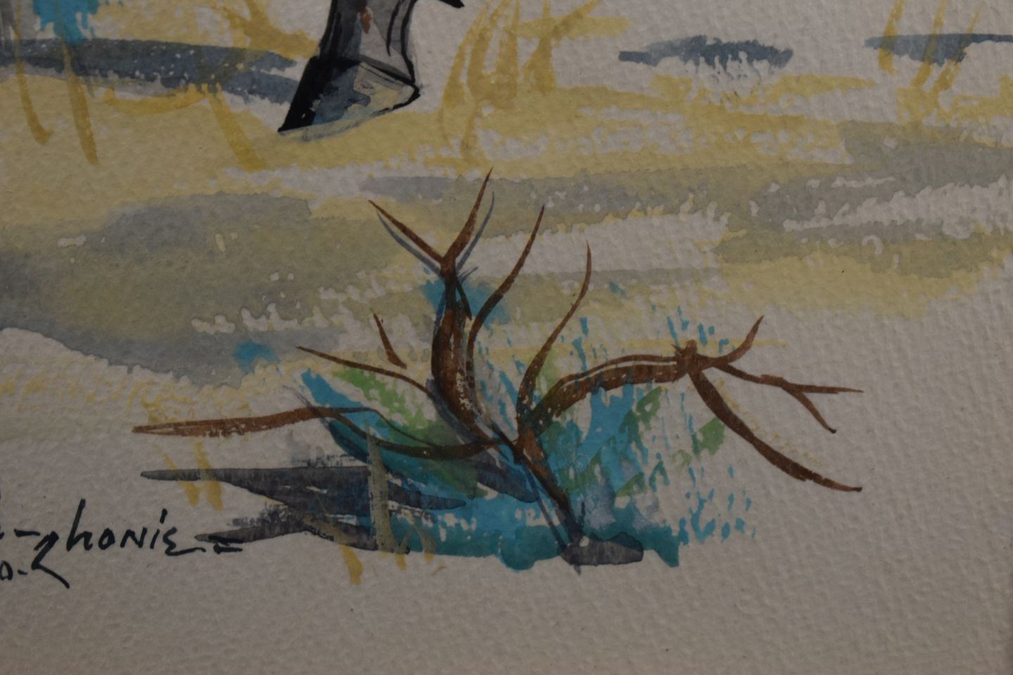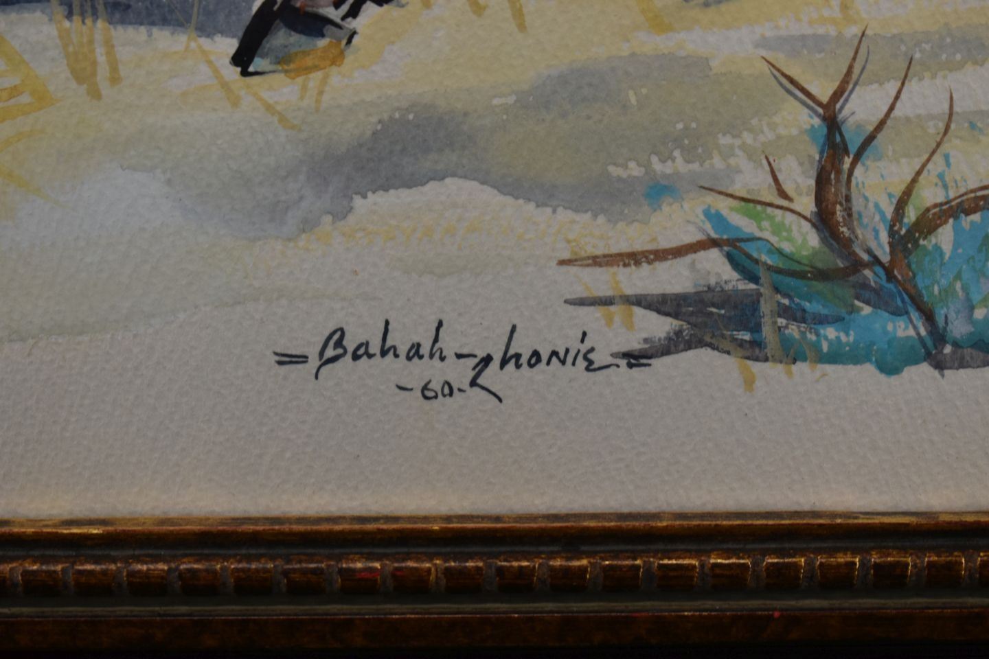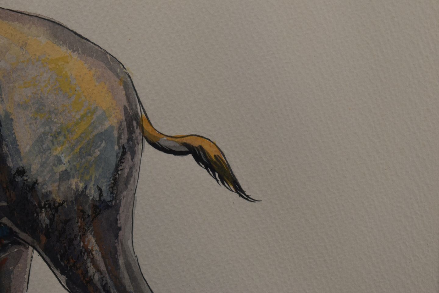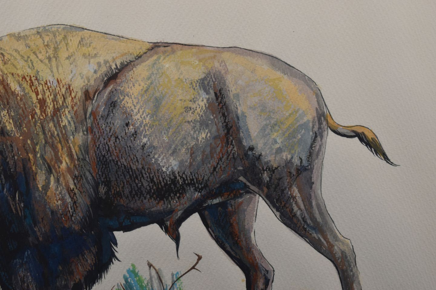 1960 Navajo. Original on paper depicting buffalo signed Bahah-Zhonie. 14'' x 20'' frame size 20'' x 26''