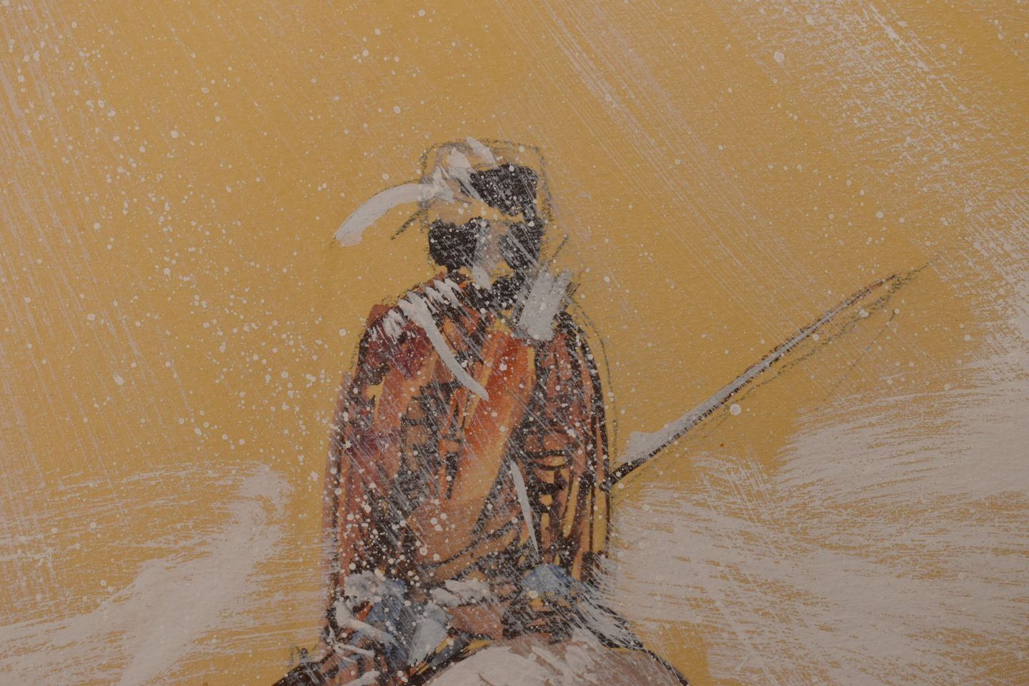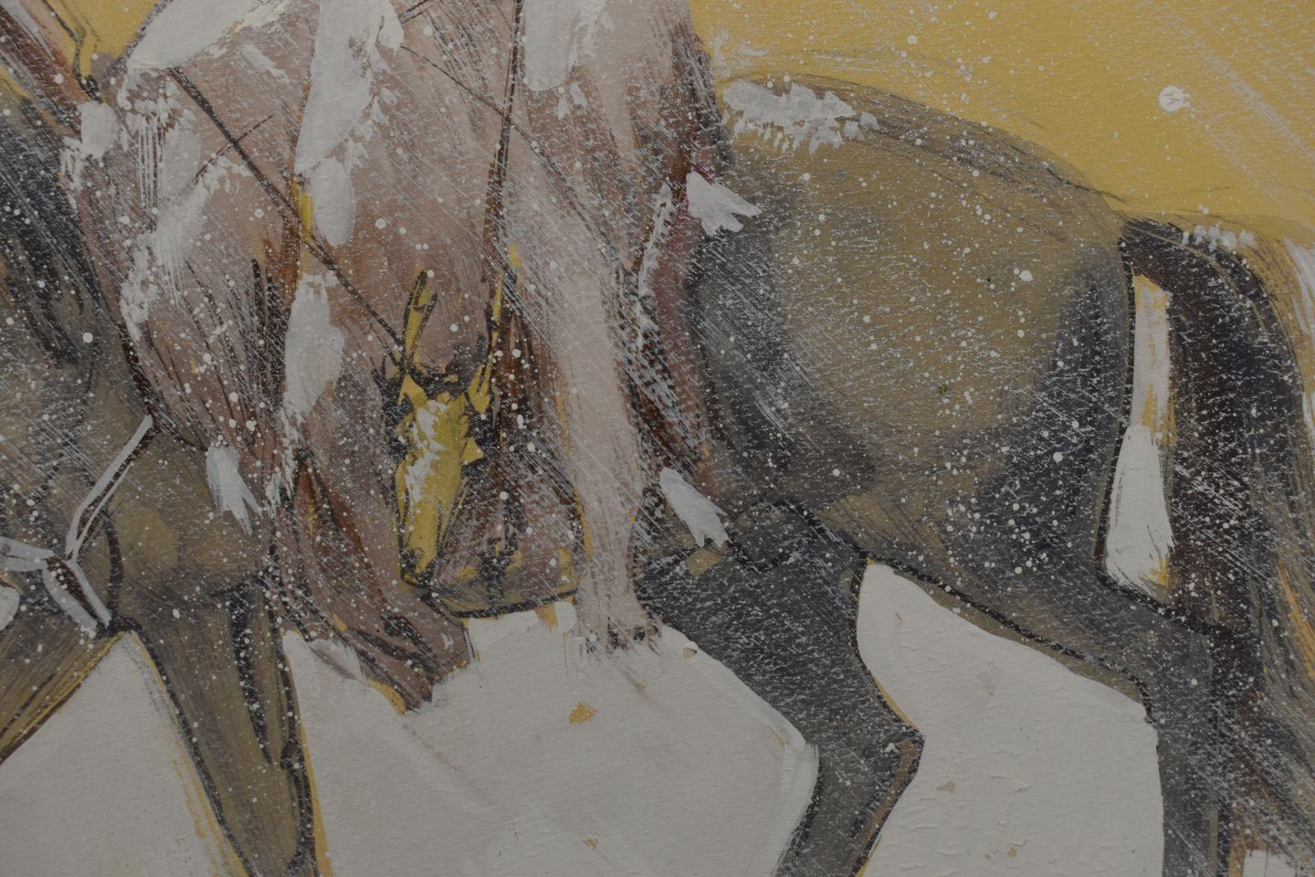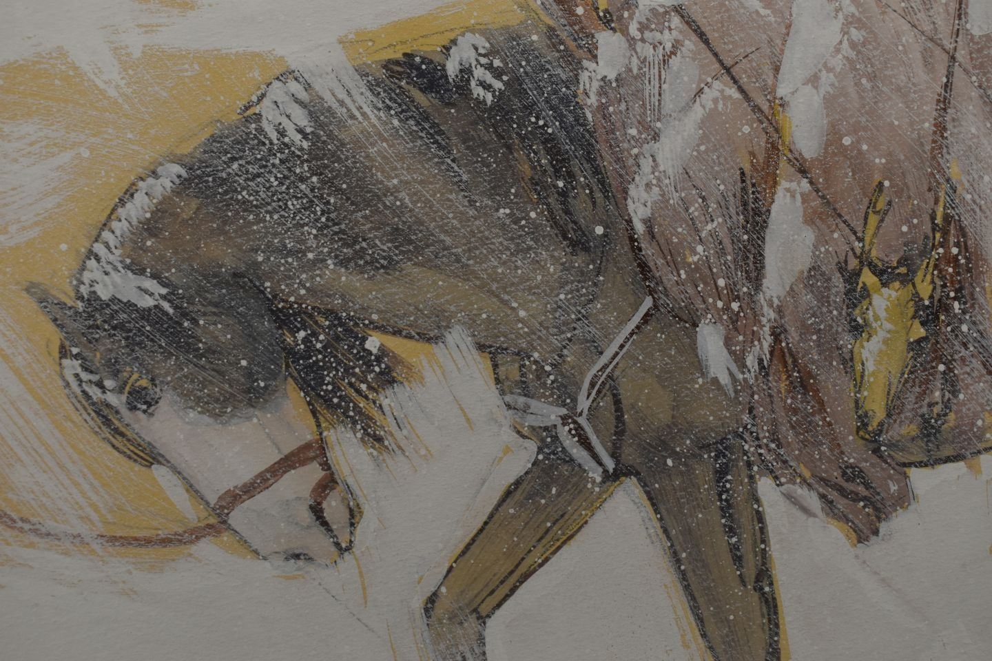 1961 Navajo. Original on paper depicting winter scene signed Bahah-Zhonie. 16'' x 26'' frame size 21'' x 31''