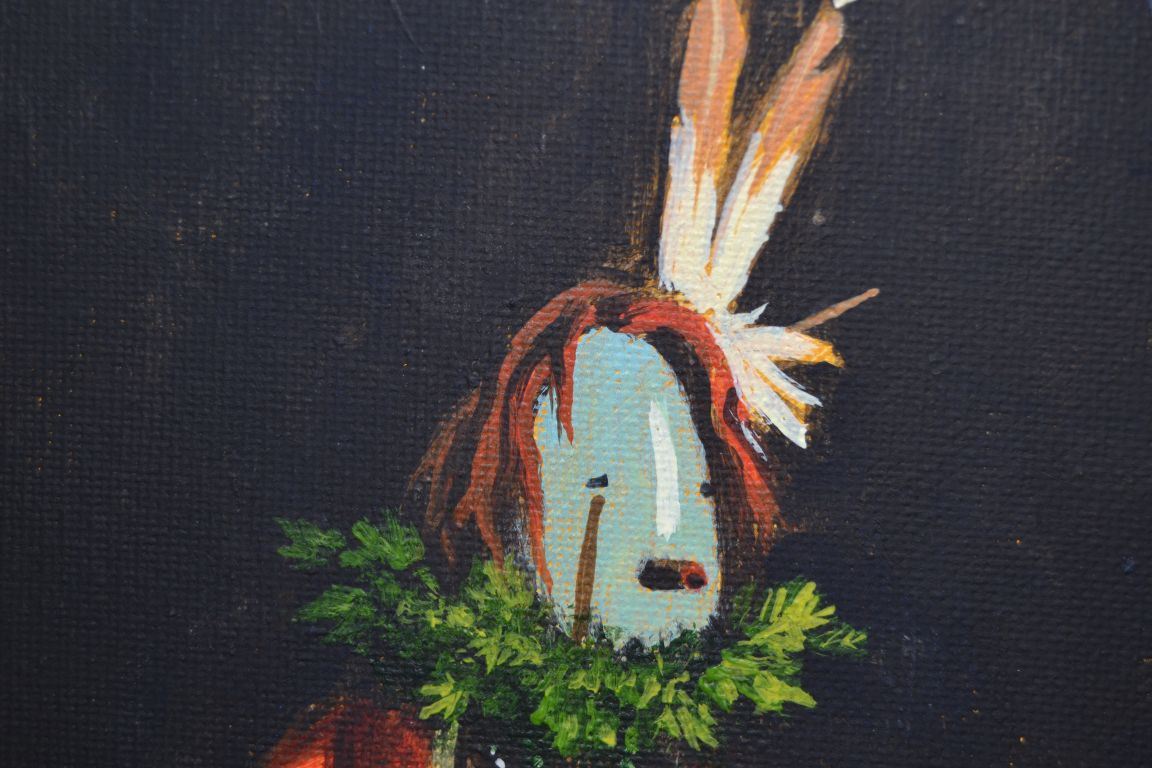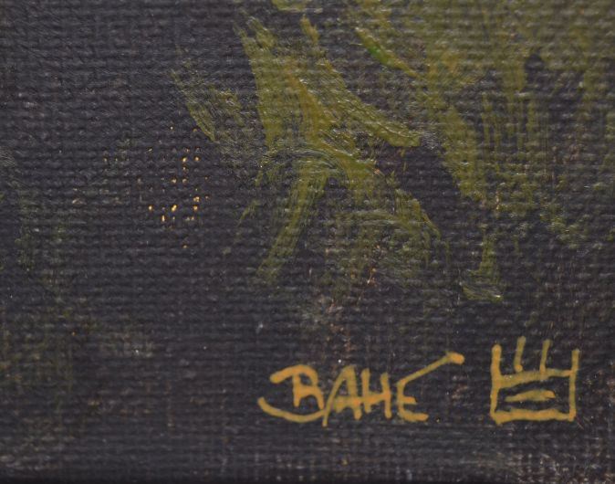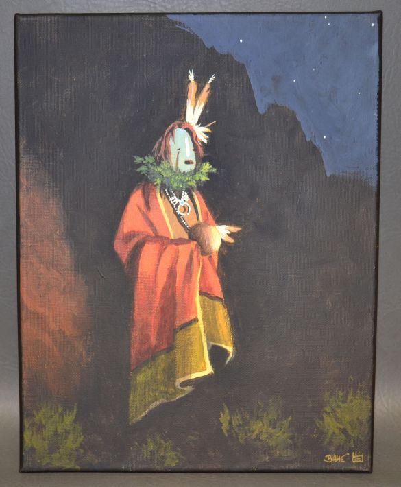 contemporary titled " At the Ceremony" acrylic on canvas, signed Bahe, 14" x 11"