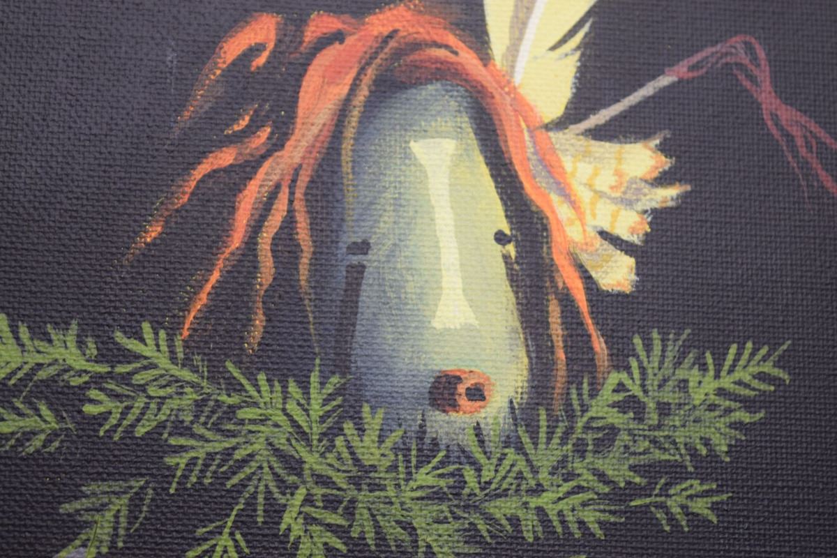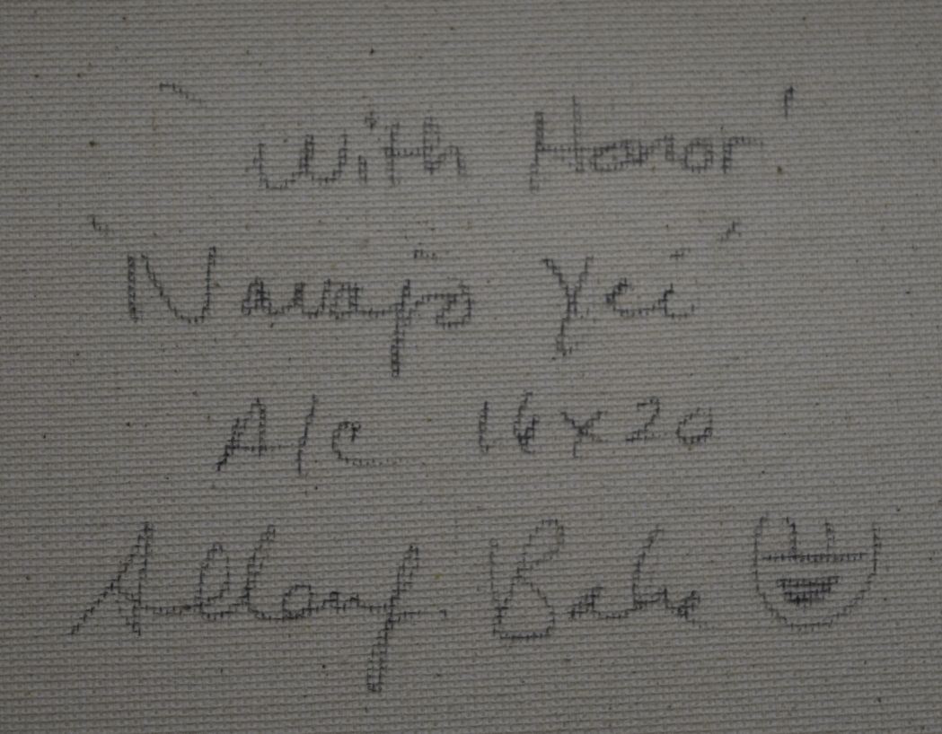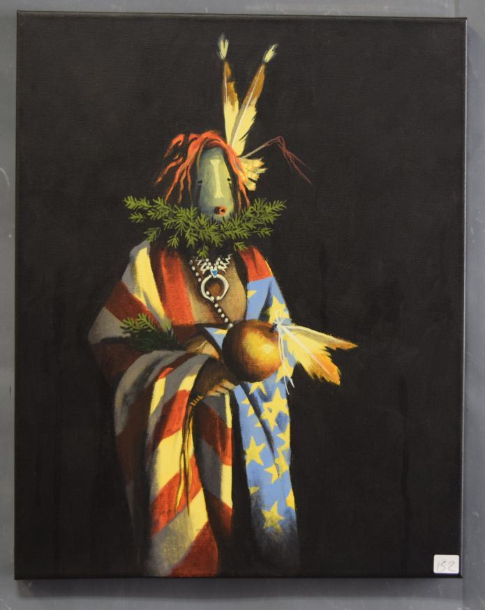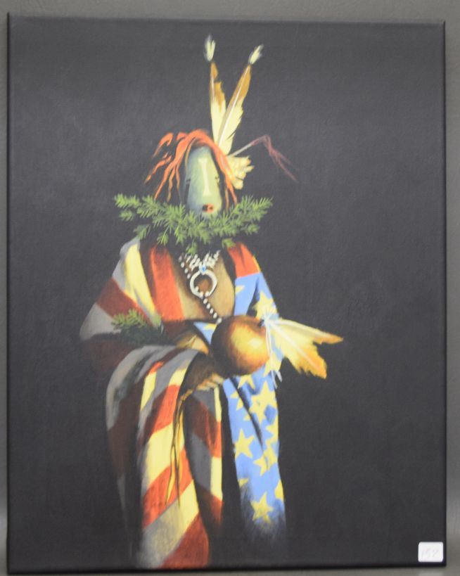 2000's original on canvas depicting Navajo yei signed on the back 16'' x 20'' has paint runs