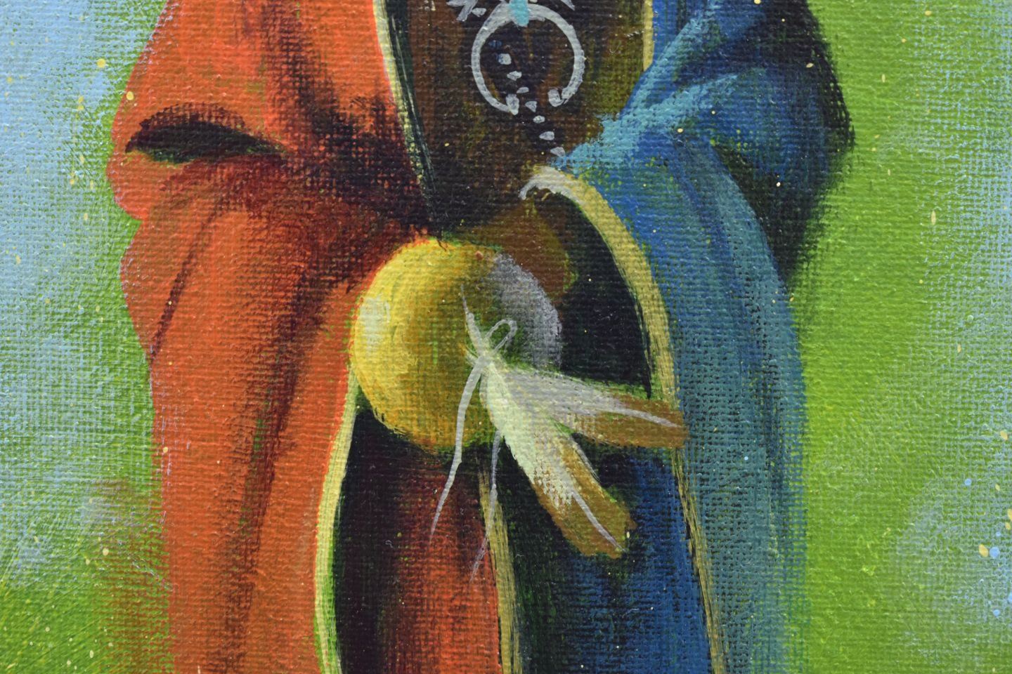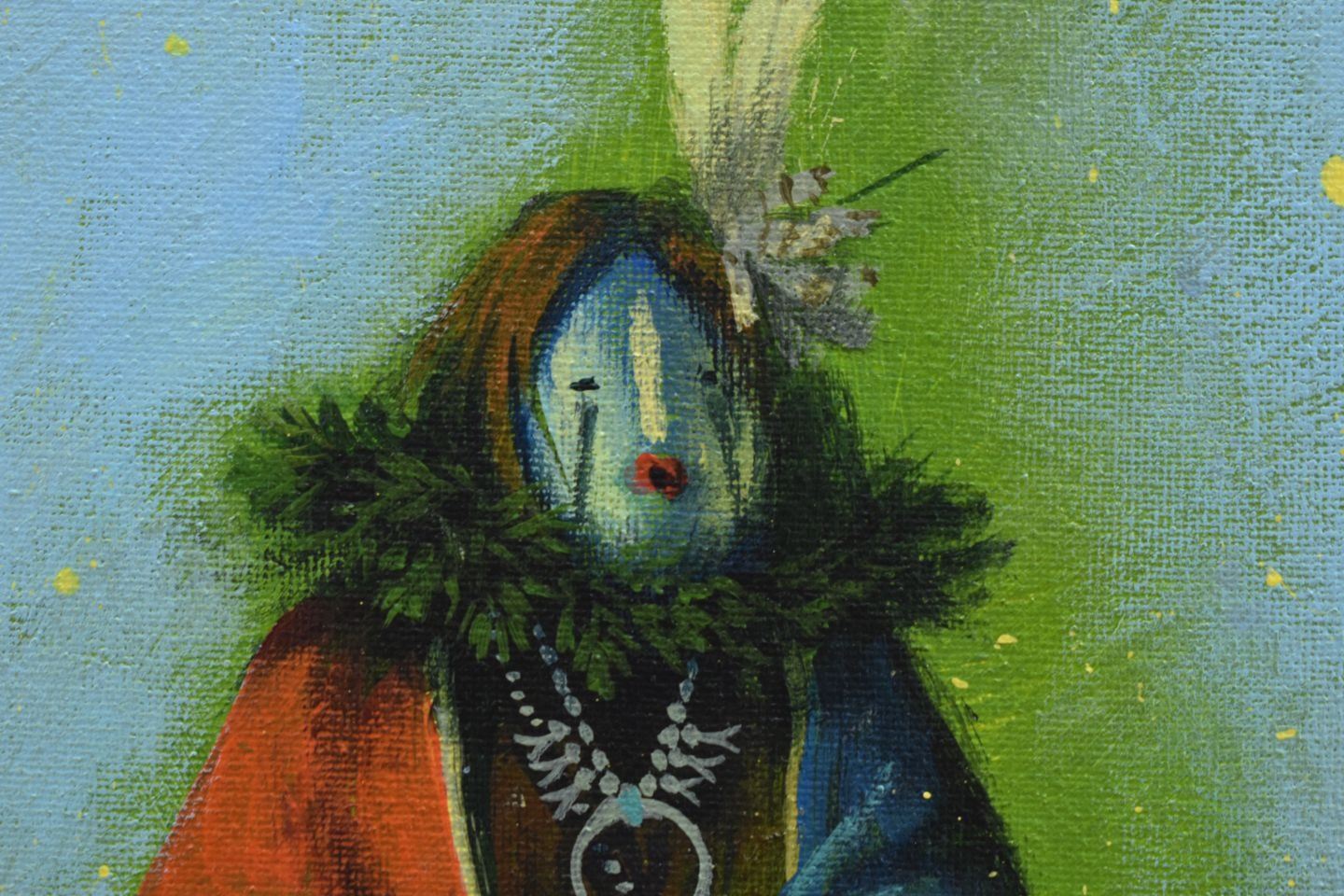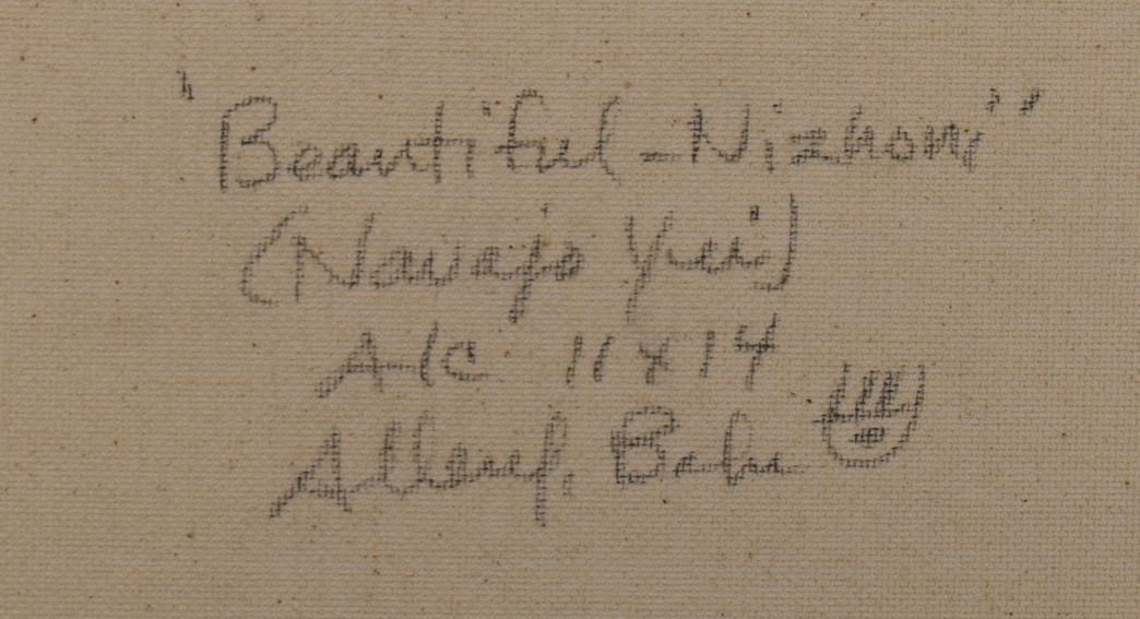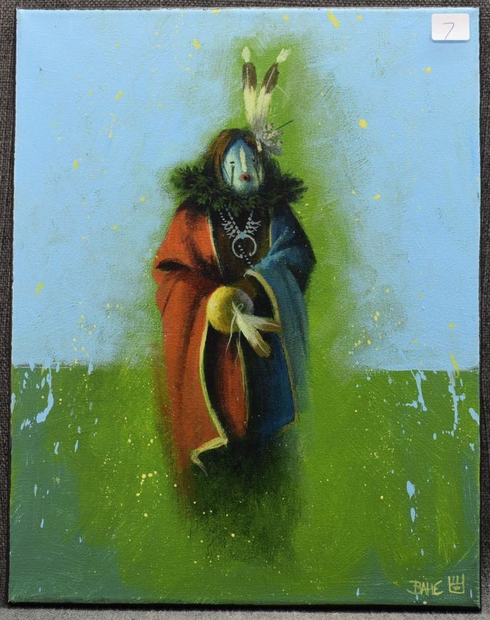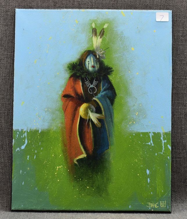 2000's Navajo painting, original on canvas depicting Yei, signed Bahe. 11'' x 14''