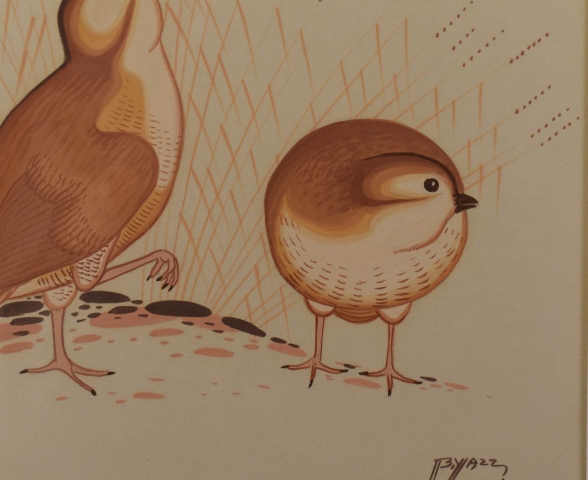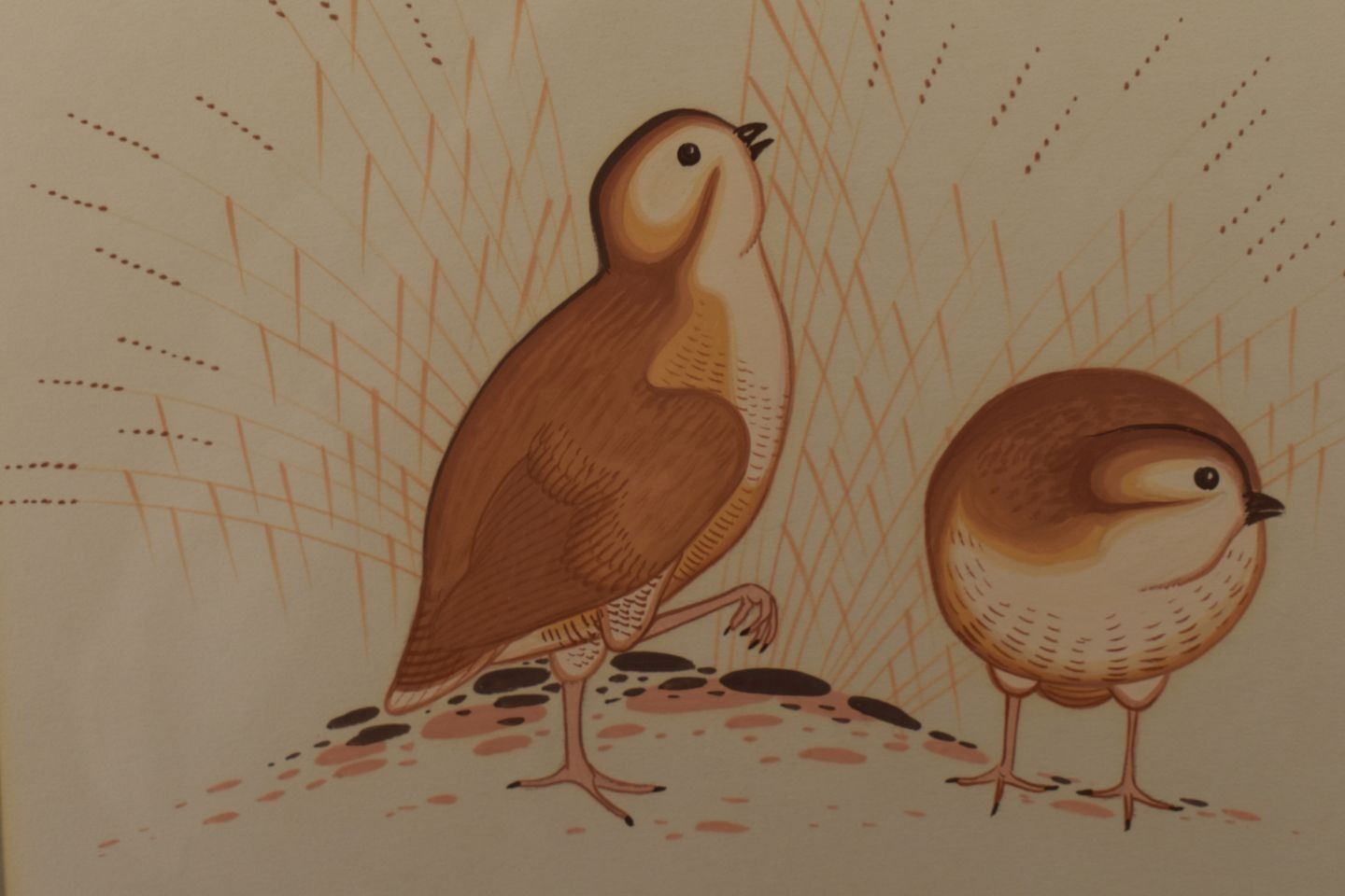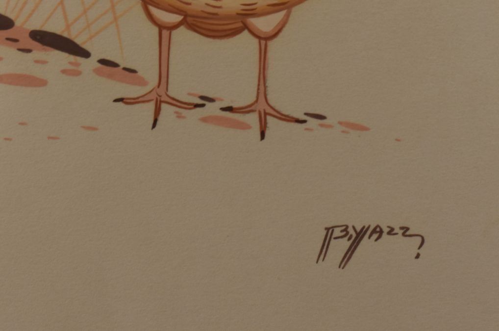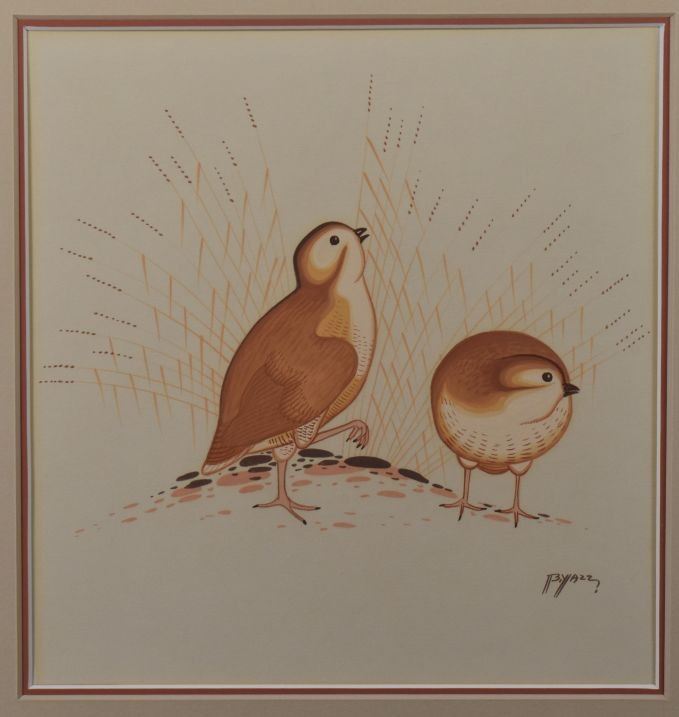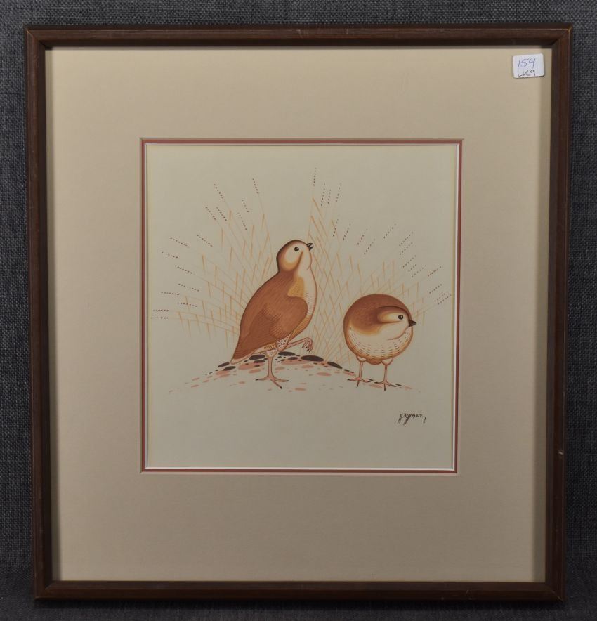 1960-70's Navajo, original hand painted birds by Beatin Yazz 9.25" x 9" matted and framed to 16.5" x 15.5"