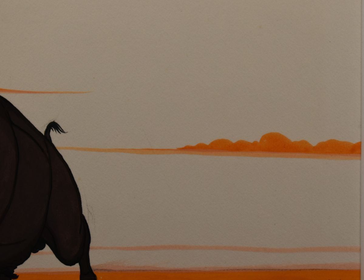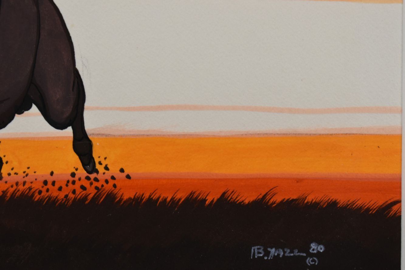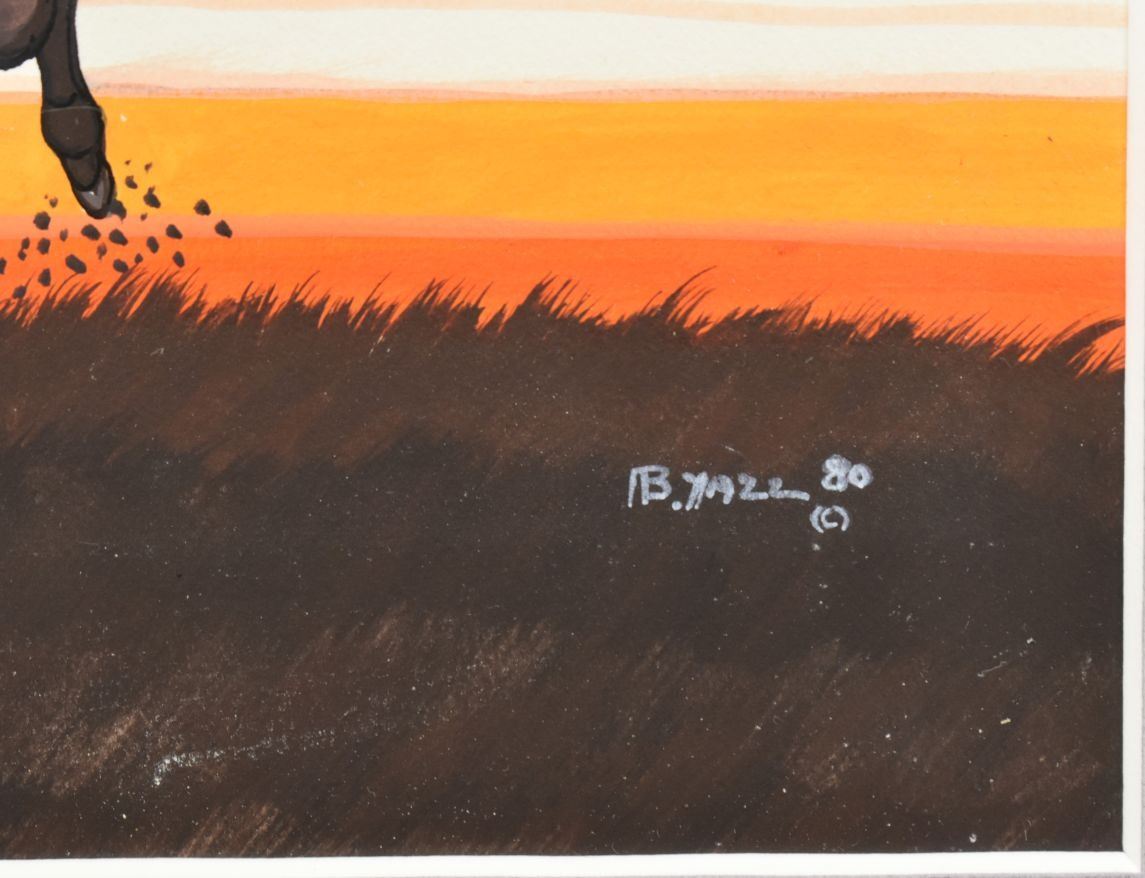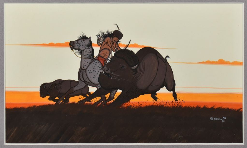 1980 Navajo, original hand painted depicting buffalo hunt by Beatin Yazz 6.5" x 11" matted and framed to 13.5" x 18"