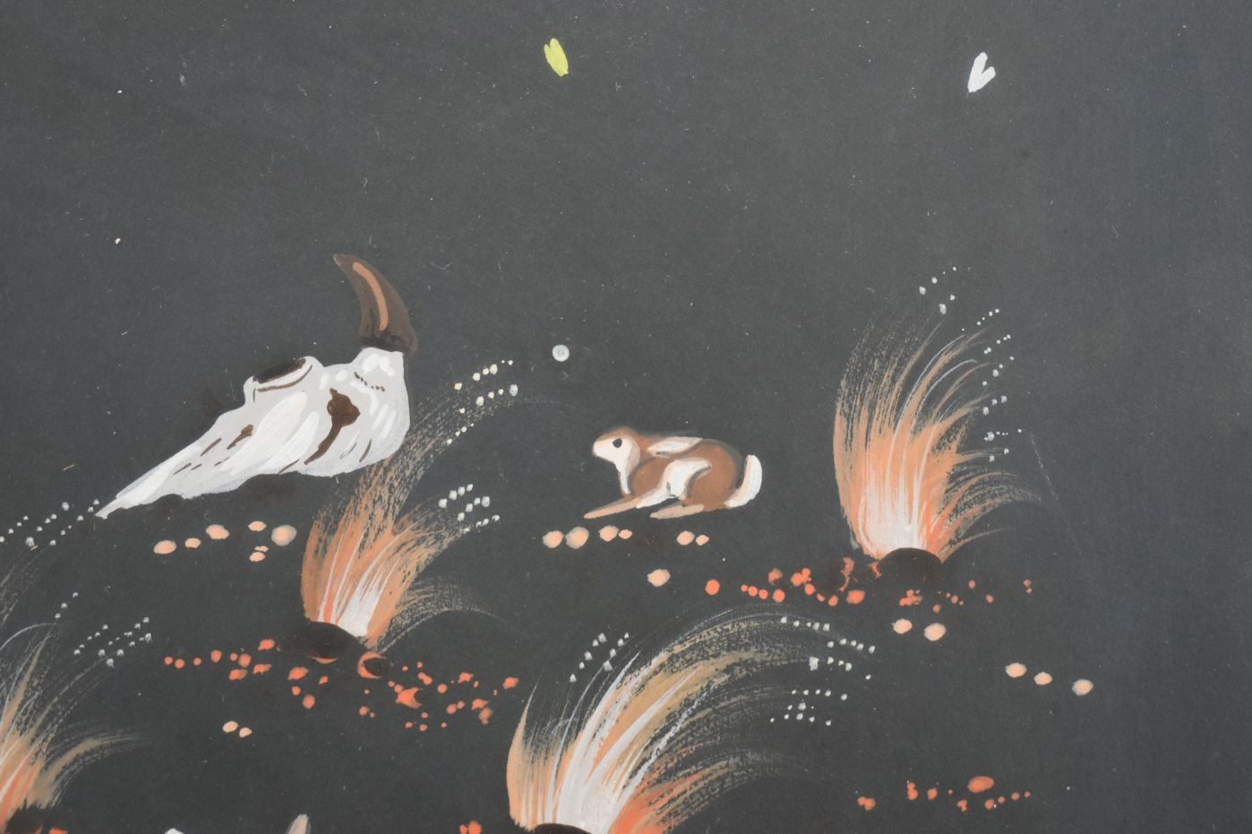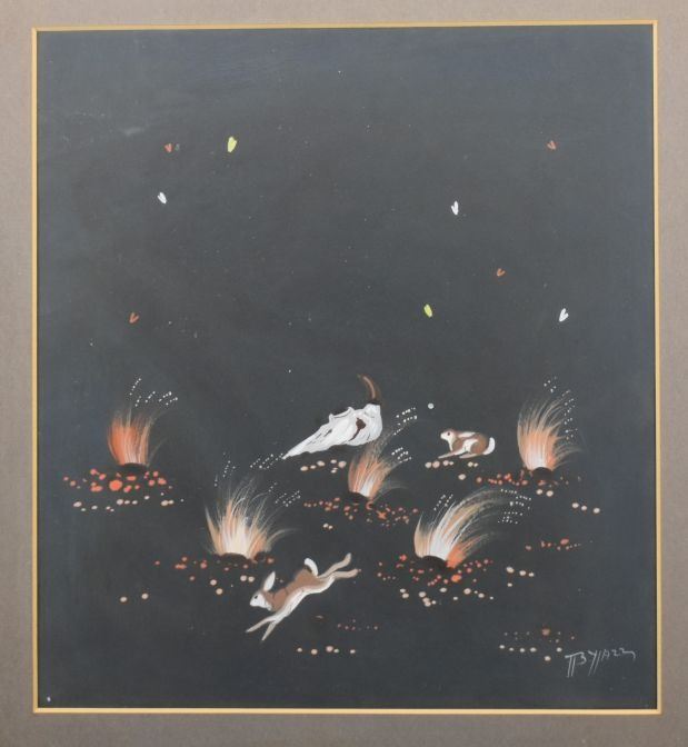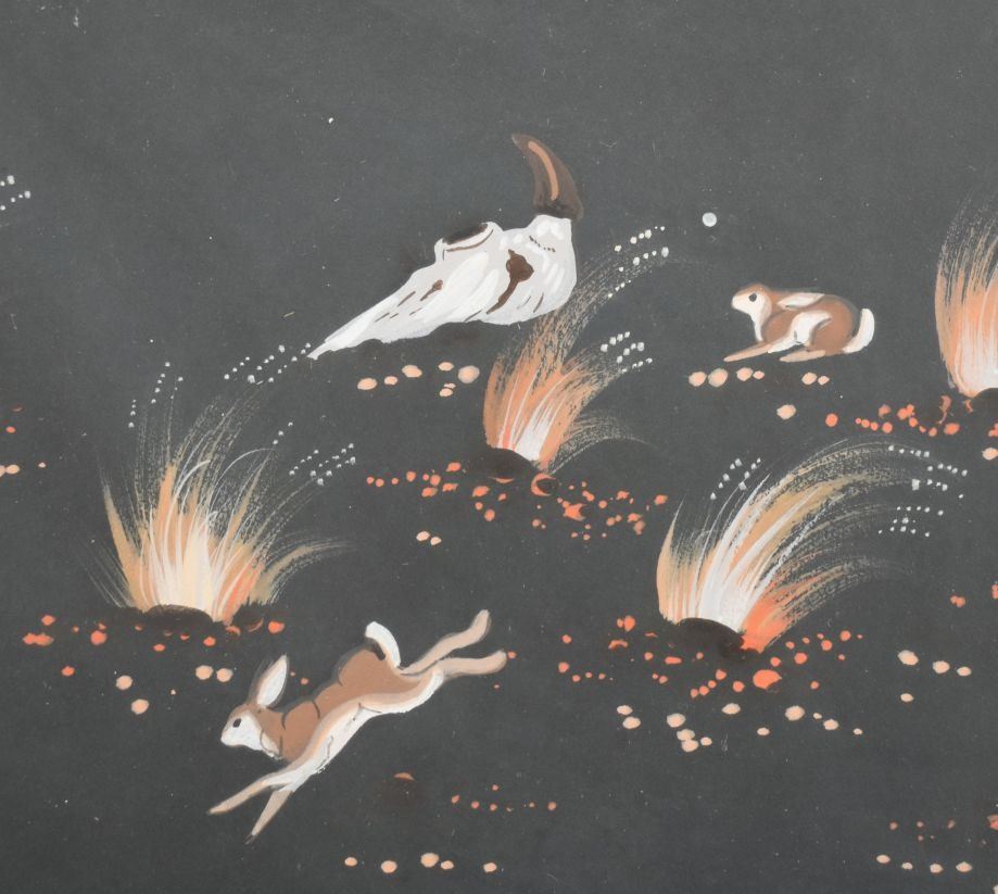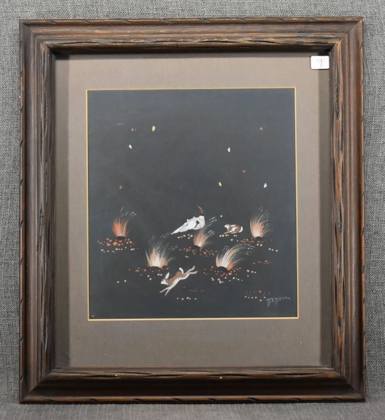 1960's Navajo. Original on paper depicting Rabbits. Signed Beatin Yazz. 11'' x 10'' frame size 19'' x 17''