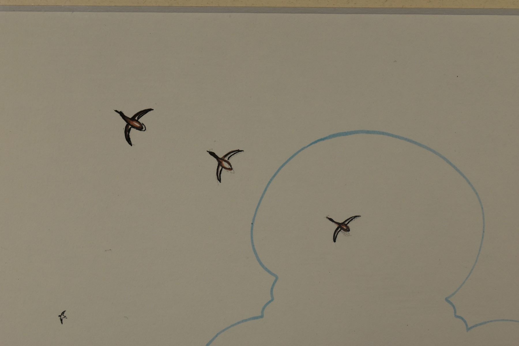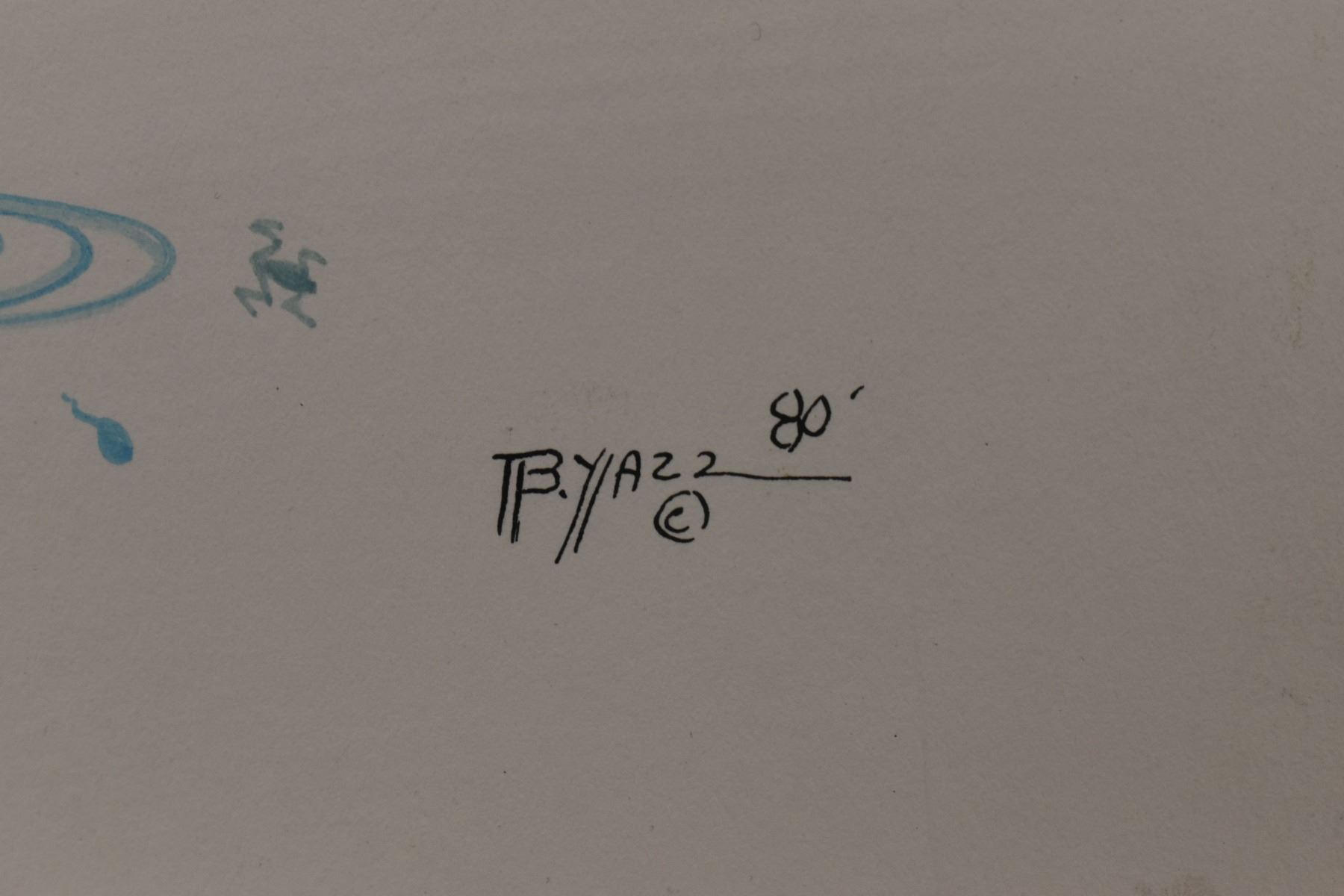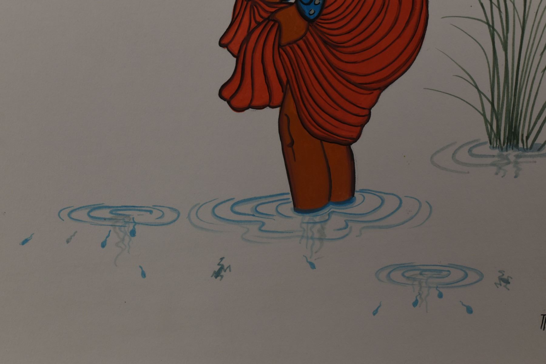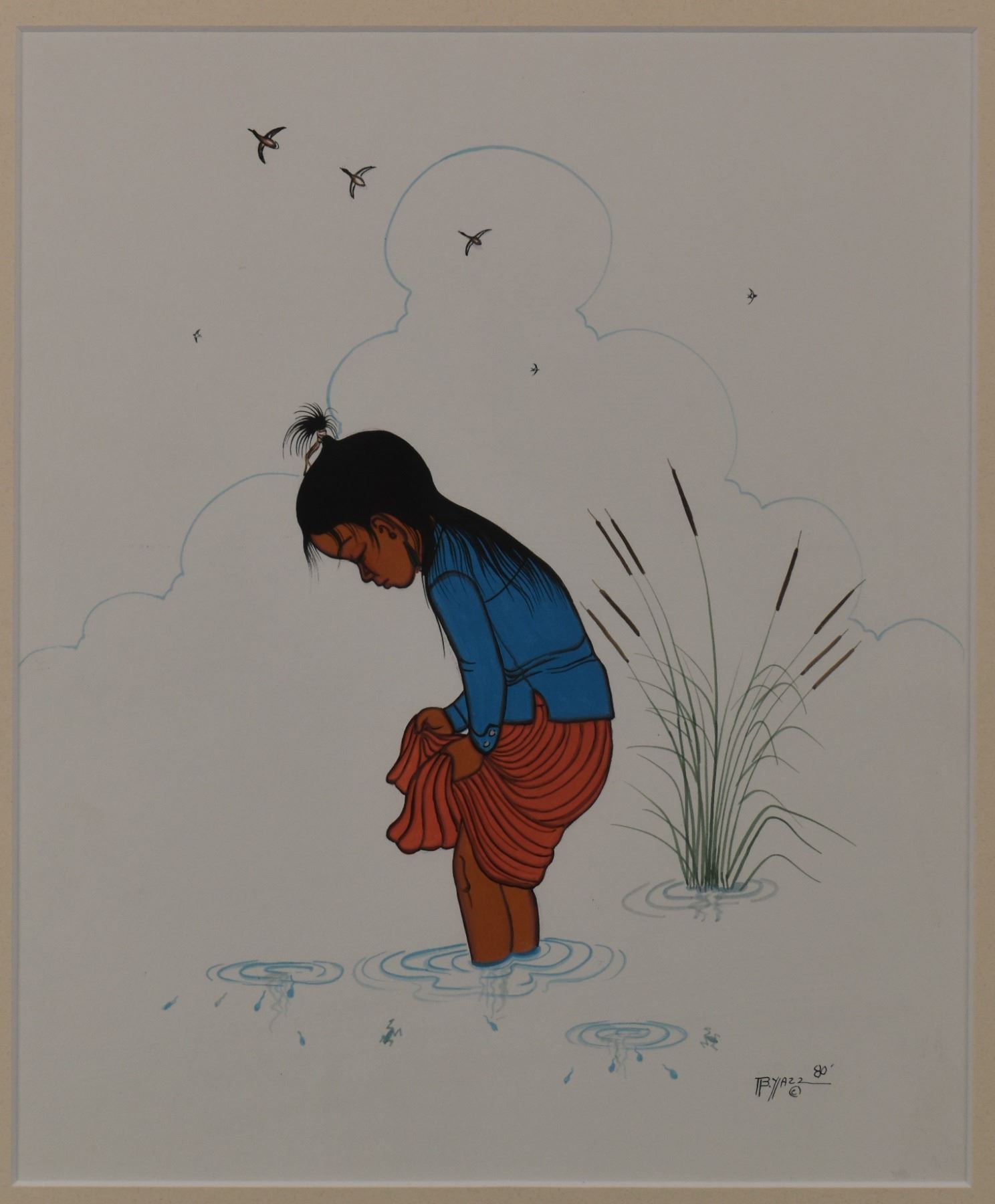 1980 Navajo, original hand painted on paper depicting Navajo girl in water by Beatin Yazz 11.5" x 9.5" framed to 18.5" x 16.75"
