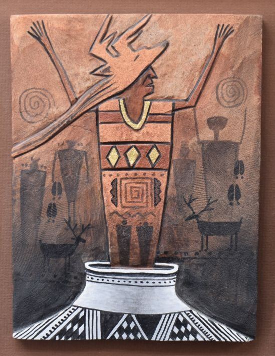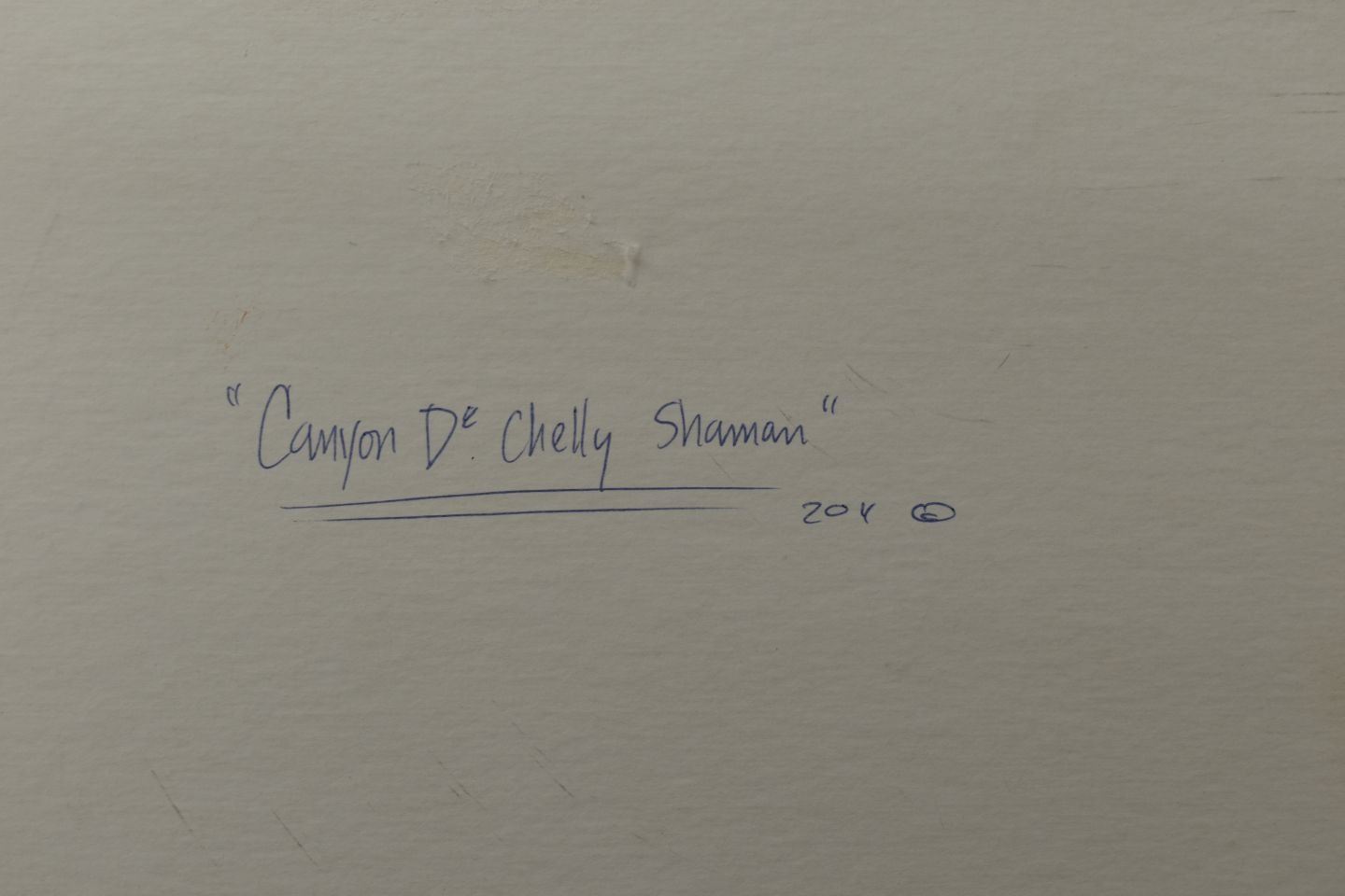 2000's Navajo, original carved and painted stone titled "Canyon De Chelly Shaman" by Benson Halwood 8" x 6" matted to 16" x 14"